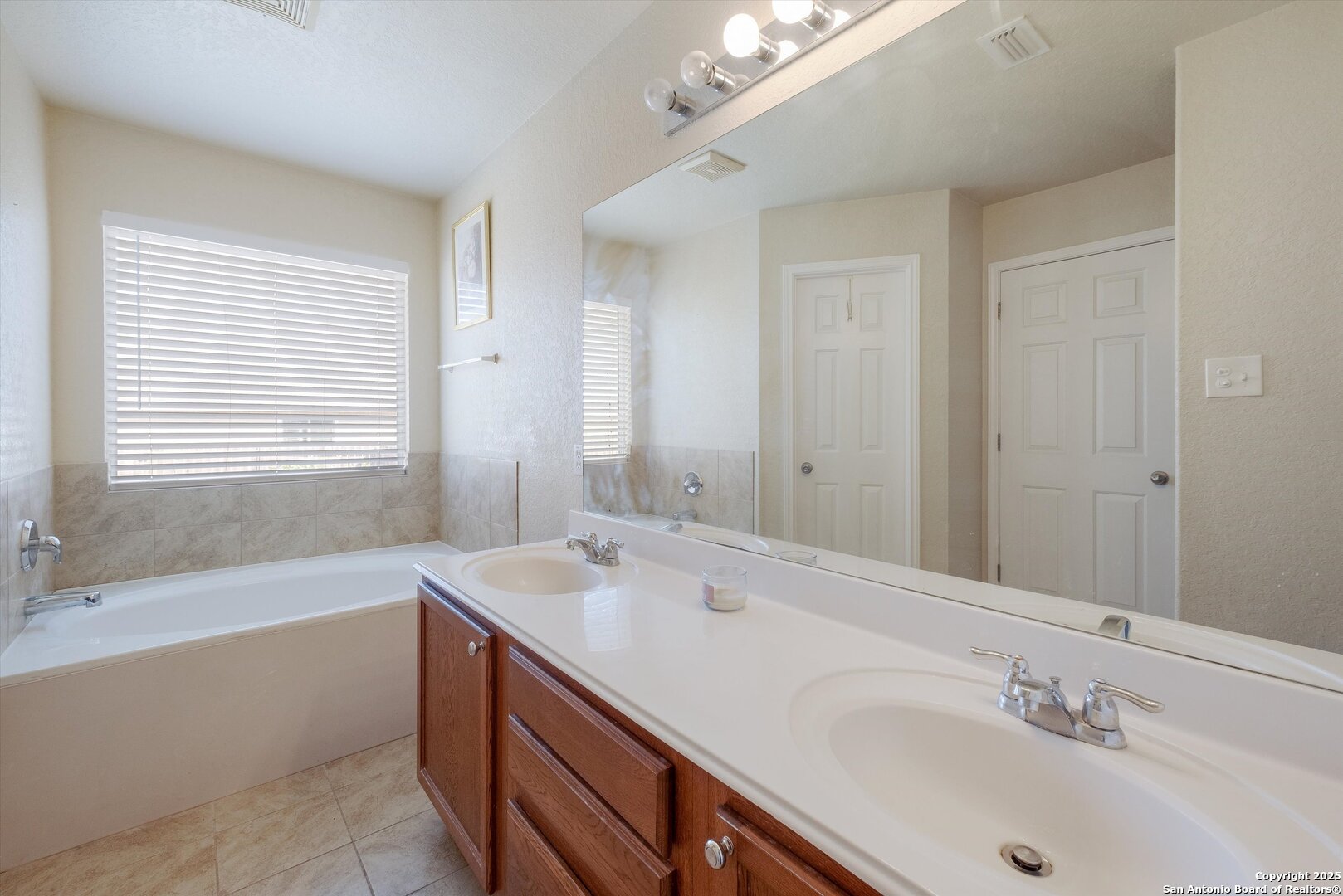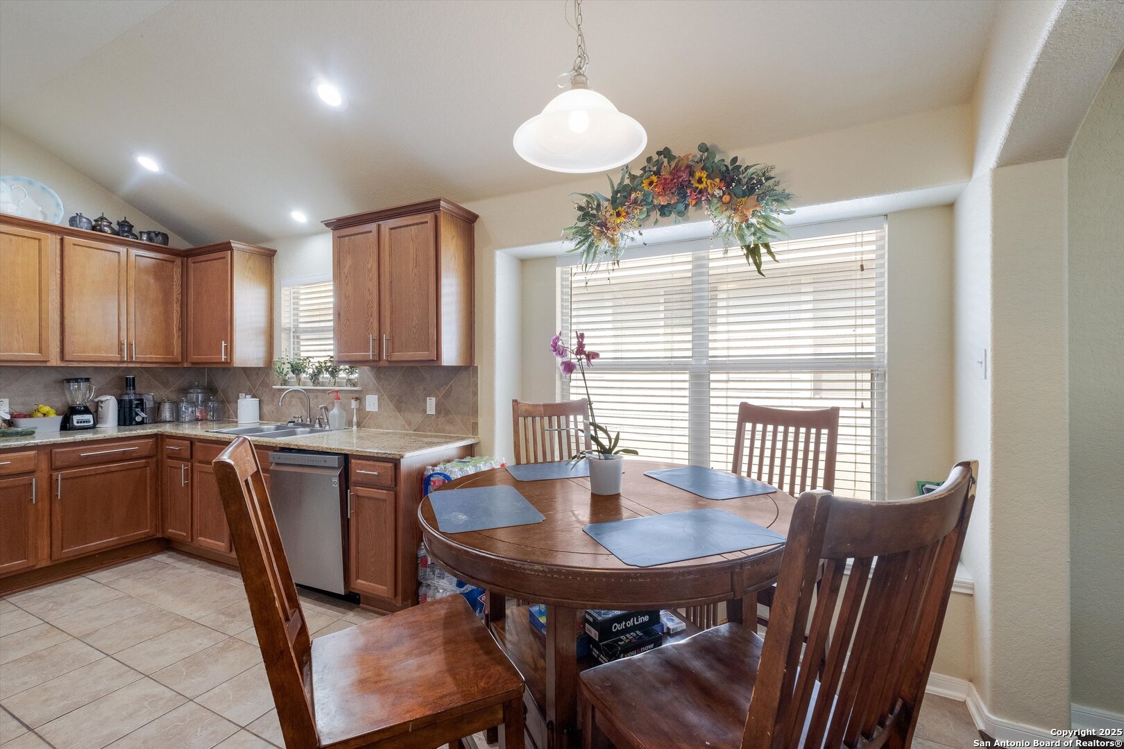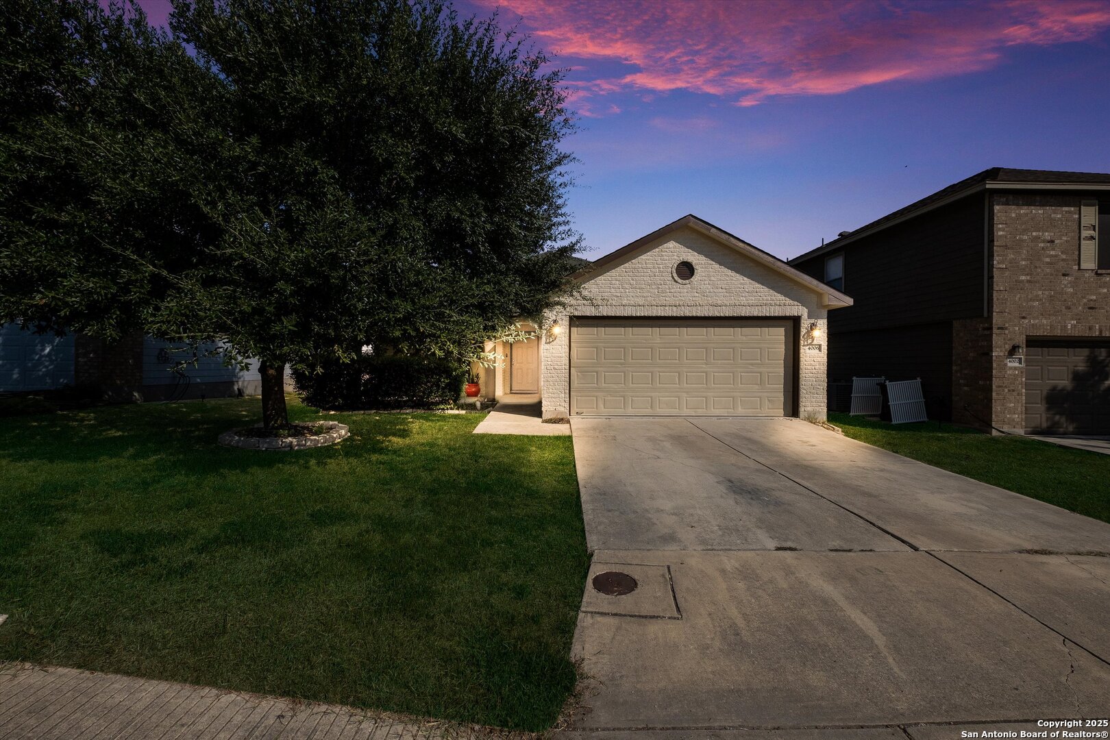 Welcome to this thoughtfully designed single-story home that combines style, comfort, and convenience. Step inside to a welcoming foyer that opens into a spacious living room filled with natural light, perfect for gatherings or quiet evenings at home. The eat-in kitchen offers ample room for family meals and entertaining, featuring granite countertops, abundant cabinetry, and a breakfast area that flows seamlessly into the living space. A separate dining room adds versatility for hosting holidays or special occasions. The primary suite is tucked away for privacy and boasts a large walk-in closet and bathroom with dual vanities, a soaking tub, and a separate walk-in shower. Two additional bedrooms are located at the front of the home, conveniently situated near a full secondary bath. With no carpet throughout, this home is both low-maintenance and allergy-friendly. Additional highlights include a dedicated laundry room and a two-car garage. Set in a welcoming neighborhood with easy access to shopping, dining, schools, and major highways, this home offers both comfort and convenience in one package. Don't miss the opportunity to make this beautiful property your new home - schedule your showing today!