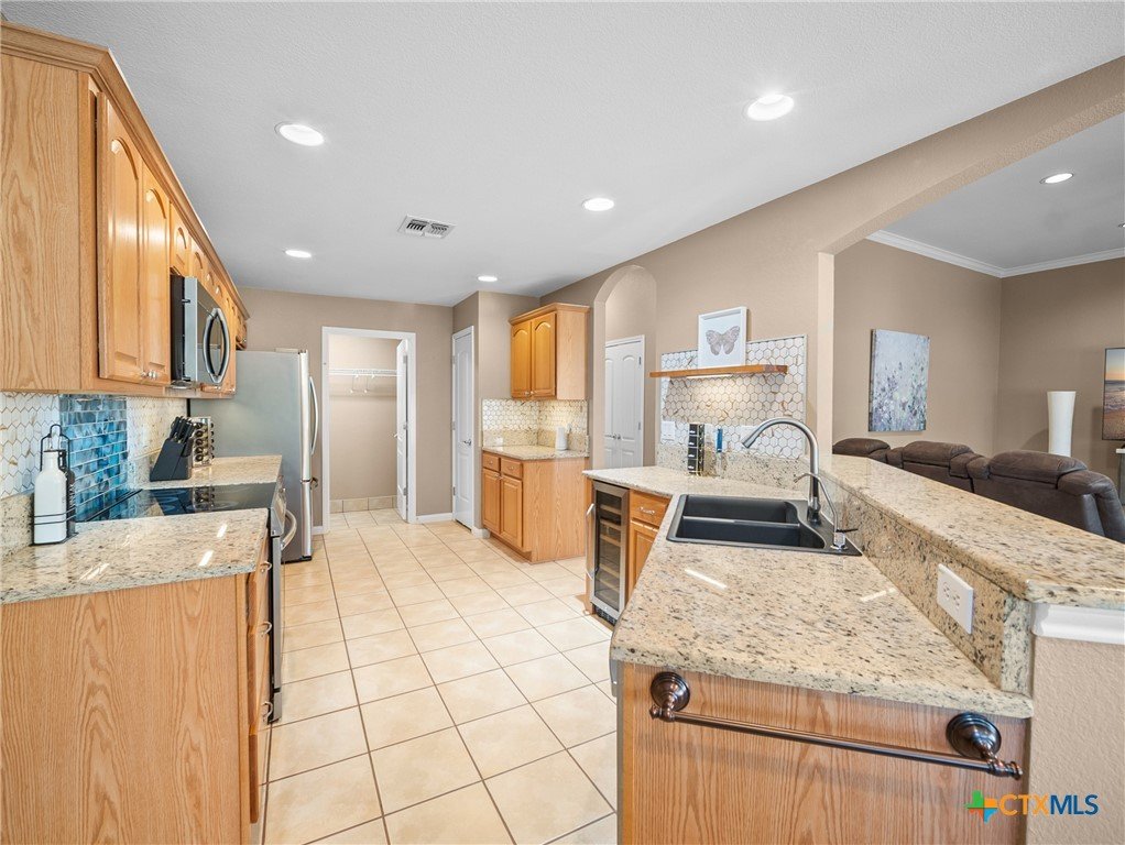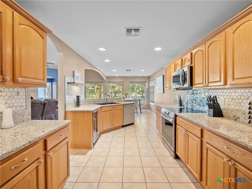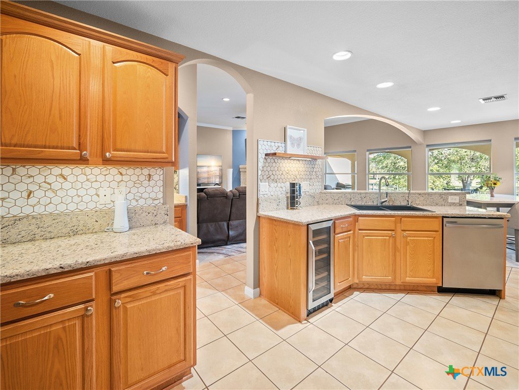 Situated directly on the Northern Hills Golf Course, this open-concept home offers 3 bedrooms and 2 baths with gorgeous golf-course views from the primary suite, living room, and dining area. Nestled behind the 14th green, the home enjoys a peaceful, scenic setting along a quieter stretch of the course-without the restrictions of an HOA-perfect for anyone wanting both beauty and freedom. The kitchen boasts granite countertops, upgraded appliances, and a seamless flow into the living area-perfect for entertaining. A striking stone fireplace anchors the living room, and a convenient wine bar adds extra charm and functionality for hosting. The split primary suite provides added privacy and features a spacious walk-in shower and double vanities. Step outside to a generous covered patio where you can relax and take in the serene, park-like views of the golf course throughout the day.