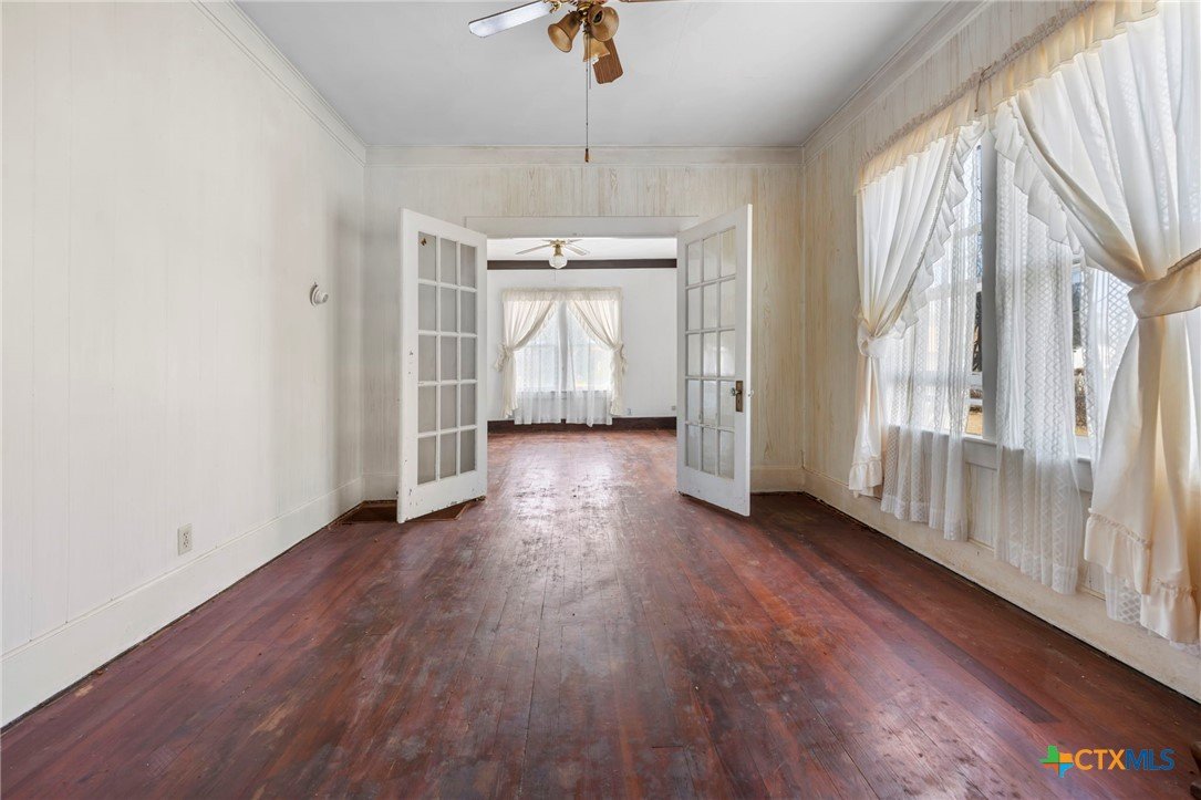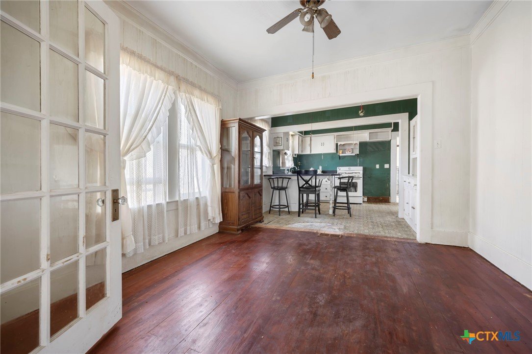 Opportunity awaits at 401 Love Ave in Florence, TX. Built in 1904, this charming stucco home sits on a spacious .43-acre lot and offers the kind of character you simply can’t replicate. The home features 3 bedrooms and 2 bathrooms, generous living spaces, and classic French doors that add elegance between the living and dining rooms. Original hardwood floors are in great condition and would be stunning once refinished. The oversized primary bedroom offers private access to a wraparound porch that extends along the back of the home — perfect for morning coffee or relaxing in the evenings. With strong bones and historic charm throughout, this property is a fantastic opportunity to restore and create something truly special.