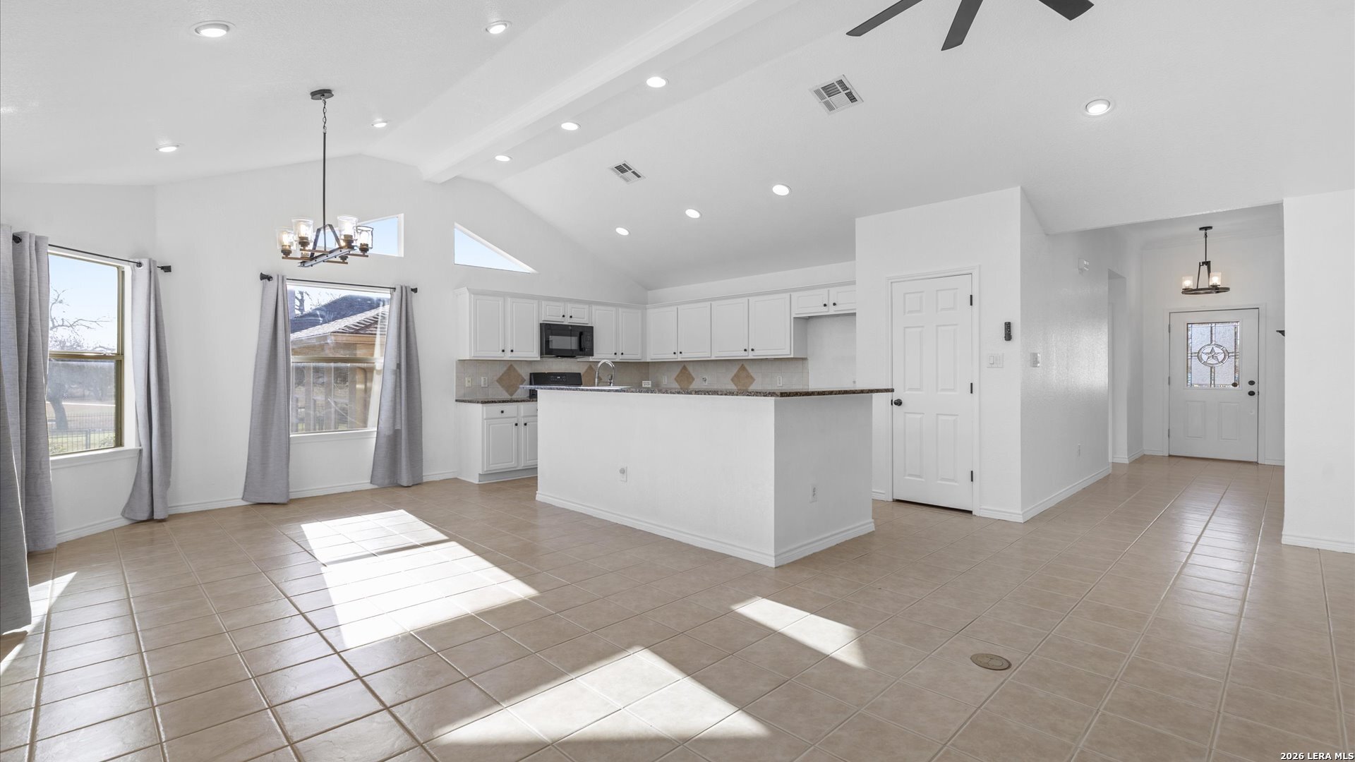 Stunning one-story home situated on a premium golf course lot with sweeping fairway views. This open-concept floor plan features spacious living, dining, and kitchen areas with no carpet throughout and an abundance of windows that bring in natural light and showcase the scenic setting. The split floor plan offers privacy, with an oversized primary suite featuring a walk-in shower and generous closet space. The kitchen is designed for both function and style with granite countertops, ample prep space, gas cooking, and stainless steel appliances. Step outside to a large covered patio overlooking the fairway-perfect for relaxing or entertaining while enjoying the peaceful golf course backdrop. No HOA!! Garage offers golf cart storage and plenty of space ~ recent updates: interior paint, tank-less HWH & updated fixtures throughout to include grab bars in bathrooms.