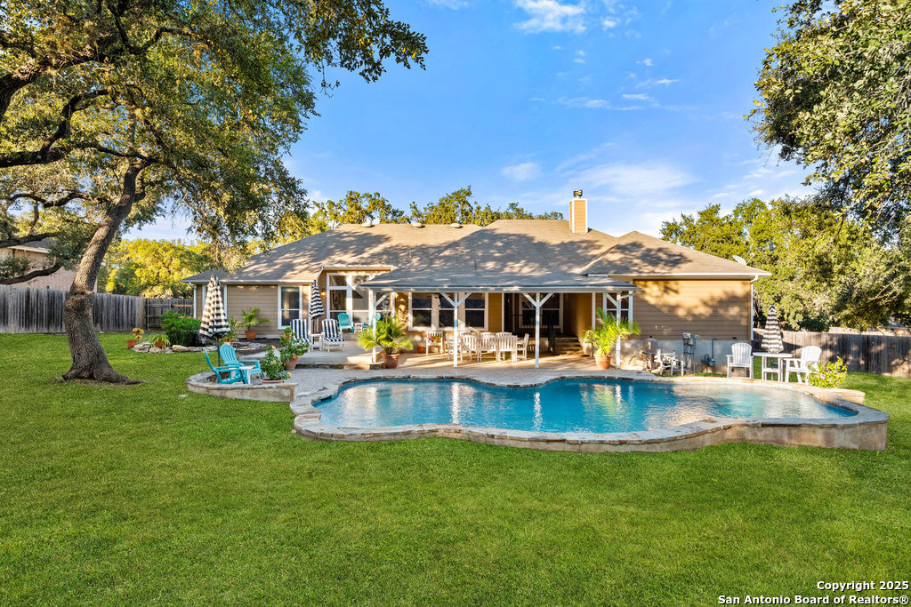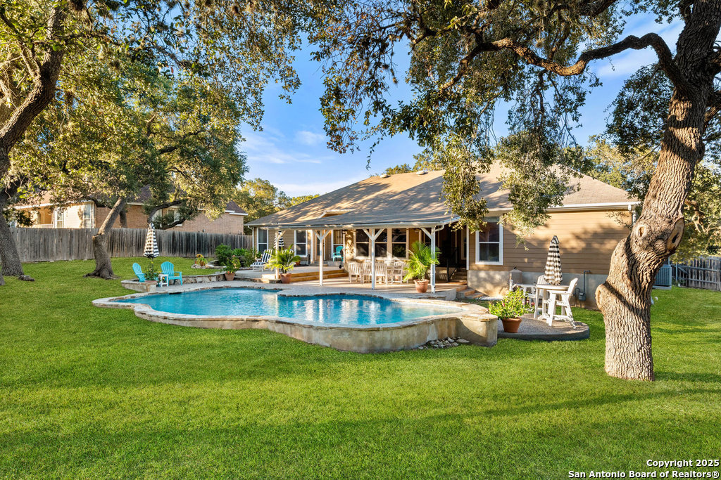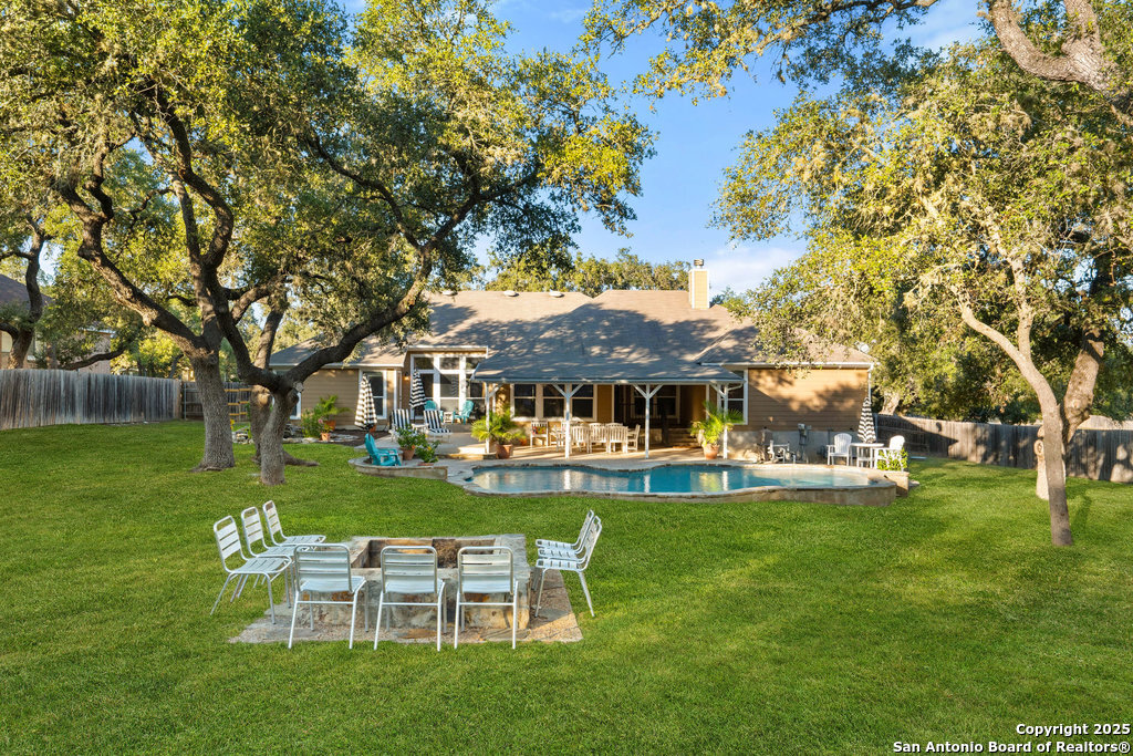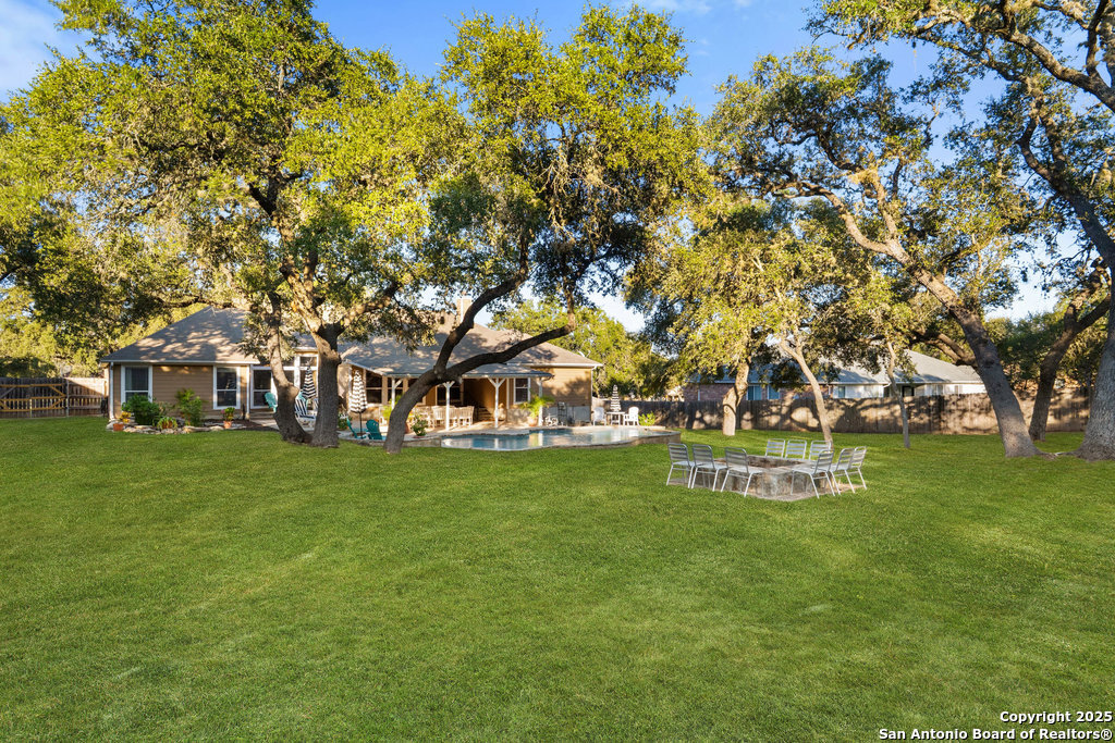 Here's your dream home in West Oak Estates - complete with a gorgeous pool, mature oak trees, and over half an acre of space. This one-story residence offers 4 bedrooms, 3 bathrooms, and 3,170 sq. ft. on a .77-acre lot, creating the perfect balance of comfort and room to grow. Step inside to find hardwood flooring, two spacious living areas, and a chef's kitchen with abundant granite counter space, ideal for family living and entertaining. The very large primary suite is a true retreat, with direct access to the pool area and a luxurious bath featuring a separate shower and his & hers closets. Out back, discover your own summer paradise: a large covered patio and a sparkling inground pool surrounded by mature oaks, offering both shade and privacy. With its expansive lot, thoughtful layout, and resort-style outdoor living, this home captures the best of West Oak Estates living.
