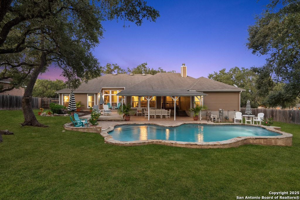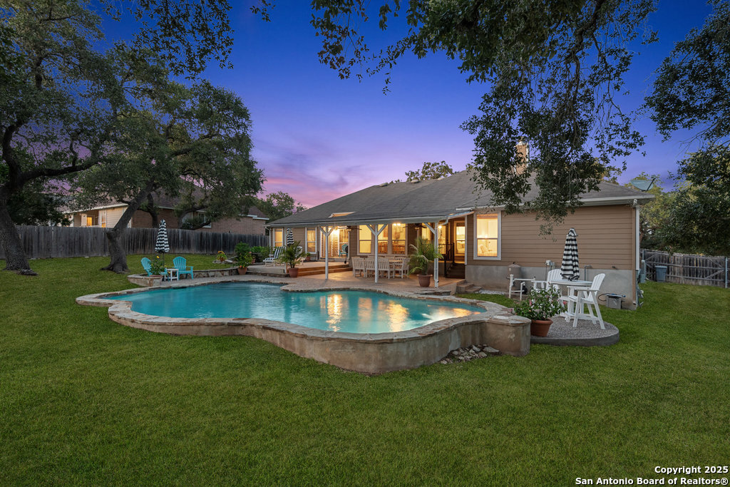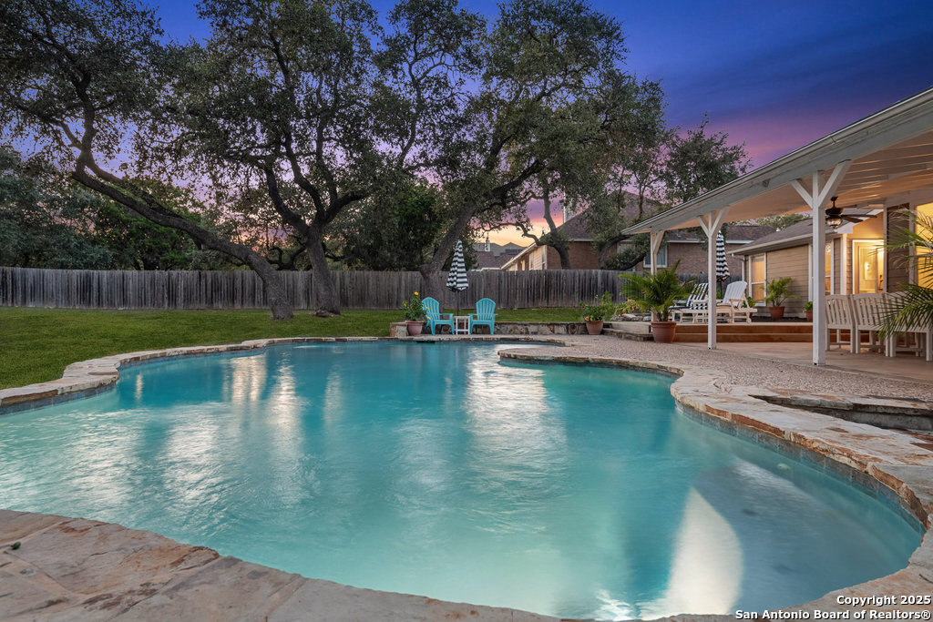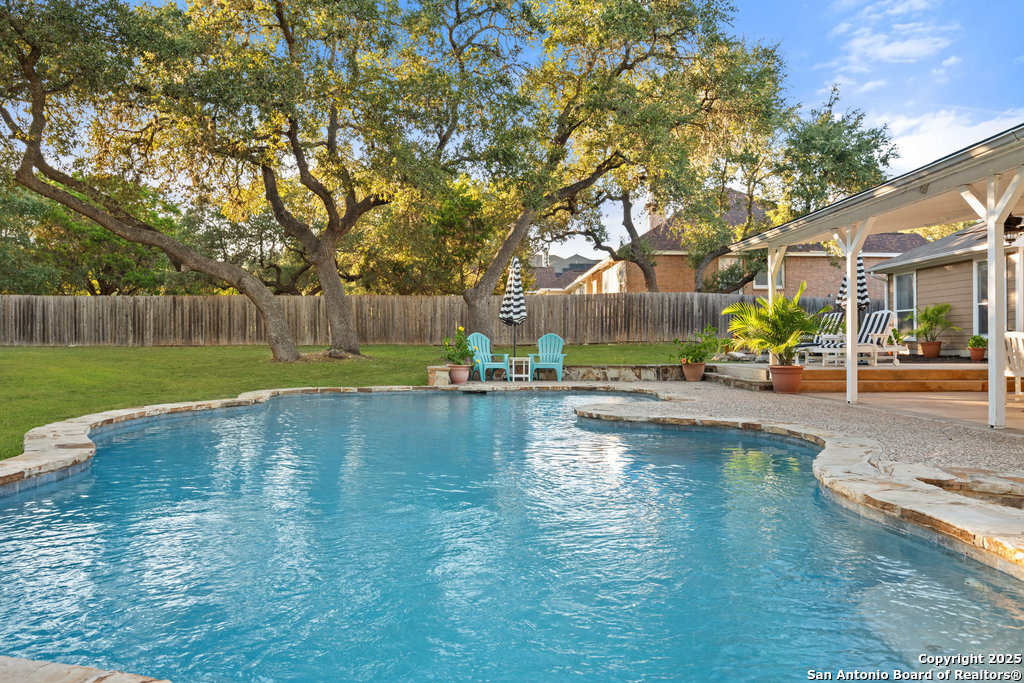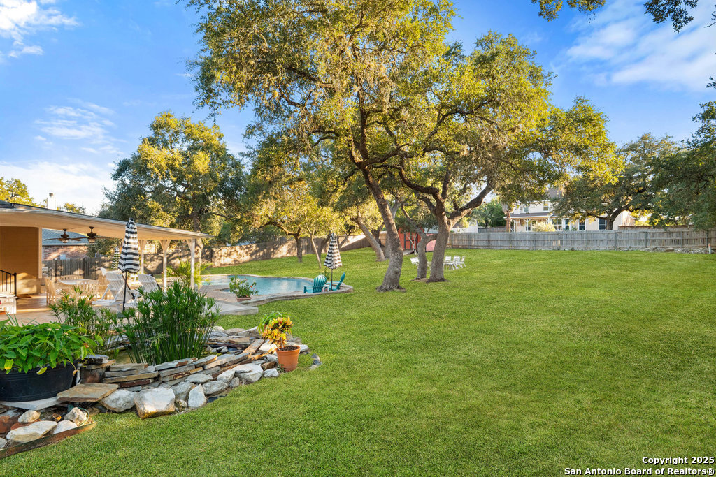 Here's your dream home in West Oak Estates - complete with a gorgeous pool, mature oak trees, and over half an acre of space. This one-story residence offers 4 bedrooms, 3 bathrooms, and 3,170 sq. ft. on a .77-acre lot, creating the perfect balance of comfort and room to grow. Step inside to find hardwood flooring, two spacious living areas, and a chef's kitchen with abundant granite counter space, ideal for family living and entertaining. The very large primary suite is a true retreat, with direct access to the pool area and a luxurious bath featuring a separate shower and his & hers closets. Out back, discover your own summer paradise: a large covered patio and a sparkling inground pool surrounded by mature oaks, offering both shade and privacy. With its expansive lot, thoughtful layout, and resort-style outdoor living, this home captures the best of West Oak Estates living.