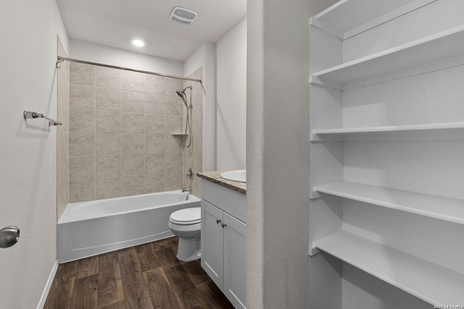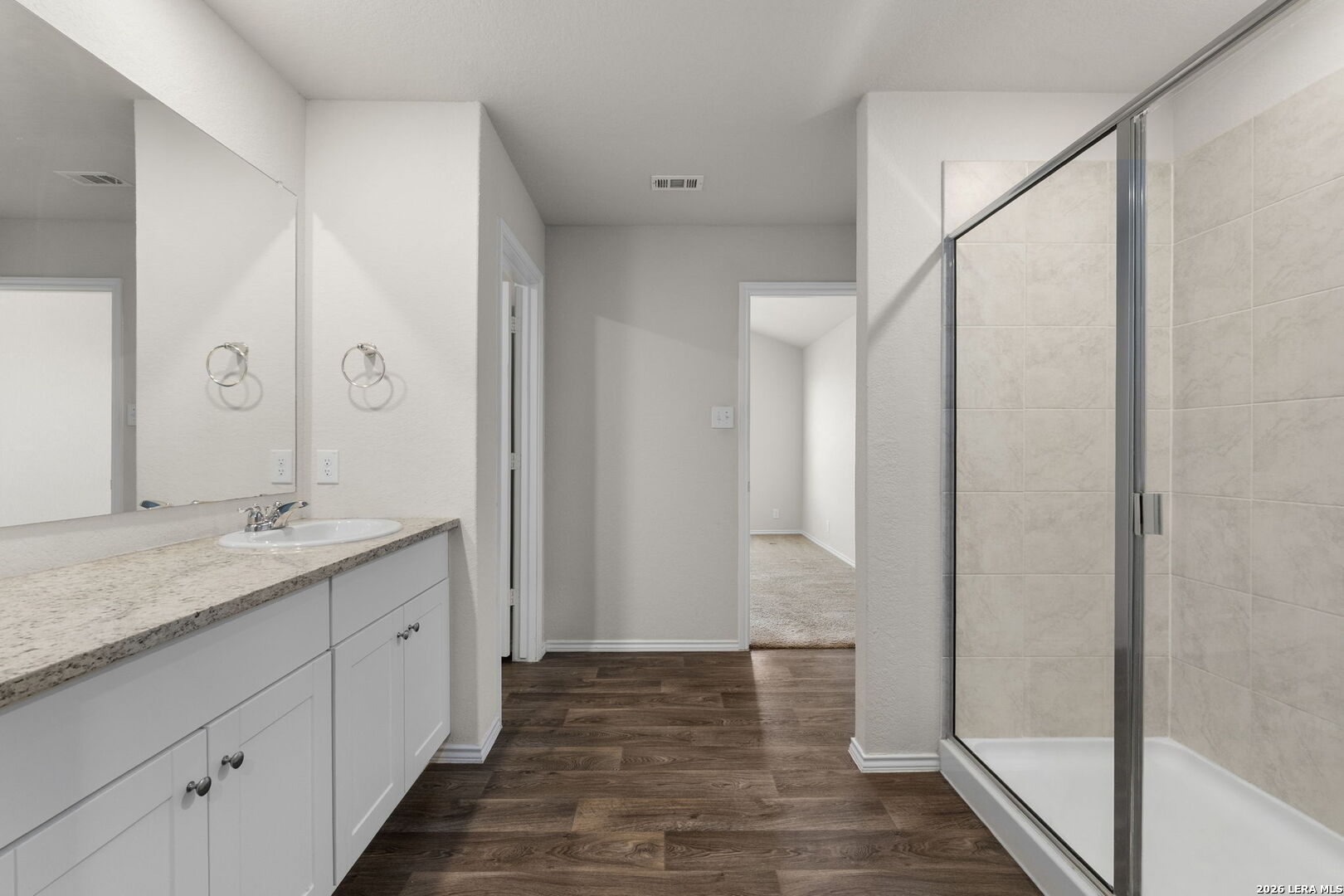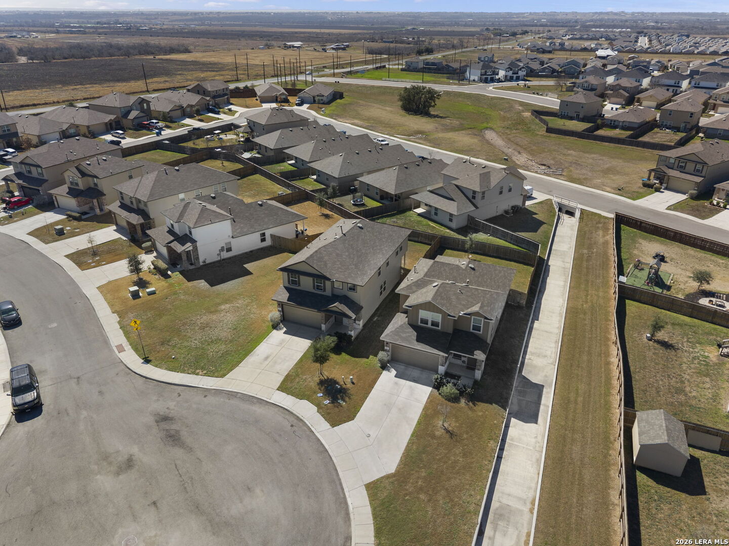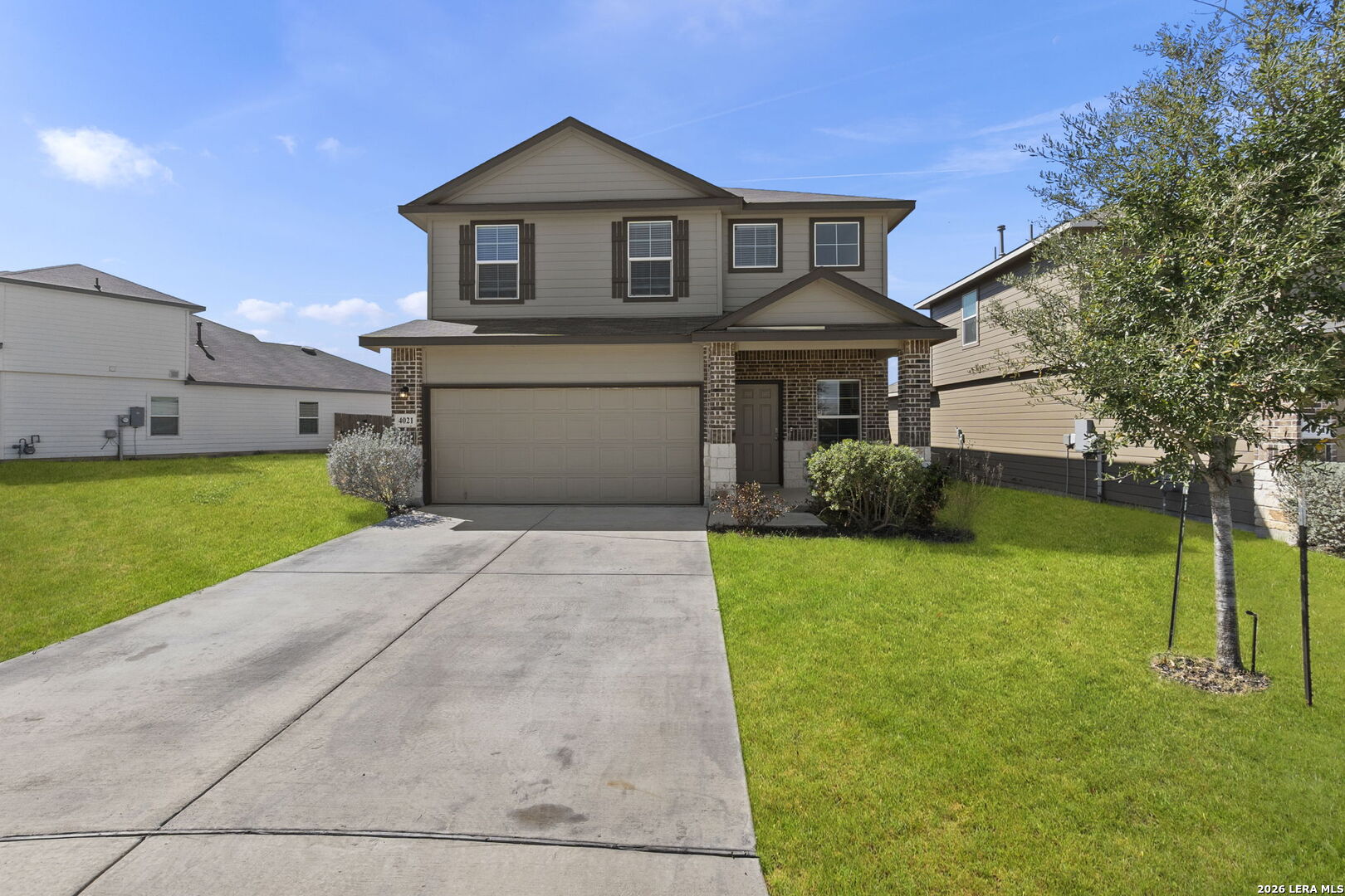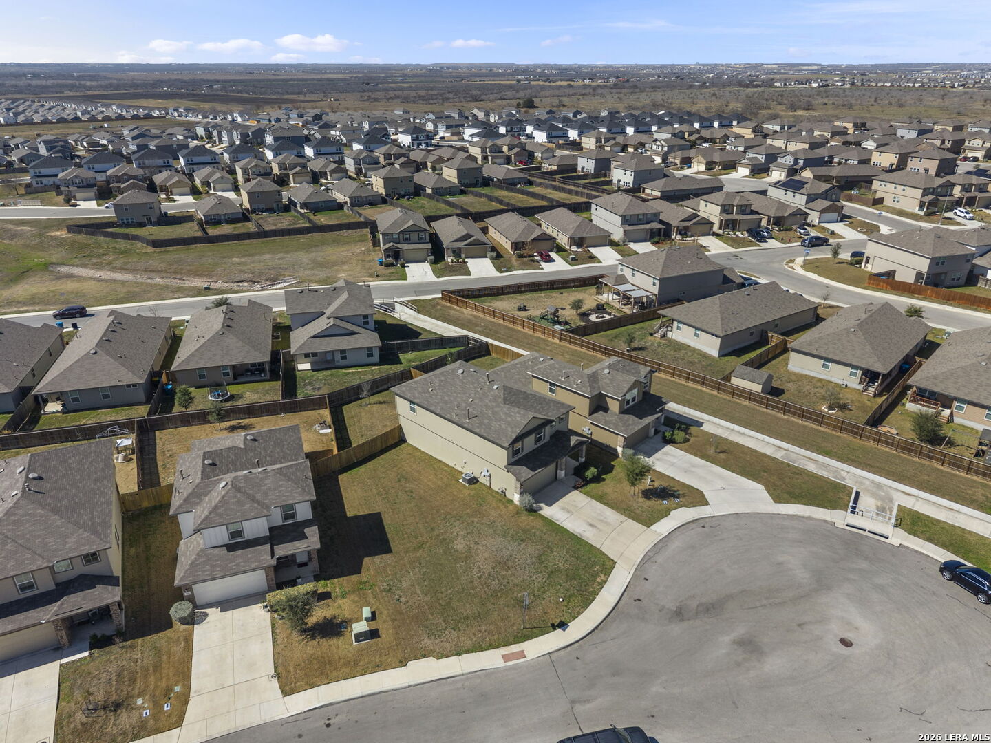 Welcome to this beautifully designed two story home offering 5 spacious bedrooms (including a convenient downstairs suite), 3 full baths, 2,498 square feet of thoughtfully designed living space, and a 2-car garage. From the moment you step inside, a grand entryway draws you into an airy open concept layout perfect for both everyday living and entertaining. The heart of the home is the stunning gourmet kitchen, featuring granite countertops, an oversized island ideal for gathering, a generous corner pantry, and a conveniently located utility/laundry room. The kitchen flows effortlessly into the dining area and living room, creating a seamless space filled with natural light and connection. A private secondary bedroom and full bath downstairs provide the perfect retreat for guests. Upstairs, you'll find a versatile loft that can serve as a game room, media space, or home office, along with 4 well appointed bedrooms and 2 full baths. The private primary suite is a true sanctuary, complete with a cozy sitting area and a spa inspired ensuite featuring a grand walk-in shower, and an expansive walk in closet. Step outside to enjoy the covered rear patio, perfect for relaxing evenings or weekend gatherings. Additional highlights include durable flooring in high-traffic and wet areas, bedrooms and loft area feature plush carpeting, granite countertops in all bathrooms, and full yard landscaping with irrigation for easy maintenance. Ideally located near Randolph Brooks Air Force Base with convenient access to Joint Base San Antonio, as well as premier shopping, dining, and major commuter routes including Loop 1604, Interstate 35, and Interstate 10, this home offers the perfect blend of space, comfort, and accessibility. Don't miss the opportunity to make this exceptional home yours.