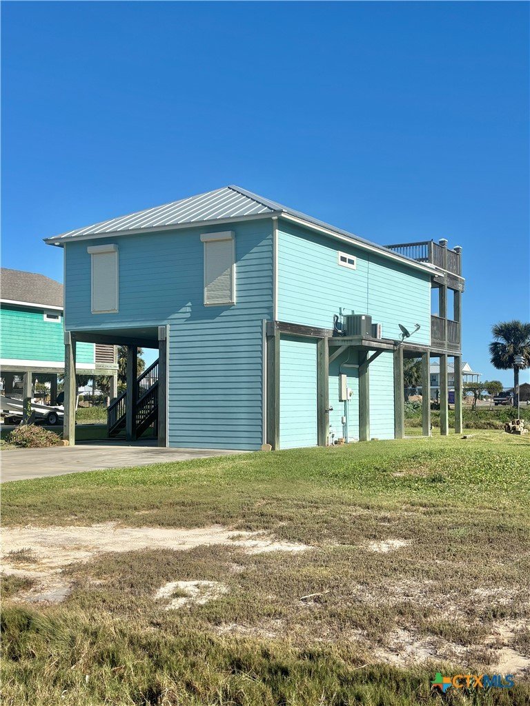 Check out this Clean, Modern, yet Classic POC house on stilts overlooking CARACOL Subdivision, off the corner of fourth and Maple Street. Two bedroom 2.5 bath Hardi-plank house includes south facing covered porch and 3rd level, uncovered deck. Enjoy listening to the rustling palm trees, gazing at the expansive views and catching the southern breezes! French door and picture windows cover south wall and bring light into living, dining areas from covered front porch. Tile floors, cool coastal colors, stacked tile backsplash, center island, black SS appliance pkg., two dining areas and convenient serving table all create a fantastic entertaining atmosphere! Unique glass block windows over kitchen cabinets filter indirect, natural light into kitchen. Master bedroom/bath has walk-in tile shower w/rock bottom! Guest room has access to full guest bath with tub/shower combo. Hurricane shutters on French doors and bedroom windows allow for easy lock down. Covered fish cleaning station in backyard. Golf cart garage under house. Utility room/tack room complete with washer/dryer and toilet on lower level. Also, covered patio area down is convenient for barbecuing and watching kids enjoy their roll toys! The driveway to road has ample parking for family and visitors. The perfect place for your family to enjoy POC without breaking the bank! Golf cart to Mermaids for ice cream or Kingfisher Beach for a swim! Don’t miss out on your 2026 Summer in POC!