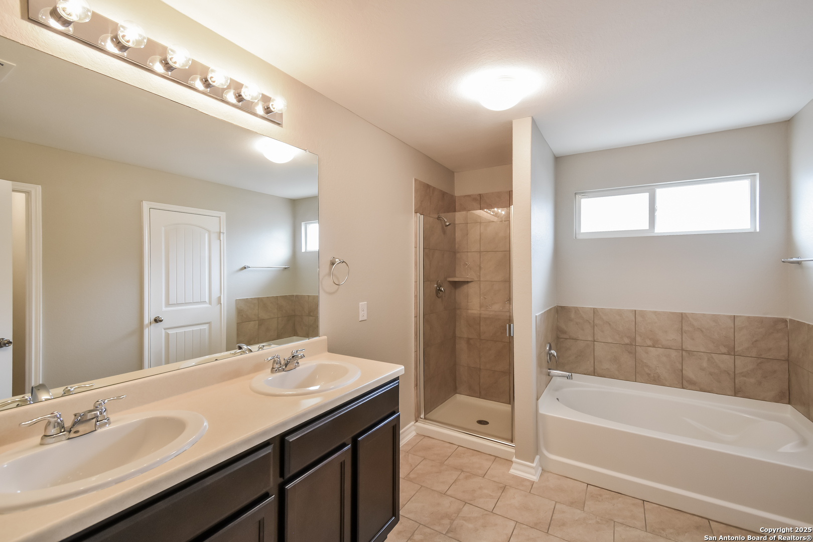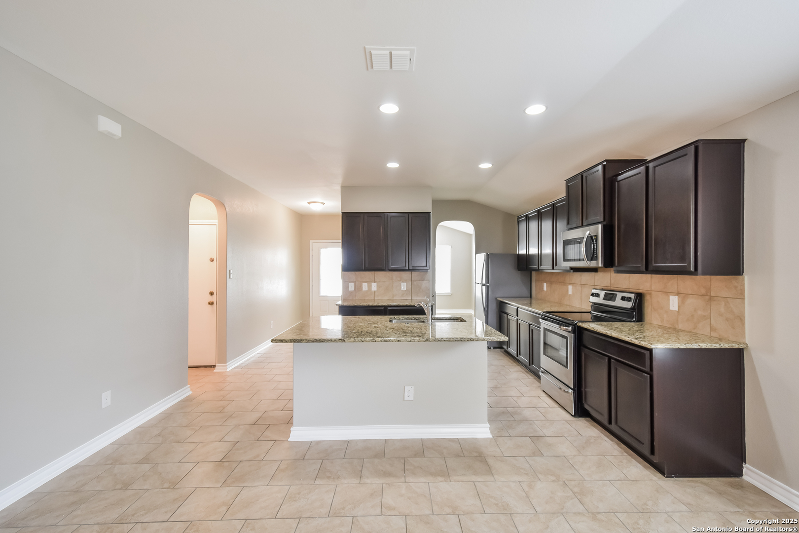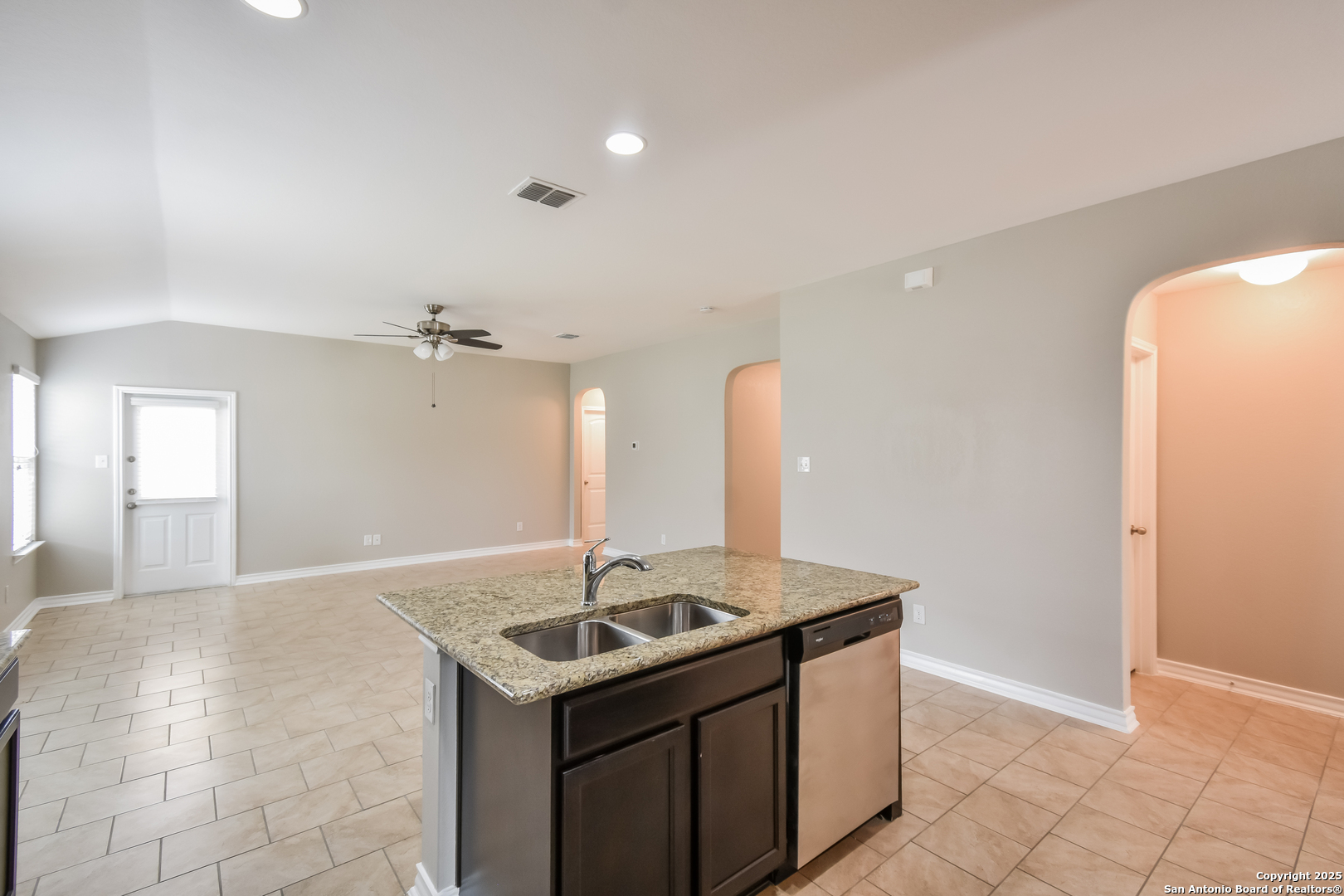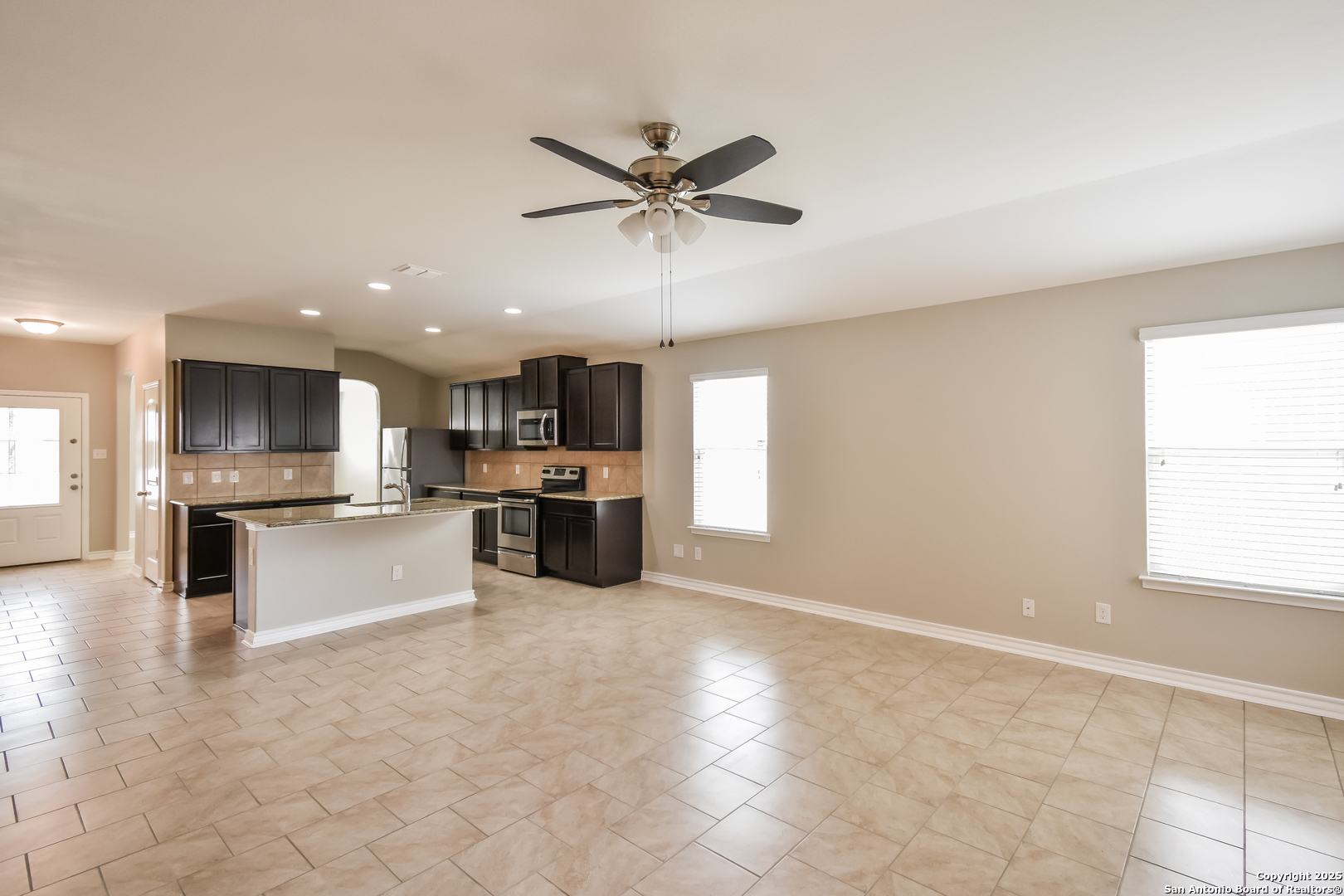 Welcome to this well-maintained home featuring 3 bedrooms, 2 bathrooms, and 1,651 sq. ft. of thoughtfully designed living space. Located in the desirable Riposa Vita community, this property offers easy access to Loop 410 and US-87, making commuting a breeze. As you enter, you're greeted by a flexible formal dining room to the left, which can easily be converted into a home office or study. The heart of the home is the open-concept kitchen and spacious family room, perfect for both daily living and entertaining guests. The primary suite is privately tucked away at the back of the home and boasts a large en-suite bathroom with dual vanities and a generous walk-in closet. Two additional bedrooms and a full bath provide plenty of space for family or guests. Step outside to a spacious covered patio, ideal for enjoying morning coffee or hosting weekend gatherings. The backyard offers ample room for pets, play, or gardening. This home combines comfort, convenience, and functionality-making it a must-see opportunity in San Antonio!