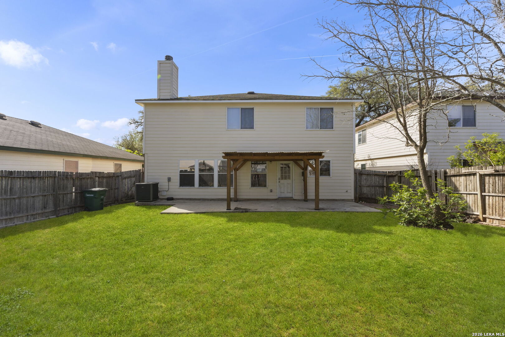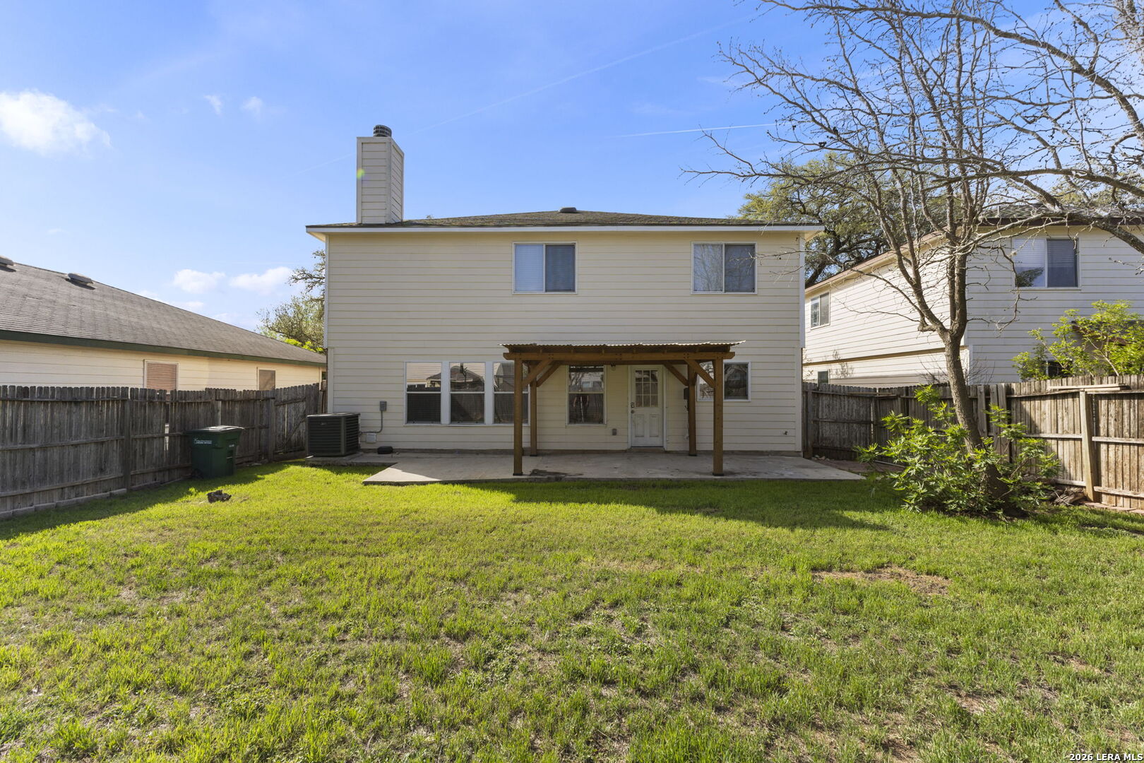 This charming 2-story 3 bedroom 2-1/2 bath home is move in ready. Located in the neighborhood of Summit at Bulverde. A 2420 square foot home that is 3 sides brick built by Centex Homes in 2004. Living space downstairs with all bedrooms upstairs. Ceramic tile and new LVP flooring throughout upstairs. Enjoy two living areas, an large open kitchen with a walk-in pantry and laundry room. Beautiful accent colors on kitchen cabinets. All electric home. Fireplace in family room. New HVAC in 2025, hot water heater in 2023 and a newer roof August 2023. An outdoor Pergola in the back offers entertaining space. Playscape conveys. A huge game room upstairs offers additional living space. Walking distance to the elementary school. Convenient to 1604 and minutes away to 281, I-35 giving you easy access to shopping, schools and work.