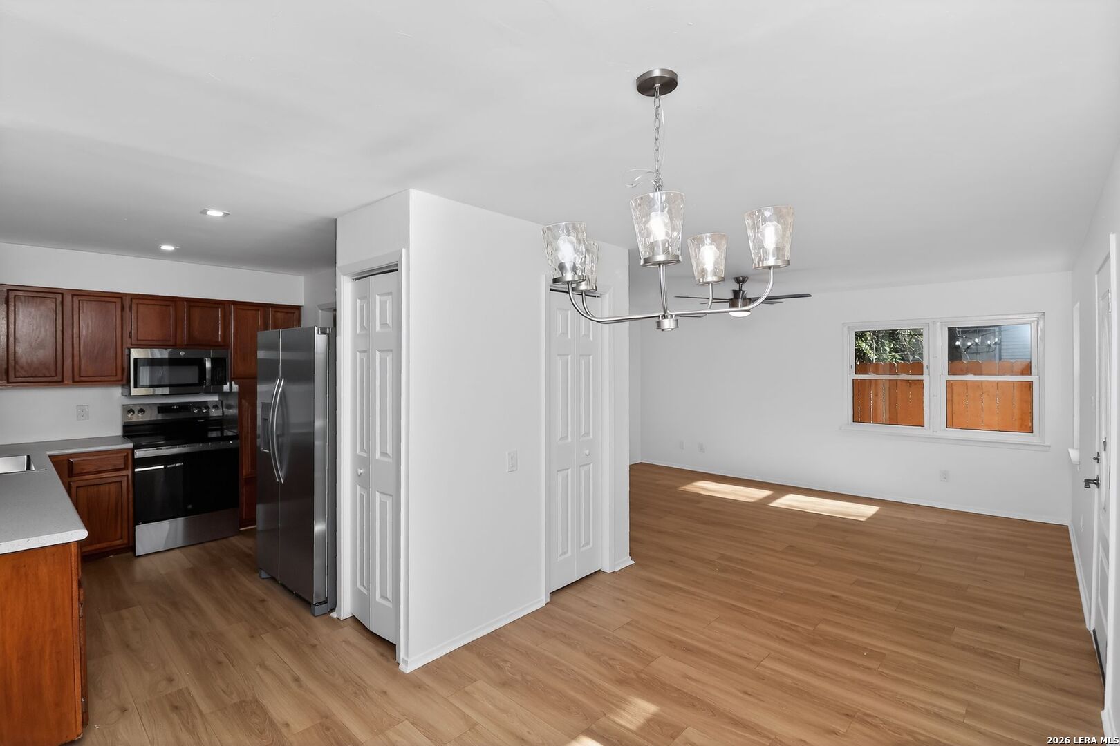 Completely renovated and move-in ready, 404 Hugo offers a rare blend of classic brick ranch charm and thoughtful modern updates in the heart of Kerrville. This 2-bedroom, 2-bath home spans approximately 1,090 square feet with high ceilings, abundant natural light, and a clean, open layout that lives larger than its footprint. The interior has been fully refreshed with brand new flooring, updated lighting, fresh paint, and all new appliances in the kitchen. Rich wood cabinetry pairs with solid surface countertops, stainless appliances, and a deep single-basin sink for a functional, modern feel. Both bathrooms have been updated, and the spacious primary suite features outside access and an oversized ensuite layout that's uncommon for homes of this era. Major systems have been addressed as well, including a new HVAC system installed in 2024. Situated on a generous 0.24-acre level lot in the established Westland neighborhood, the property offers extensive concrete parking, a covered front porch, fresh fencing, and a backyard ready for customization. Zoned to Starkey Elementary and just minutes from the Guadalupe River and downtown Kerrville amenities, this is a turnkey property with meaningful improvements already completed. Come see it today!