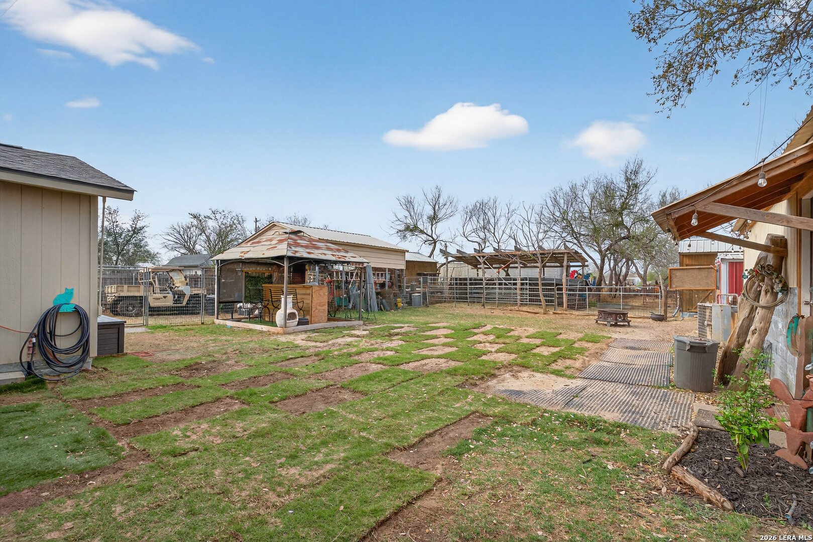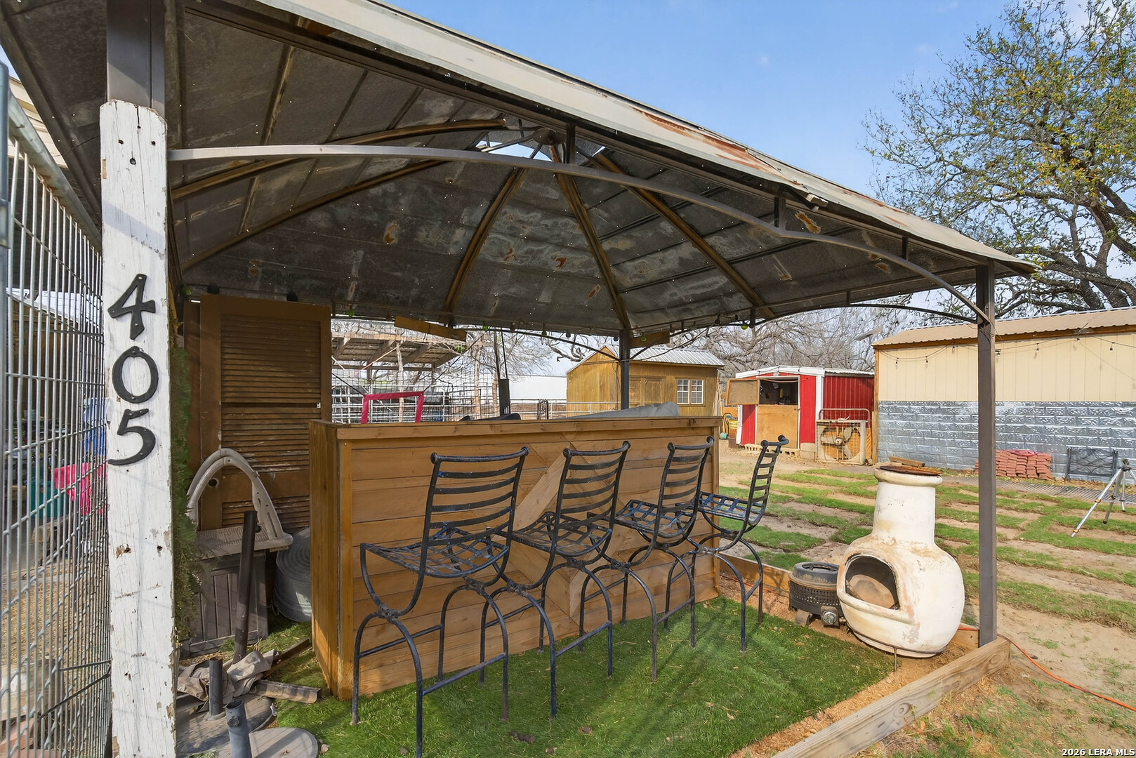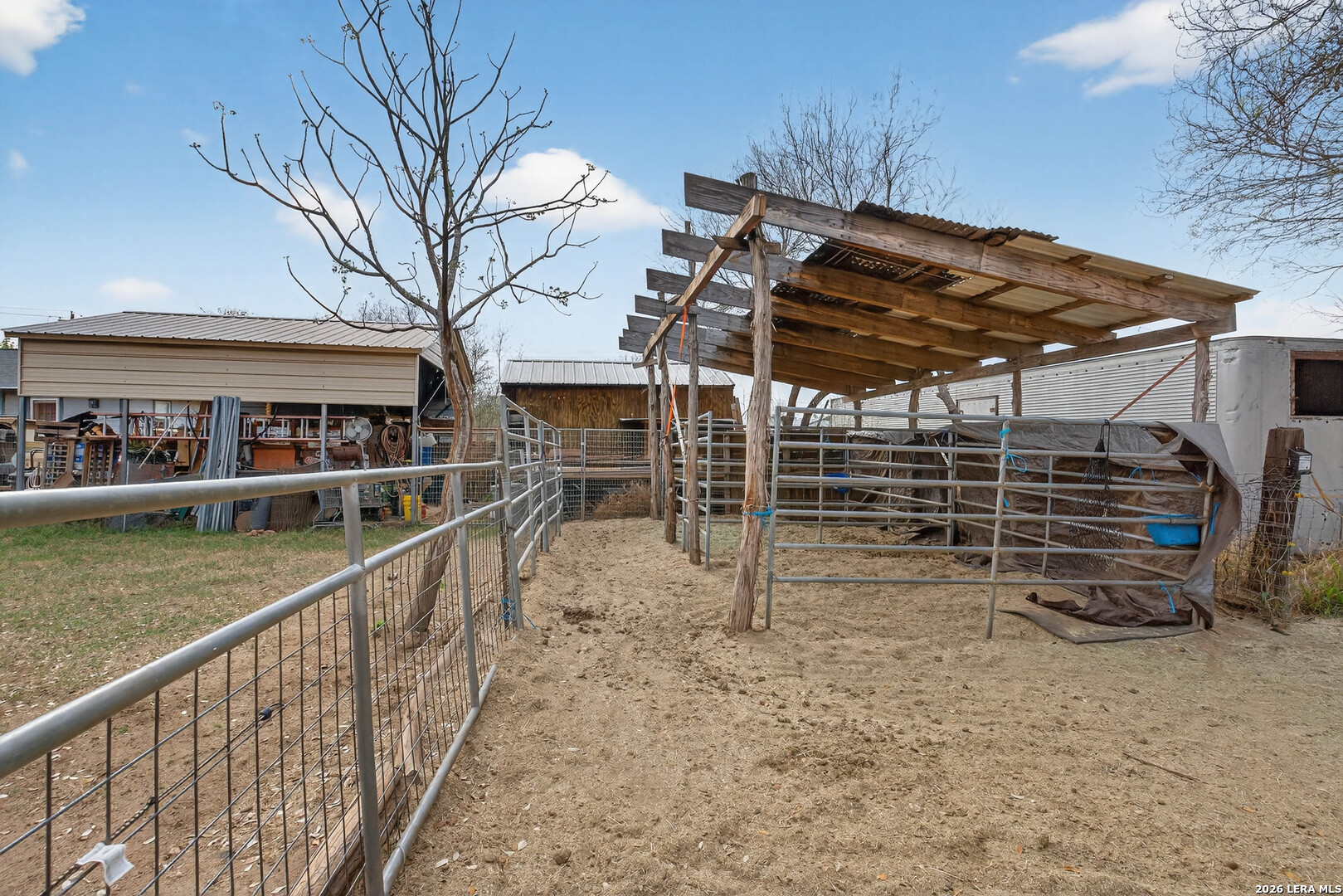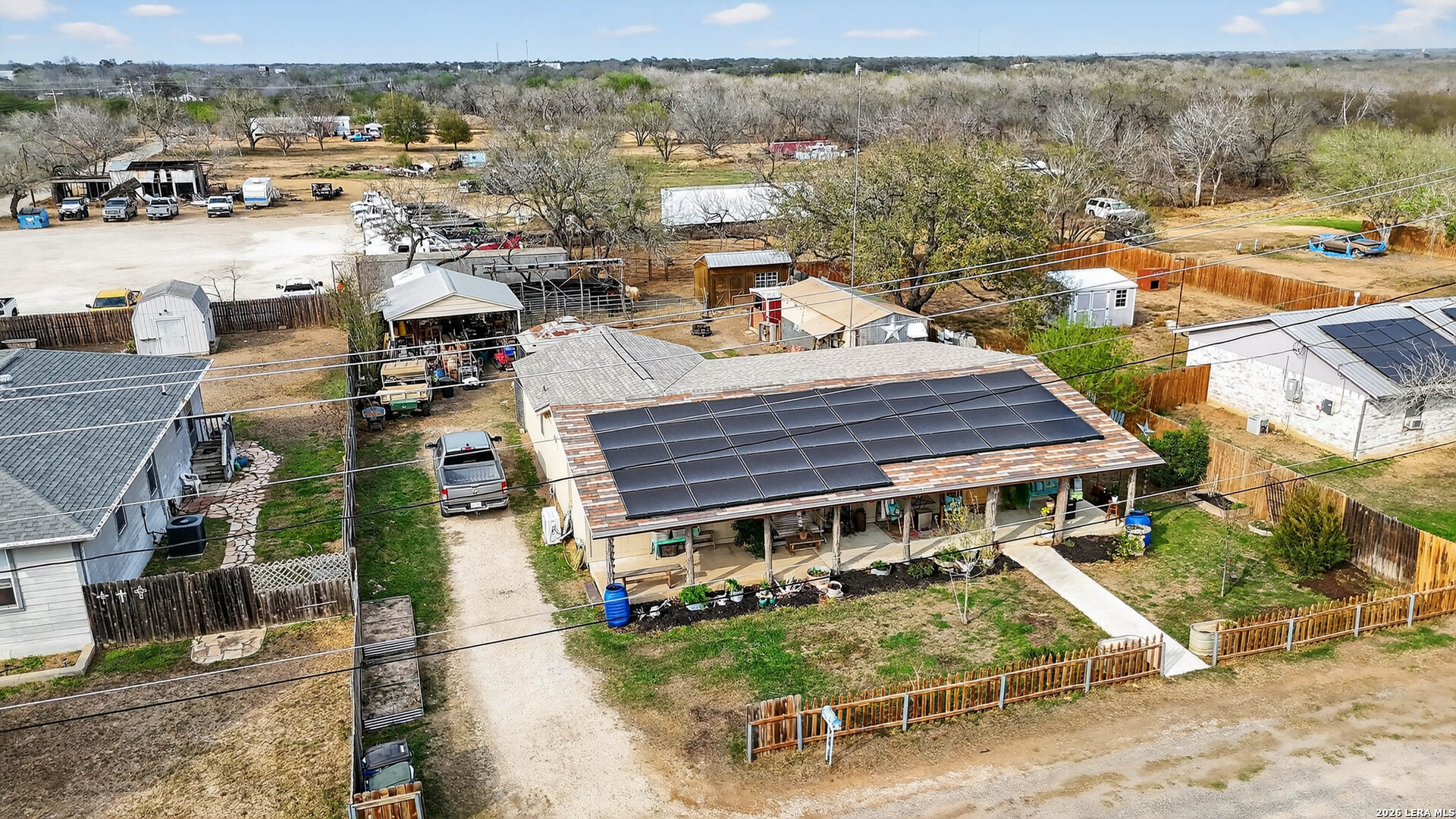 SINGLE STORY COUNTRY CHARM!!! Enjoy the freedom of country living on an oversized lot with no HOA and endless possibilities. This charming single-story home welcomes you with a full-length cedar post front porch and an inviting outdoor gazebo, perfect for relaxing and enjoying wide open space. The property is ideal for hobbyists, homesteaders, or anyone needing room to spread out, featuring a large workshop, additional tack building, chicken coop building, and a versatile 10x20 outbuilding with electricity, water, and washer/dryer hookups-perfect for a future casita or guest retreat. Inside, the open floor plan offers a warm country feel with a unique interior tin sheet metal ceiling, leaded glass accent windows, and an island kitchen showcasing stainless steel appliances, solid wood countertops, and farmhouse hardware. Multiple mini-split HVAC systems and energy-efficient solar panels help keep utility costs down. The spacious primary suite features high ceilings, a large walk-in closet, and a separate shower and tub. Additional highlights include a dedicated media room and RV parking with cleanout-bringing together comfort, functionality, and true country charm. See this one TODAY!!