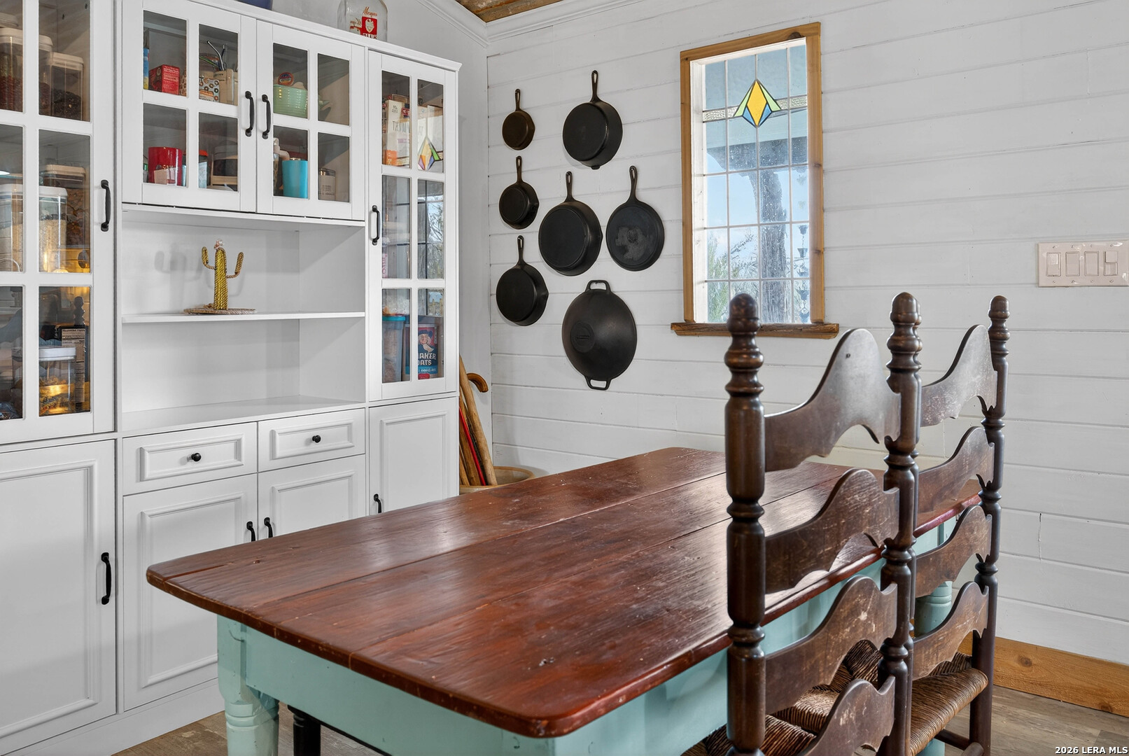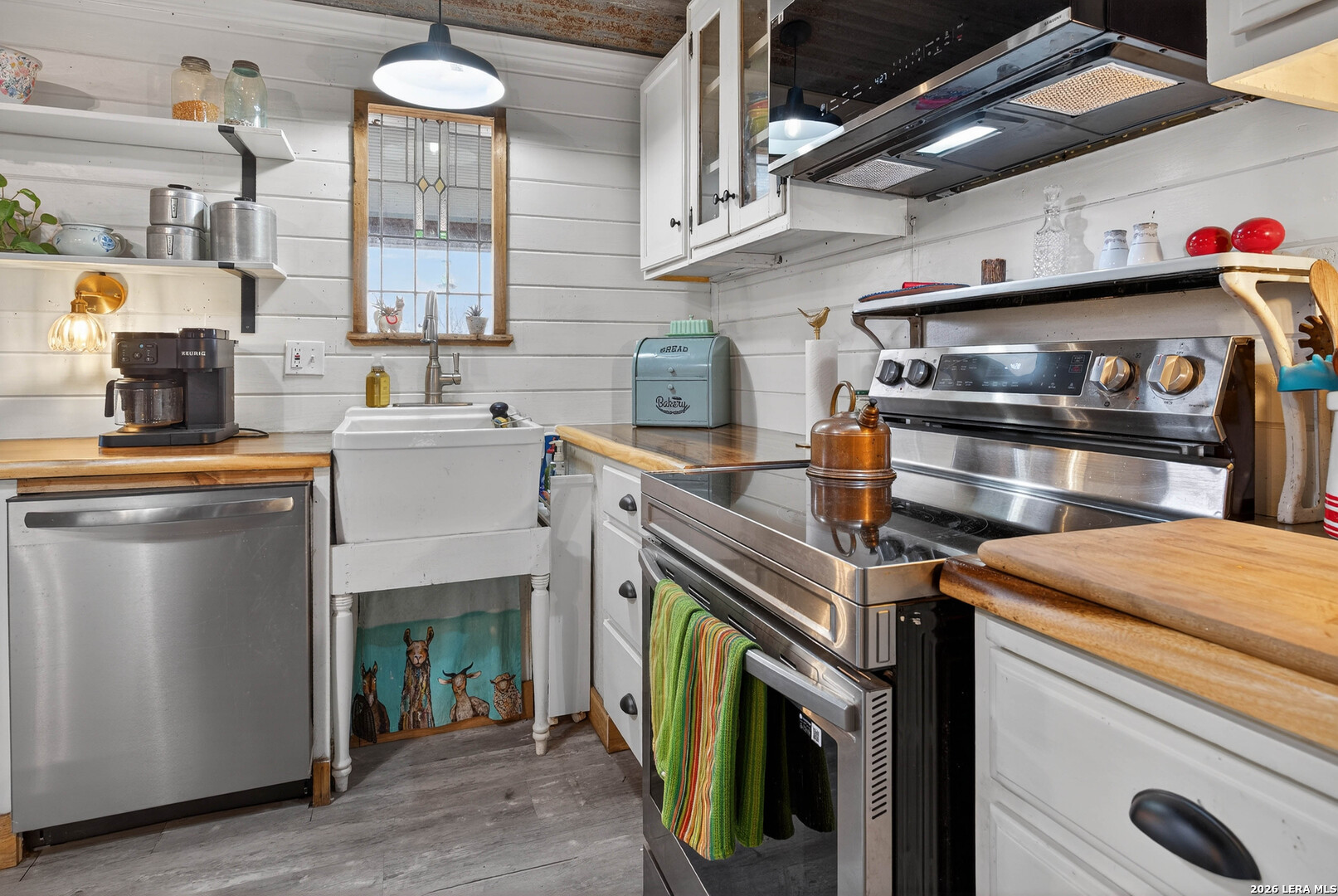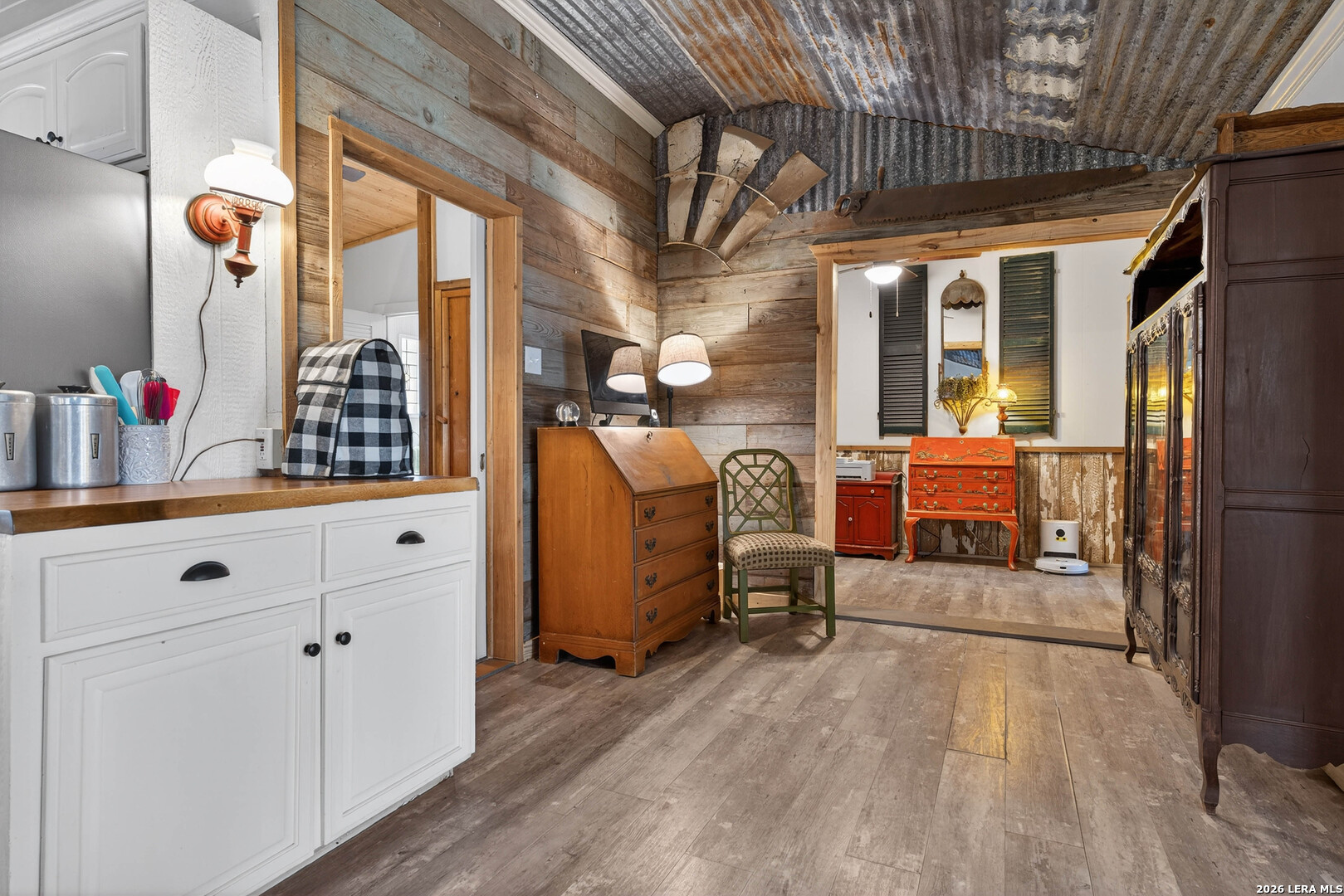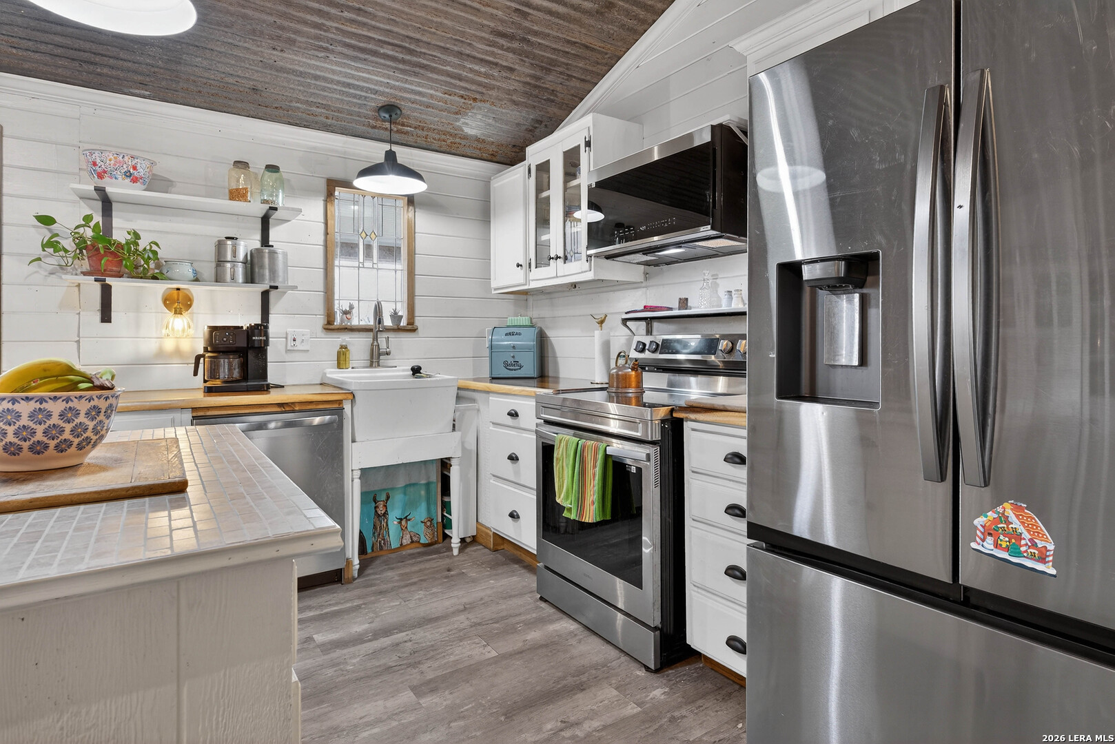 SINGLE STORY COUNTRY CHARM!!! Enjoy the freedom of country living on an oversized lot with no HOA and endless possibilities. This charming single-story home welcomes you with a full-length cedar post front porch and an inviting outdoor gazebo, perfect for relaxing and enjoying wide open space. The property is ideal for hobbyists, homesteaders, or anyone needing room to spread out, featuring a large workshop, additional tack building, chicken coop building, and a versatile 10x20 outbuilding with electricity, water, and washer/dryer hookups-perfect for a future casita or guest retreat. Inside, the open floor plan offers a warm country feel with a unique interior tin sheet metal ceiling, leaded glass accent windows, and an island kitchen showcasing stainless steel appliances, solid wood countertops, and farmhouse hardware. Multiple mini-split HVAC systems and energy-efficient solar panels help keep utility costs down. The spacious primary suite features high ceilings, a large walk-in closet, and a separate shower and tub. Additional highlights include a dedicated media room and RV parking with cleanout-bringing together comfort, functionality, and true country charm. See this one TODAY!!