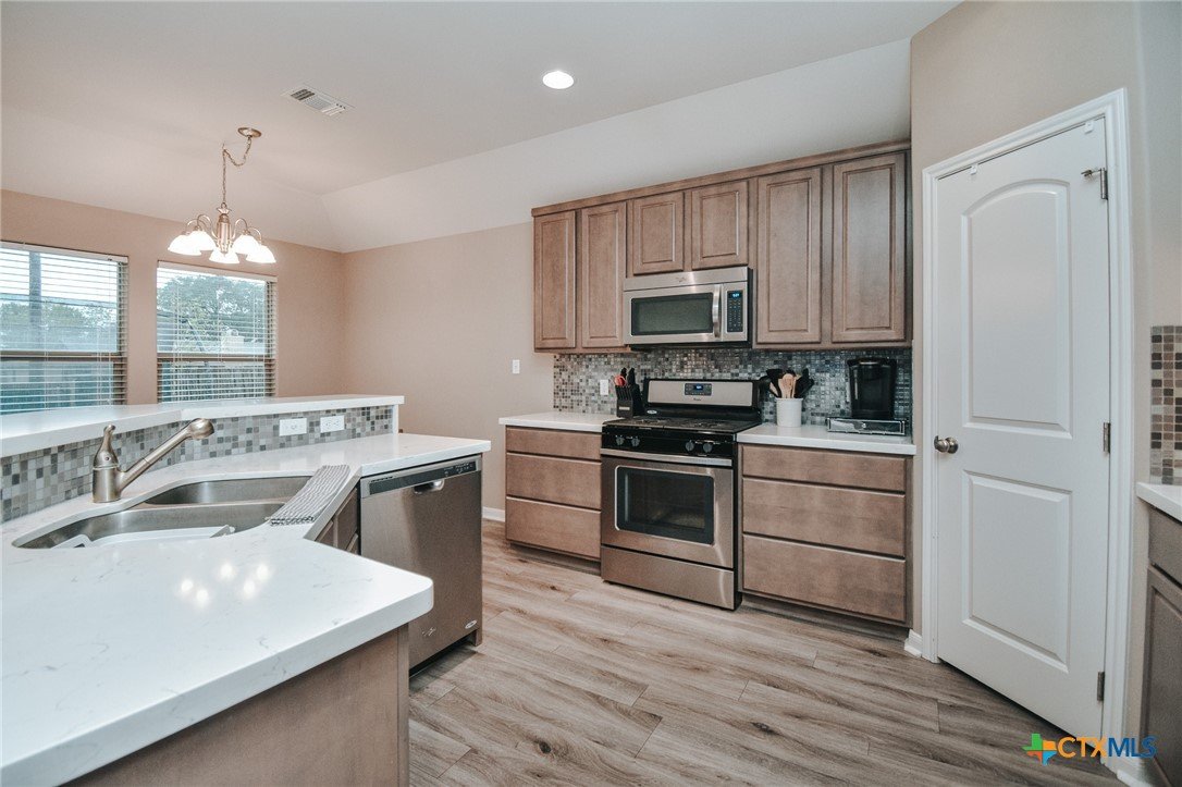 Welcome to this well-maintained single-family residence built in 2015, offering a perfect blend of comfort and modern design. This home features an open concept with a split bedroom plan, also has a walk in shower with a nice oversized tub in the primary bedroom. Relax on the covered back patio in a neighborhood that is right on the edge of town. The floor plan is open and great for entertaining. This one will not last long!