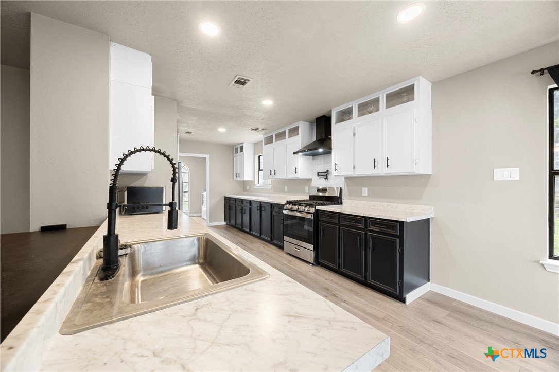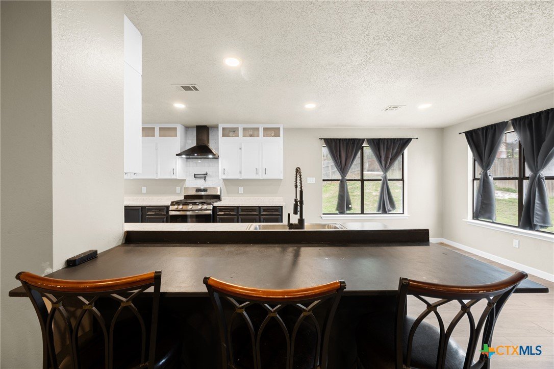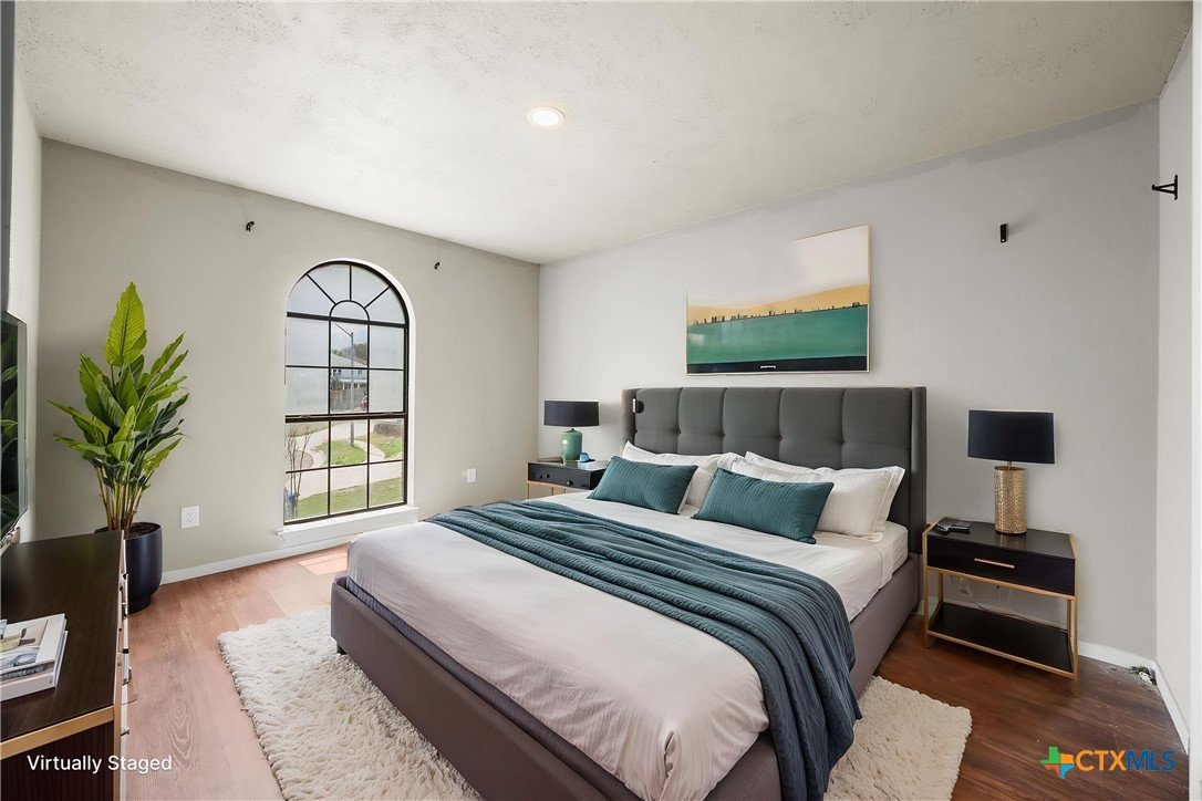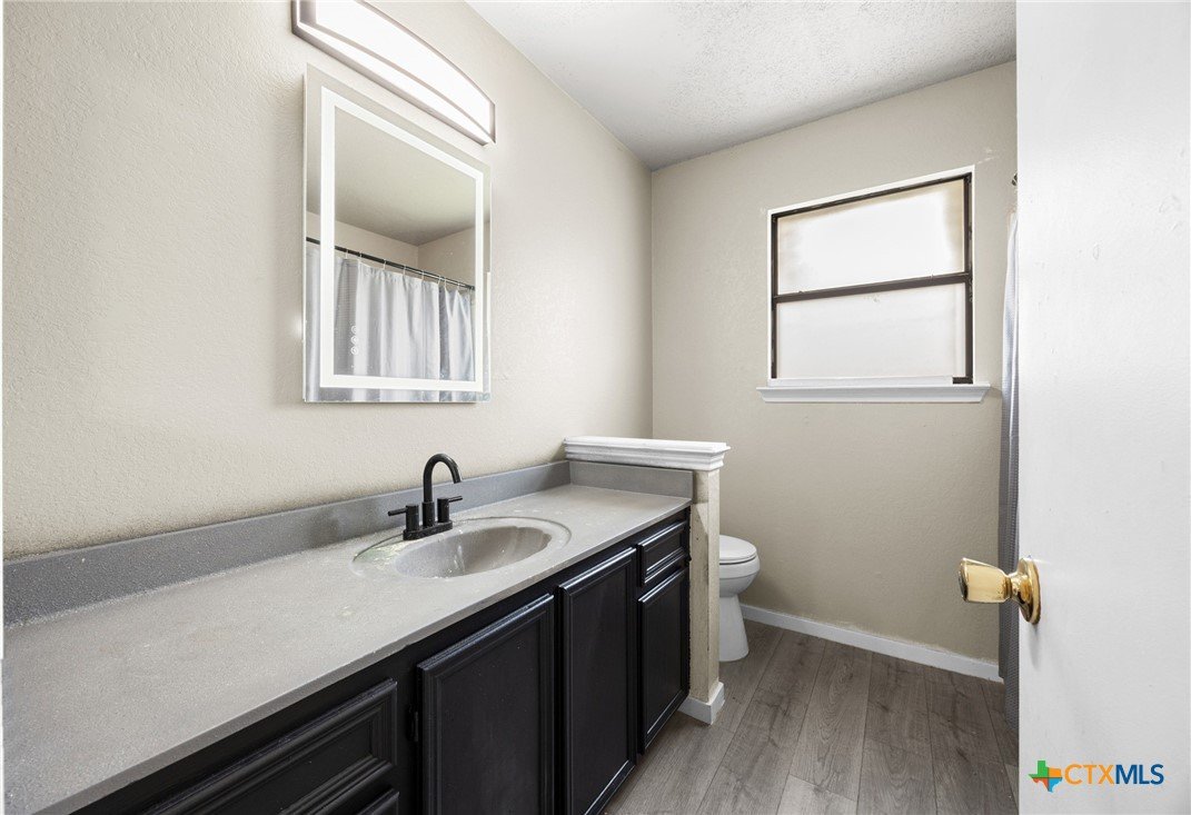 This home features a bright, open-concept layout designed for comfortable living and easy entertaining. The spacious living area showcases wood flooring, recessed lighting, and a charming brick fireplace that adds warmth and character. Large windows bring in natural light and create a welcoming atmosphere throughout the main living space. The open floor plan flows seamlessly into the kitchen, where a breakfast island with bar seating provides the perfect spot for casual dining or gathering. The kitchen also offers abundant cabinetry, modern finishes, and a convenient pantry for extra storage. The primary suite includes a bathroom with dual showerheads and a generous closet. Three additional bedrooms and a versatile living space provide flexible options for family, guests, or a home office. A private laundry area and two spacious attics give plenty of storage. Outside, the backyard layout is perfect for entertaining. Nestled in a desirable Copperas Cove neighborhood, the home is set in a friendly, family-oriented community, offering a comfortable and convenient lifestyle.