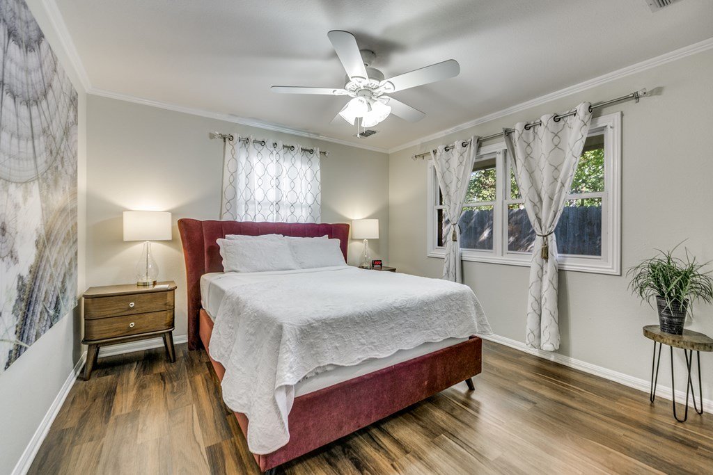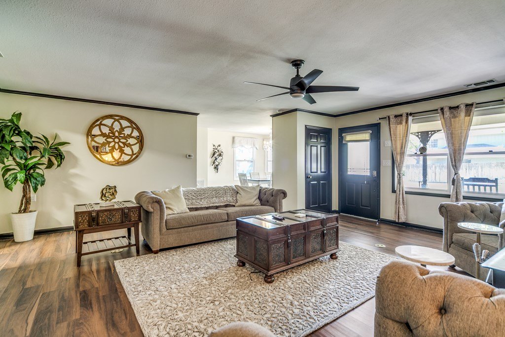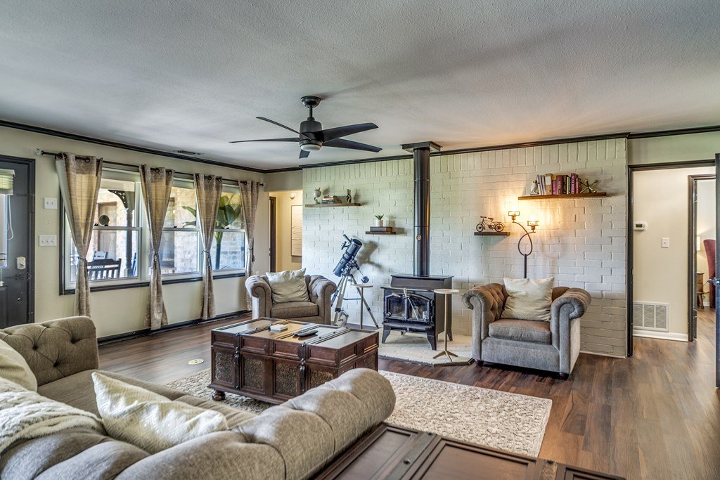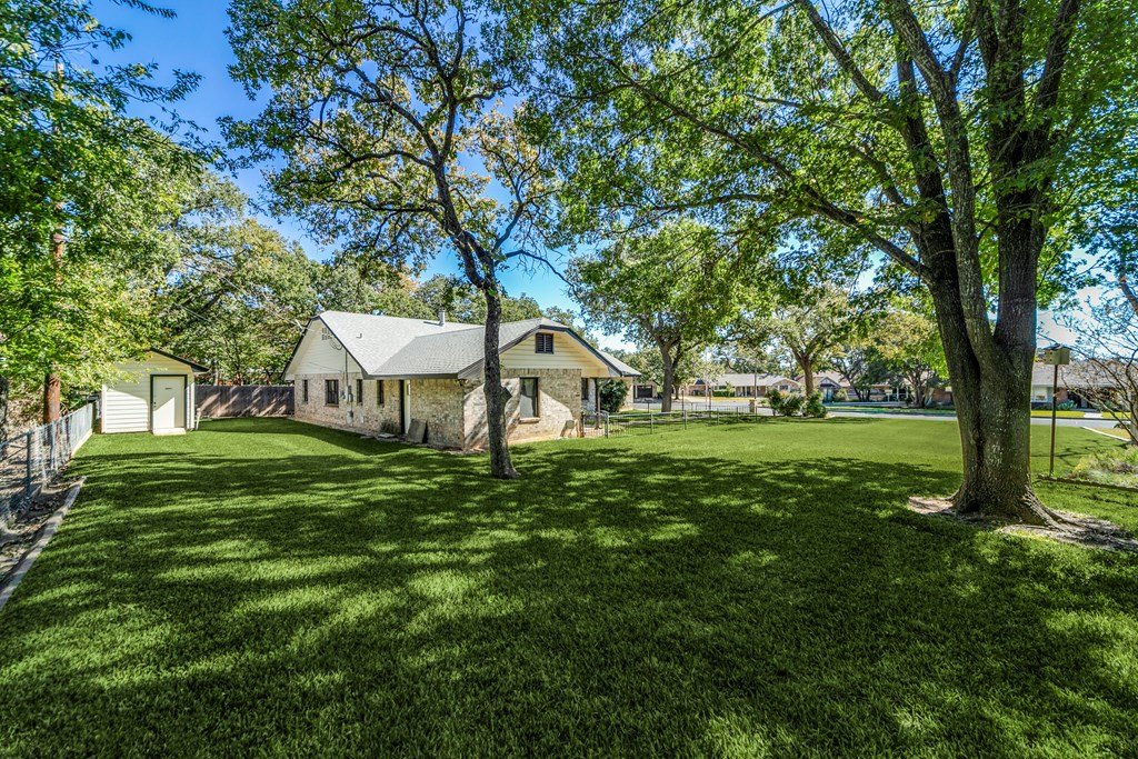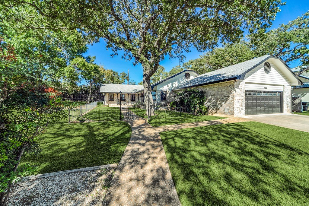 Welcome to this charming and well-maintained single-level home in the heart of the Hill Country: 4 bedrooms, 2 full baths, approx. 2,082 sq ft of living space on a spacious 0.35-acre lot in the Candle Light North subdivision, just over a short 1 mile stroll from historic Main Street in Fredericksburg. Currently holds an active Short Term Rental permit. Nestled on a tree-lined street with mature oaks and a spacious level yard, offering the perfect balance of serenity and convenience—right near downtown Fredericksburg. The living room features a cozy wood-burning stove and flows into a dining area beside the kitchen. Comfortable master suite includes generous walk-in closet—plus easy access to the bath, offering both convenience and a touch of luxe. A large laundry/utility room (with enough space for an extra refrigerator or freezer) and a two-car garage with workspace. Modest updates have made this a great opportunity to add your own touch to the space.
