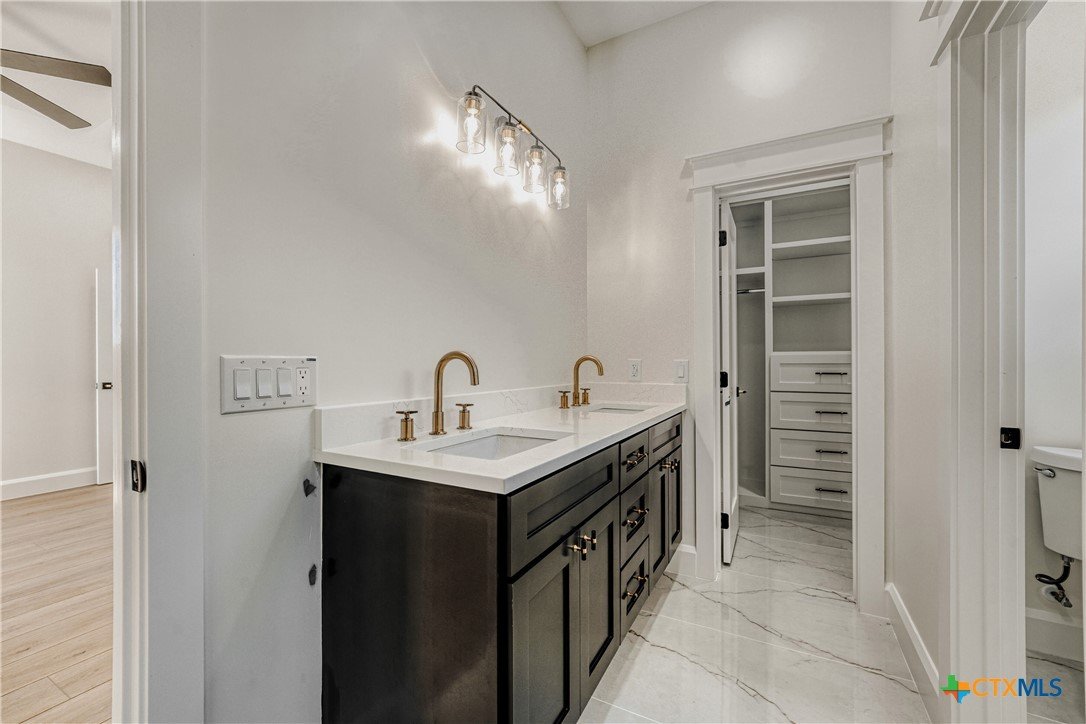 Exquisite Modern Living - Brand New Luxury Home in Downtown Manor! Be the first to live in this Brand New, custom-built luxury home. New contemporary construction with all the works - No expense spared! Featuring luxury vinyl plank flooring, exquisite custom cabinetry, soaring ceilings, designer finishes and fixtures, huge windows, custom closets, and more. Numerous huge windows let all the natural light in! The main floor offers a stunning great room open floor plan with high ceilings, gourmet island kitchen plus a secluded primary suite with a luxury ensuite bath. The second floor overlooks the great room below and offers three large secondary bedrooms and a dual vanity full bath. From the wrought iron double door, light-filled huge garage, to the covered patio and large newly fenced backyard, this home is the complete package! Close by Manor ISD schools and two neighborhood parks, plus access to the north end of the Walnut Creek trail system, which goes all the way to Govalle in Austin. No HOA! Just a few blocks from local restaurants and a mile from the burgeoning development along 290, where you will find more places for dining, Starbucks, Walmart, Home Depot, and more. This new contemporary home is construction done right - built to last with high-end, quality craftsmanship inside and out. Don’t miss out on this incredible opportunity to secure your own brand-new luxury home – come take a tour today!