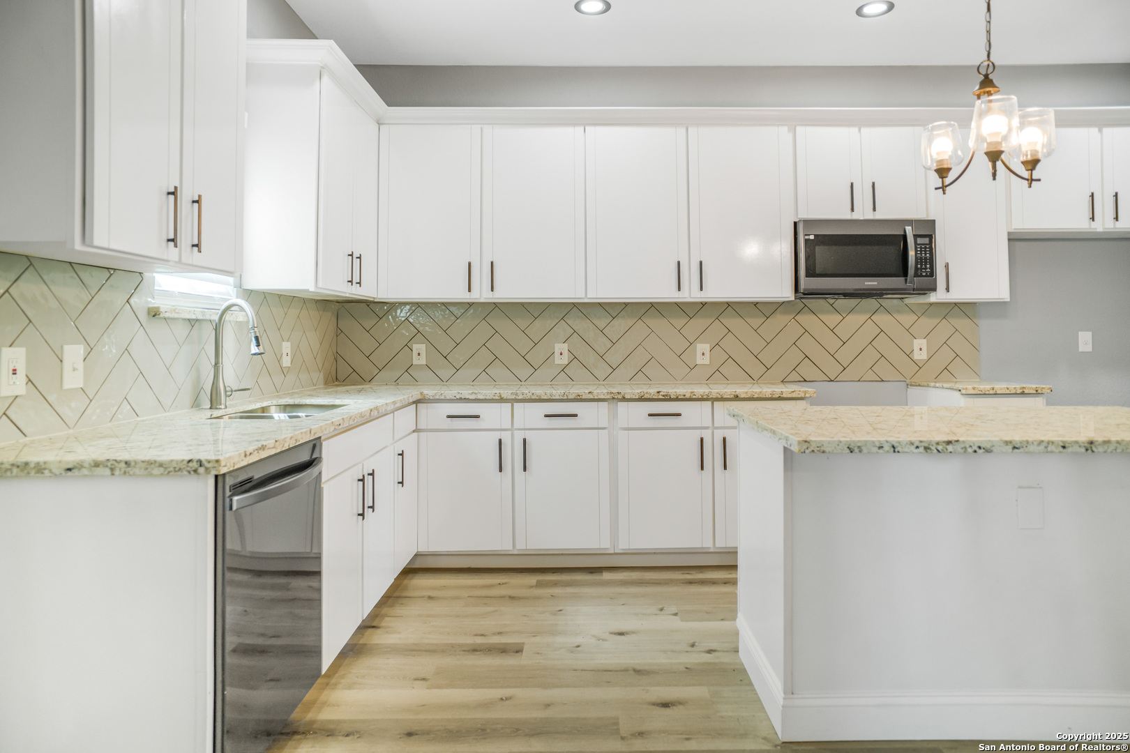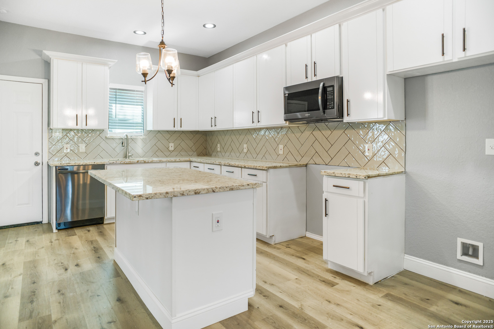 Experience modern living in this beautifully updated home featuring an open floor plan that creates a bright, spacious, and inviting atmosphere. Enjoy laminate flooring throughout, a fully remodeled kitchen with updated cabinets, granite countertops, and recently installed appliances. This move-in ready home offers a perfect blend of comfort and style with thoughtful upgrades throughout. Ideally located near downtown, the military base, and Frost Bank Center, it's a fantastic choice for military personnel and commuters alike. Cozy, convenient, and contemporary-schedule your showing today!