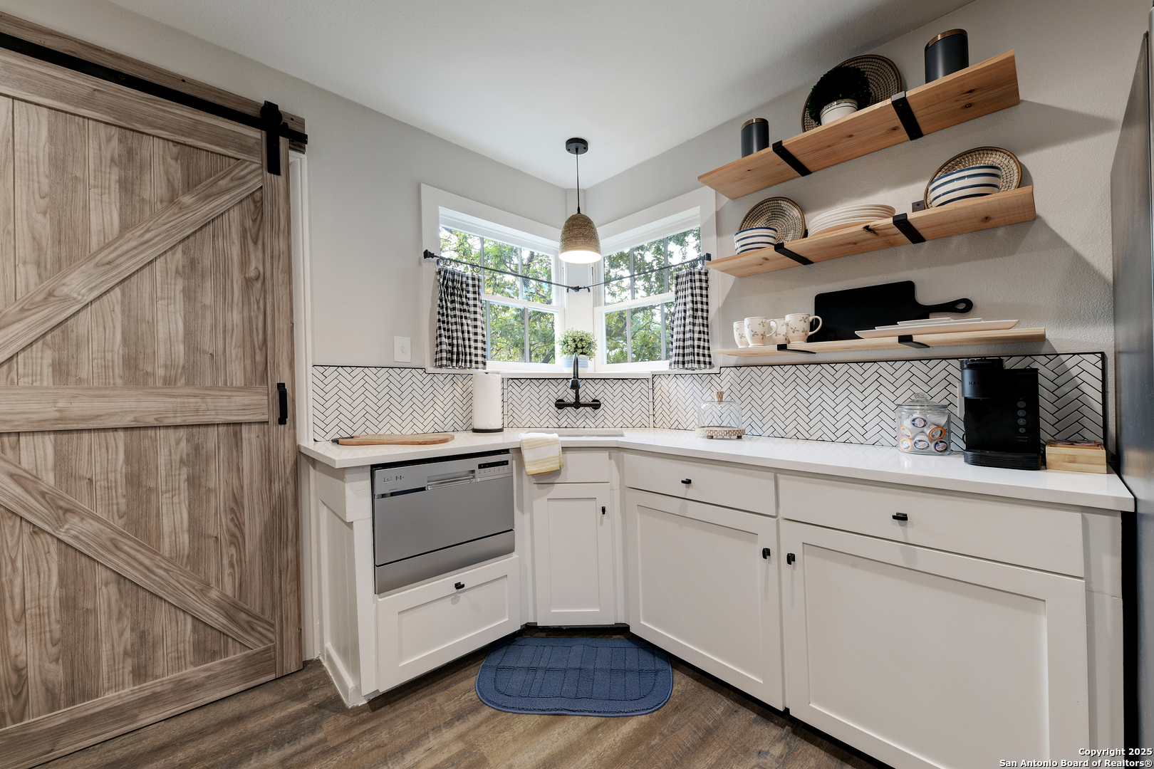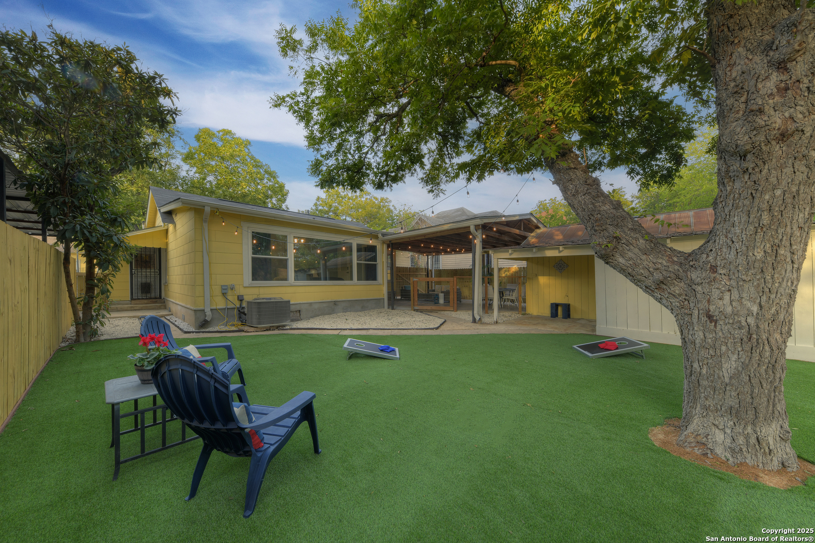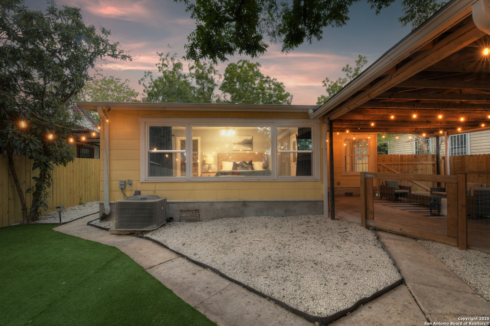 Welcome to this beautifully renovated 3-bedroom, 1-bath gem nestled in the heart of the city, 2 miles from the downtown/Riverwalk, I10/281 nearby. Formerly a thriving Airbnb, this home blends stylish updates with proven investment potential or the perfect inner city home. Step inside to discover a fresh, contemporary interior with designer finishes throughout-perfect for homeowners and short-term rental hosts alike. Fully redone kitchen and bath with modern fixtures, fresh interior paint, no carpet, beautiful hardwoods throughout, trendy tile in bathroom and vinyl in kitchen, fully gated property, backyard is a showstopper with 600 SQFT of upgraded artificial turf under a shade tree. 1car garage and storage building attached. cover porch makes perfect outdoor living space or carport for extra parking. Tankless hot water heater and updated whole house wiring and plumbing in kitchen and bathrooms. Perfect ray of sunshine in SA! Lone Star area which is on the way to revitalization to be the next hot spot in SA!
