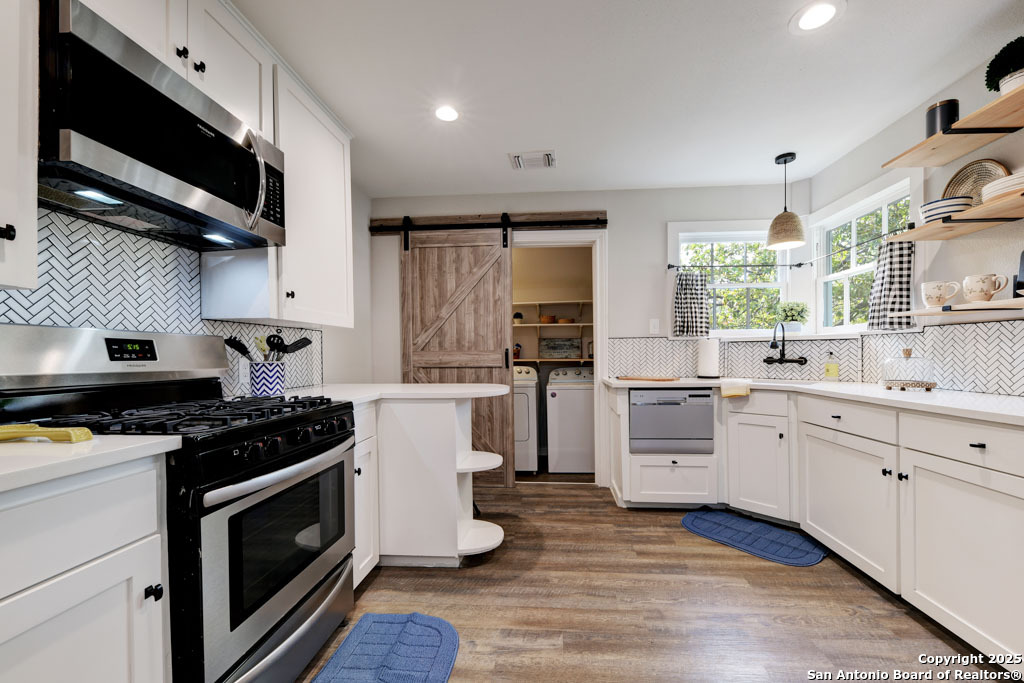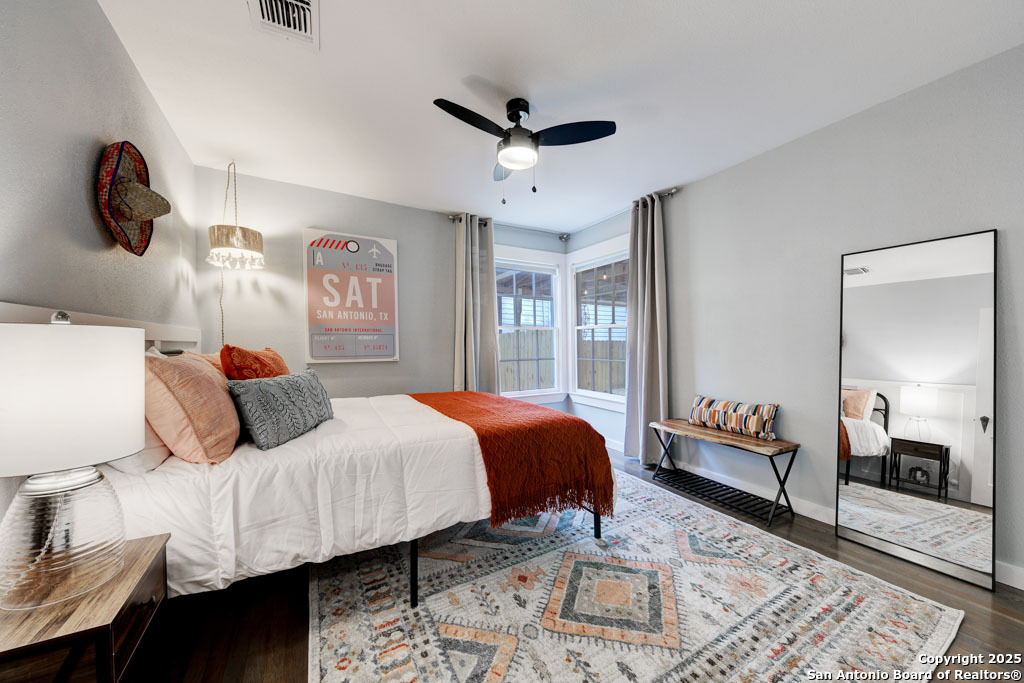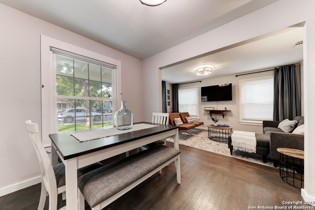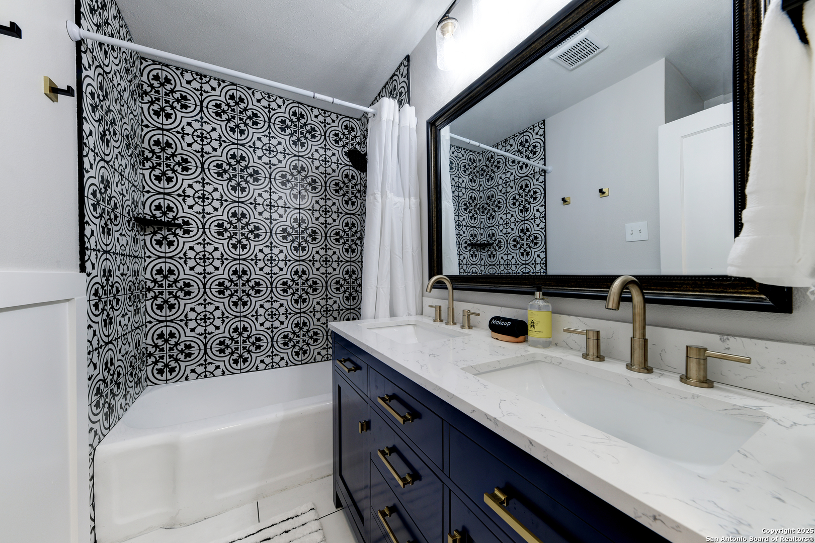 Welcome to this beautifully renovated 3-bedroom, 1-bath gem nestled in the heart of the city, 2 miles from the downtown/Riverwalk, I10/281 nearby. Formerly a thriving Airbnb, this home blends stylish updates with proven investment potential or the perfect inner city home. Step inside to discover a fresh, contemporary interior with designer finishes throughout-perfect for homeowners and short-term rental hosts alike. Fully redone kitchen and bath with modern fixtures, fresh interior paint, no carpet, beautiful hardwoods throughout, trendy tile in bathroom and vinyl in kitchen, fully gated property, backyard is a showstopper with 600 SQFT of upgraded artificial turf under a shade tree. 1car garage and storage building attached. cover porch makes perfect outdoor living space or carport for extra parking. Tankless hot water heater and updated whole house wiring and plumbing in kitchen and bathrooms. Perfect ray of sunshine in SA! Lone Star area which is on the way to revitalization to be the next hot spot in SA!