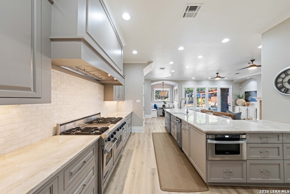 Positioned within one of San Antonio's most prestigious residential enclaves and zoned to coveted Alamo Heights ISD, this legacy estate has been thoughtfully reimagined for the most discerning buyer. From the moment you arrive at your private gated entrance, you're welcomed by a sprawling half-acre homesite framed by mature, towering trees. Designed for both grand entertaining and intimate living, the home offers a primary bedroom on the first level, three expansive living areas,private gym and a heated smart pool that transforms the backyard into your own resort. With ample space to add a guest home, the estate offers flexibility for multigenerational living or future expansion. Located less than 10 minutes from Downtown San Antonio and within walking distance to the San Antonio Country Club, convenience is effortless with premier shopping, dining, parks, and grocery options just moments away. This is more than a home. It's a generational estate one meant to be lived in, celebrated, and passed down for decades to come.