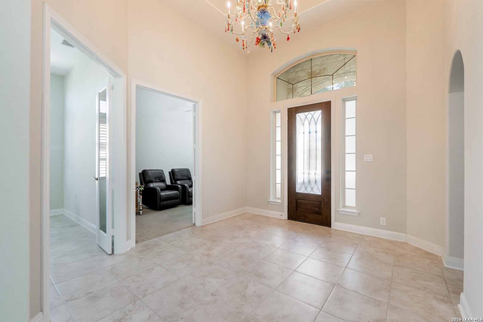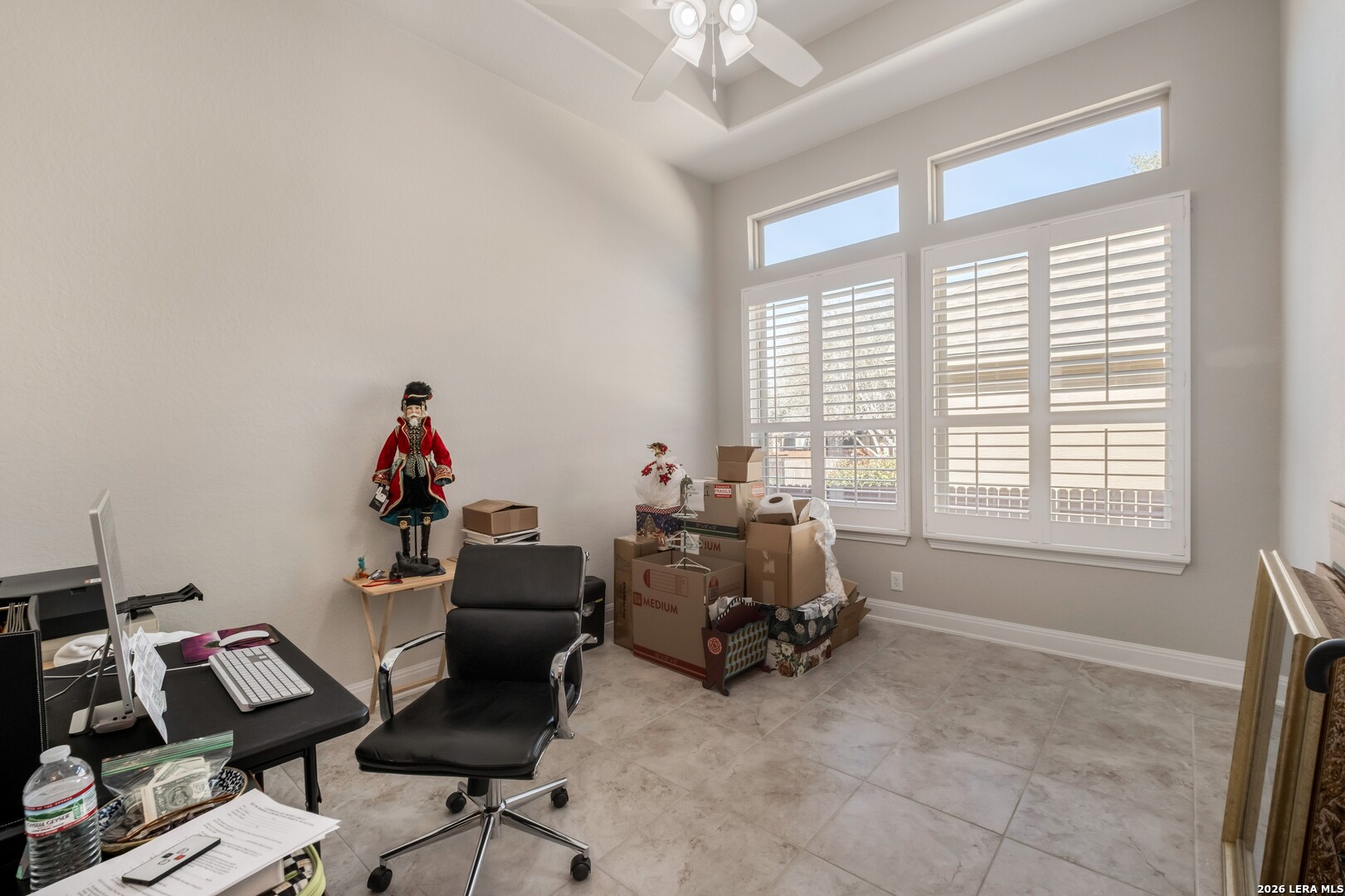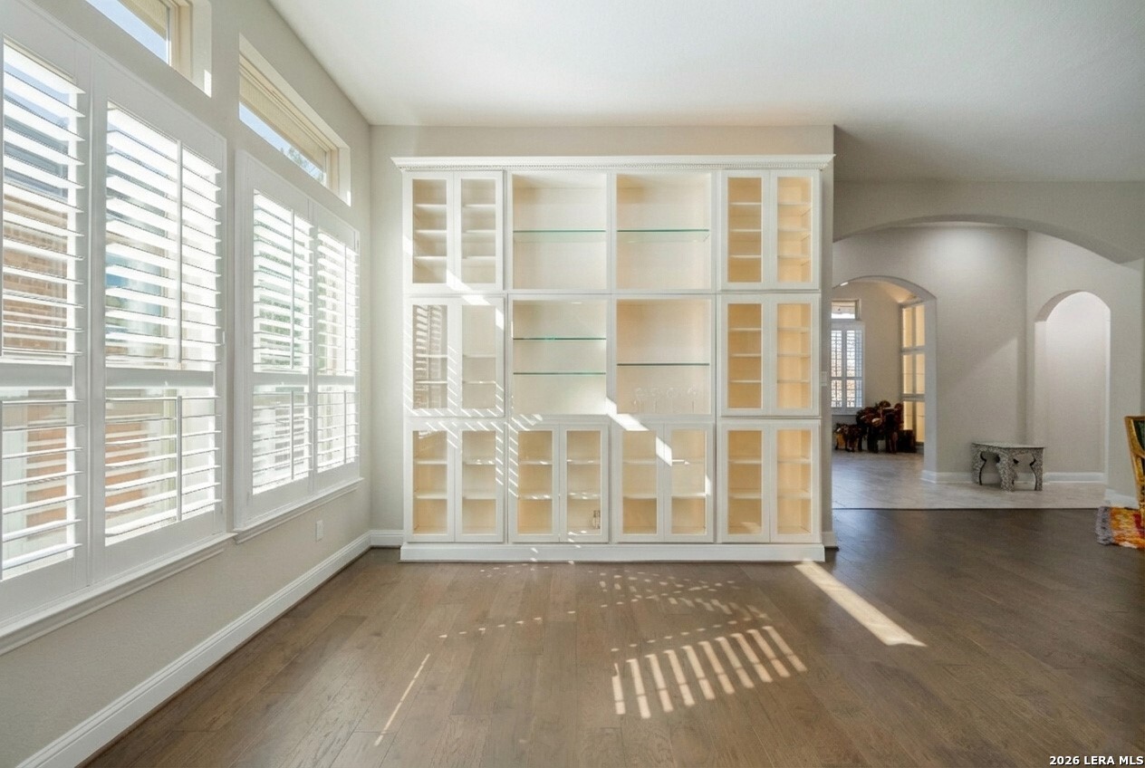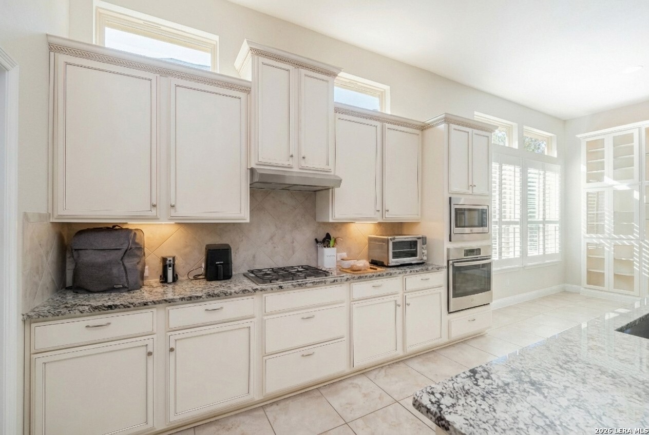 Immaculately maintained and thoughtfully designed, this 3-bedroom, 3.5-bath home is located in the desirable Enclave at Westpointe Village and offers a functional open-concept layout with high ceilings throughout and quality finishes at every turn. Just off the foyer, you'll find a dedicated media room and a private office highlighted by an elegant tray ceiling. The spacious living area features a cozy fireplace and flows seamlessly into the kitchen and dining, creating an ideal setting for both everyday living and entertaining. The kitchen is a true centerpiece, complete with granite countertops, a large island with breakfast bar seating, ample cabinetry, and a walk-in pantry. The primary suite features high ceilings and a well-appointed ensuite bath with separate vanities, a garden tub, a walk-in shower, and a spacious walk-in closet. All bedrooms include their own ensuite bathrooms, providing comfort and privacy for everyone. A sun room opens directly to the backyard, extending your living space outdoors. The backyard is enclosed with a combination of wrought iron and wooden fencing, offering both style and functionality. Additional highlights include archway interior details and a 2-car garage. This home combines immaculate condition, flexible spaces, and timeless features in a layout designed to suit a variety of lifestyles, just minutes from H-E-B, major stores, and a wide selection of restaurants.