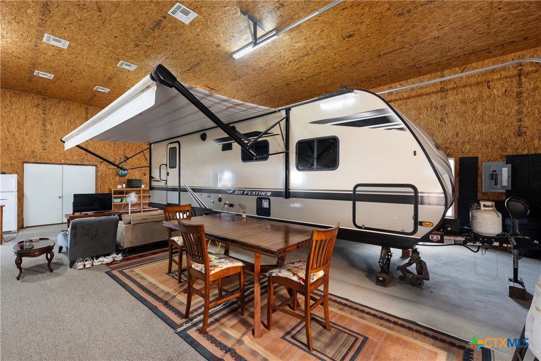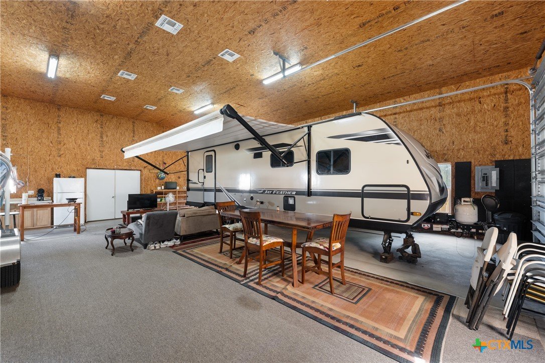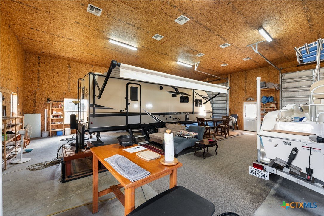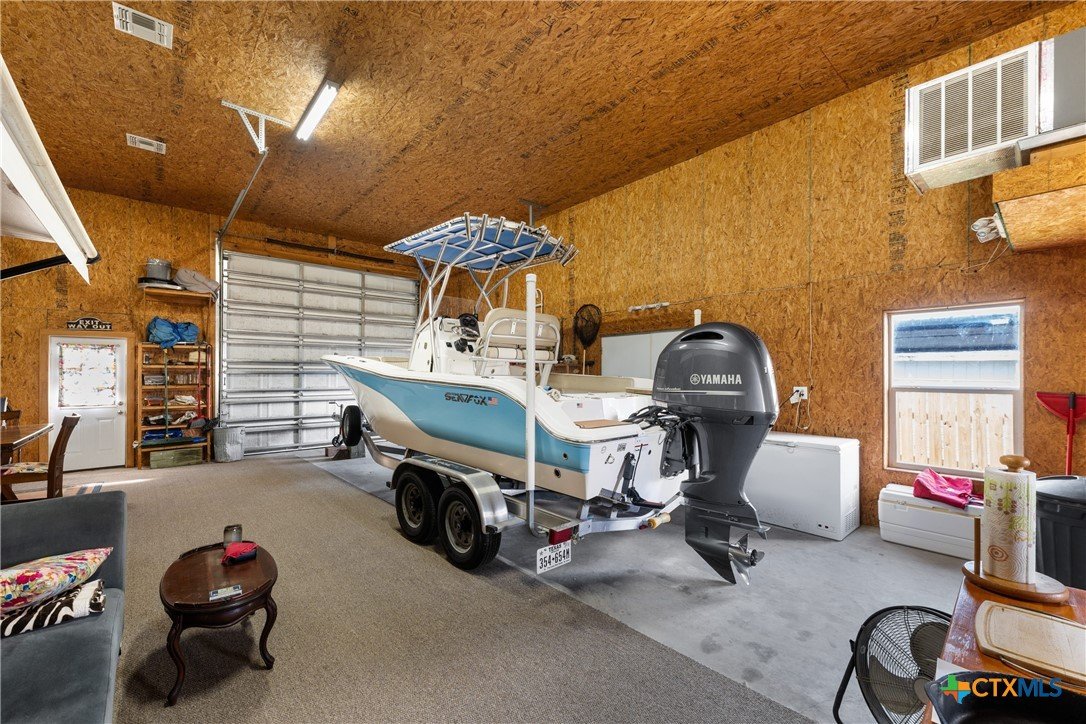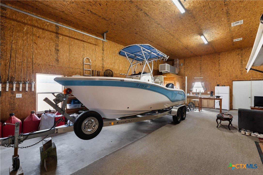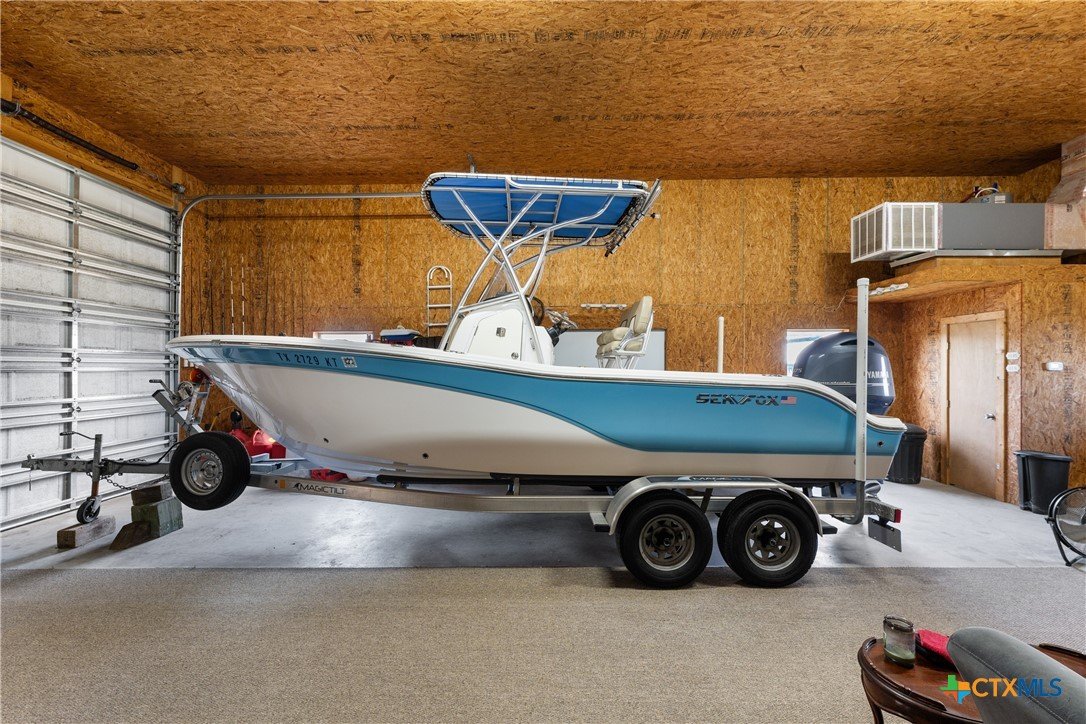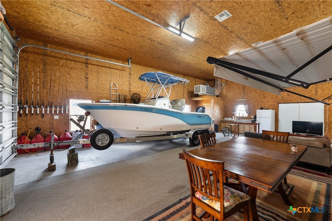 What An Opportunity---This 40'X40' barndominium includes a 2018 Sea Fox (Boat of Your Dreams) and a 2021 Jayco travel trailer. The boat has a 175 HP Yamaha four stroke (2018) with only about 200 hours on it. The barndominium was built in 2017; spray foam insulation (walls and ceiling); two 10'X14' overhead doors; three double-door sets on north, south and east sides; 30 gallon water heater; full electric service including a 30 amp plug for RV and a 50 amp plug for welder, etc; four ton HVAC central air and heat; bathroom with sink and toilet; kitchen sink with cabinets; refrigerator; bait freezer, fishing tackle; compressor; TV; much more!