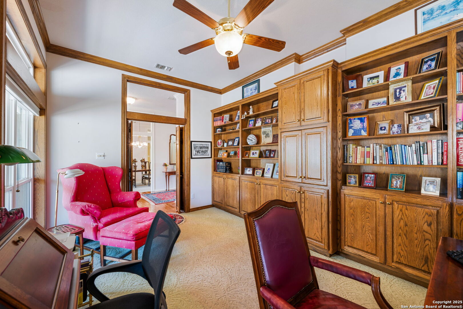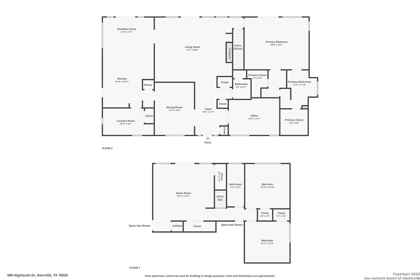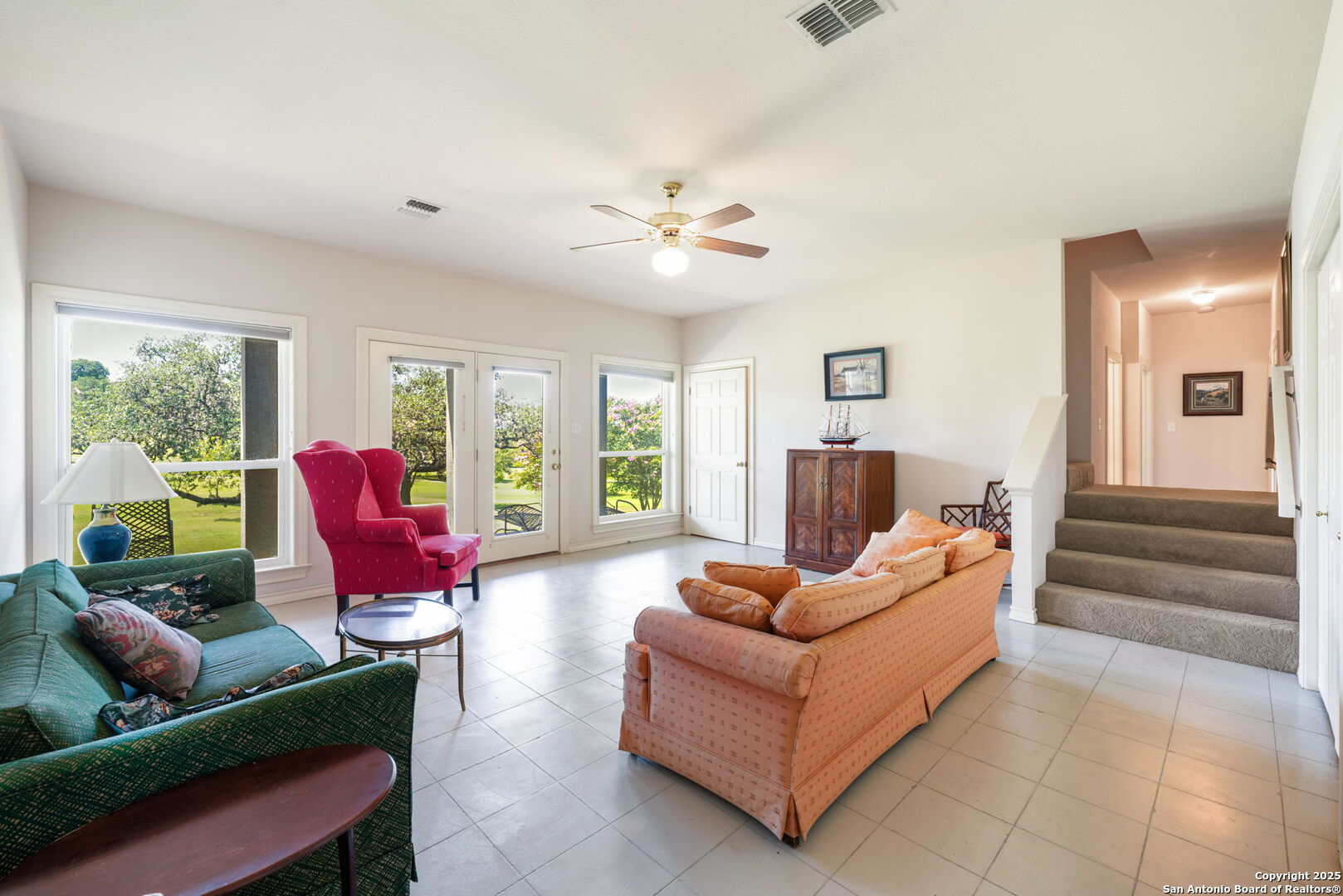 Welcome to 408 Highlands Dr, a beautifully crafted 3,841 sq. ft. home in the heart of the prestigious Riverhill community. Perfectly situated to overlook the 6th green of the championship golf course, this home offers the best in Hill Country living with unmatched golf course views from your expansive wraparound porch. The main level features a bright and open living room with a fireplace and a wall of windows to showcase the view, a formal dining room, a dedicated office with custom built-ins, and a kitchen with granite counters, a breakfast area, and double ovens. The primary suite offers dual walk-in closets and a large ensuite bath, while an additional full bath provides convenience for guests. Upstairs offers two generously sized bedrooms, a full bath, and a spacious game room-perfect for guests, family, or multi-generational living. Additional highlights include: Two-car garage plus golf cart garage Roof replaced ~7 years ago Two HVAC units (replaced 2023) Water heater ~5 years old Located just a short walk or golf cart ride to Riverhill's championship golf course Enjoy access to Riverhill Country Club memberships offering golf, tennis, pickleball, pool, dining at The Mansion, and more. Conveniently close to shopping, medical facilities, schools, restaurants, and cultural activities. Schedule your tour today!