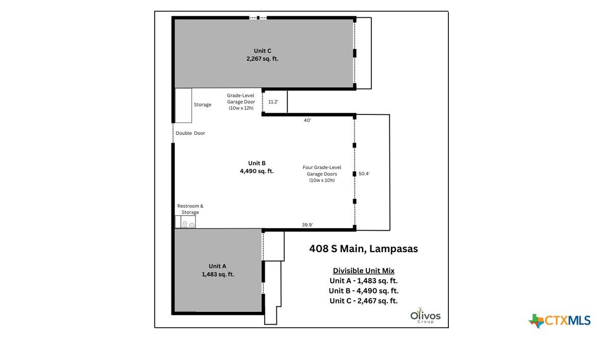 Unit B is 4,490 sq. ft. with a main entrance and 4 drive in bay with a roll up door. NNN lease with CAM ~$2/ft, tenant pays all utilities. Located in downtown Lampasas on Main St and just across the street from Lampasas Police Department. The building features a variety of updates and can be finished out for the tenant's desires. Property is perfect for a variety of businesses, including, but not limited to: automotive, roofing, HVAC, plumbing, or retail. Just 2 blocks from the historic downtown square and steps from the intersections of Highway 183, 281, and 190. Landlord to subdivide and install bathroom prior to occupancy; 45 day build out notice required.
