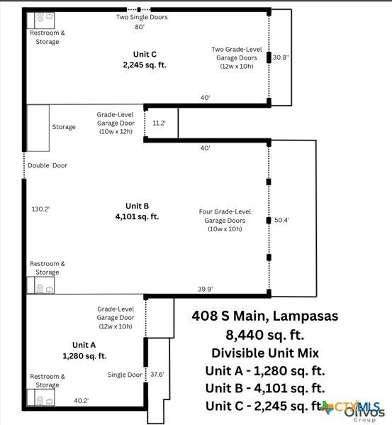 8,440 square feet with 8 bays flex space. Located in downtown Lampasas on Main St and just across the street from Lampasas Police Department. The building features a variety of updates and can be finished out for the tenant's desires. Property is perfect for a variety of businesses, including, but not limited to: automotive, roofing, HVAC, plumbing, or retail (skating rink, etc.). Just 2 blocks from the historic downtown square and steps from the intersections of Highway 183, 281, and 190.