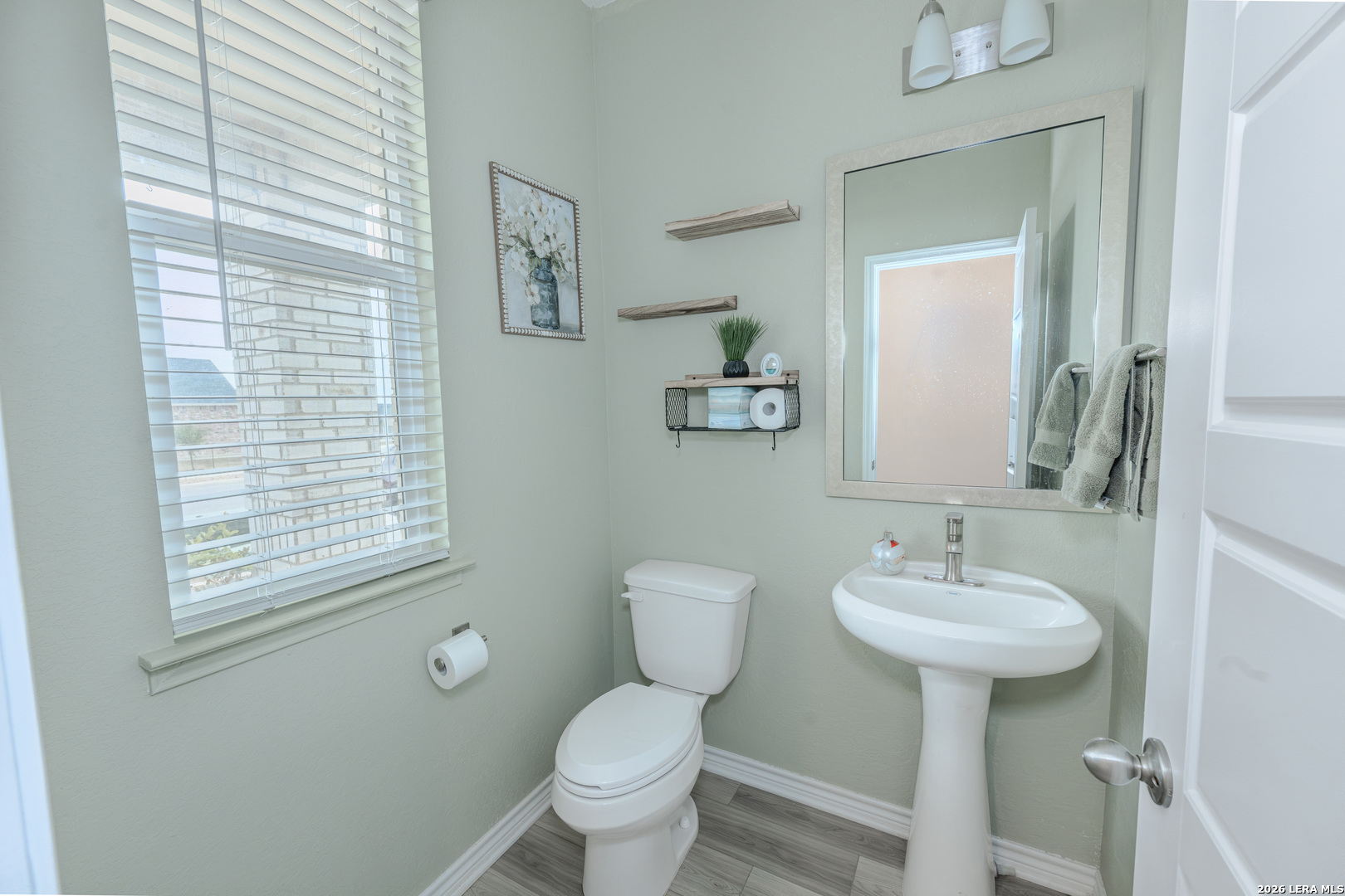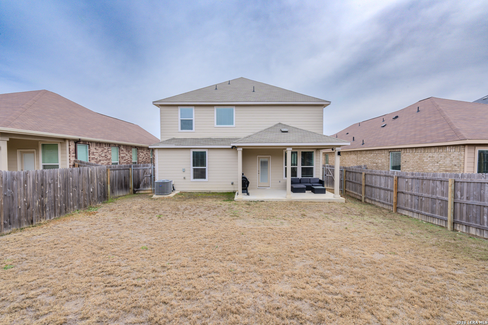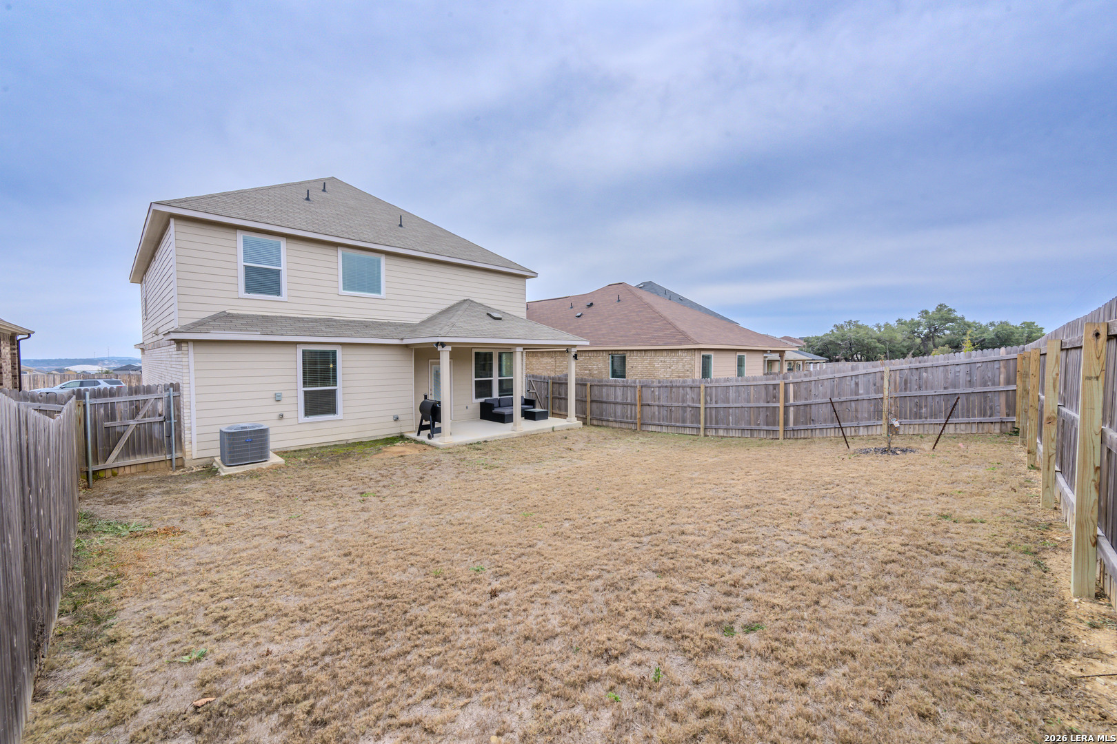 Wonderful family home is the prestigious Shoreline park Neighborhood in Boerne. This spectacular home backs up to the Greenbelt giving unique privacy for the area. This friendly community has a park for the kiddos and access to the lake! This three bedroom two bath home has a fantastic additional living space upstairs for a game room playroom or Den. High ceilings, open floorplan covered patio, powder room downstairs, and large laundry room make this the perfect Family home. Don't miss your chance to be the owner of this lovely property!,