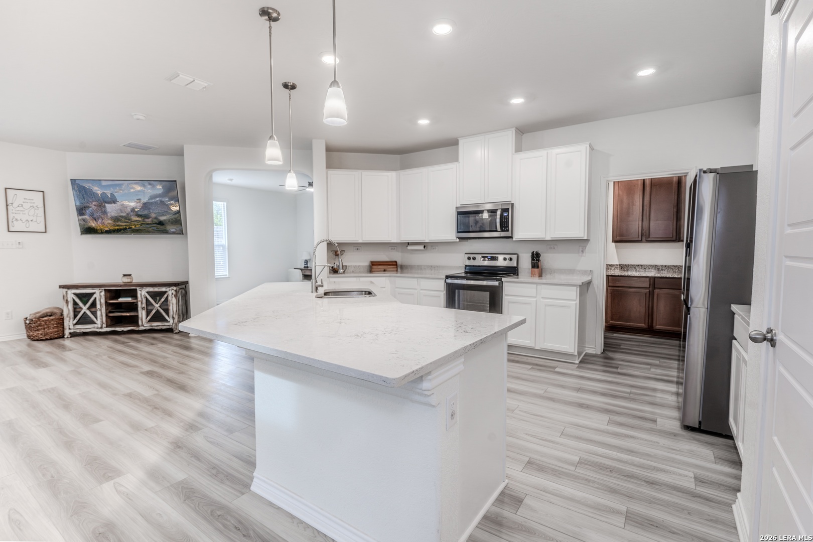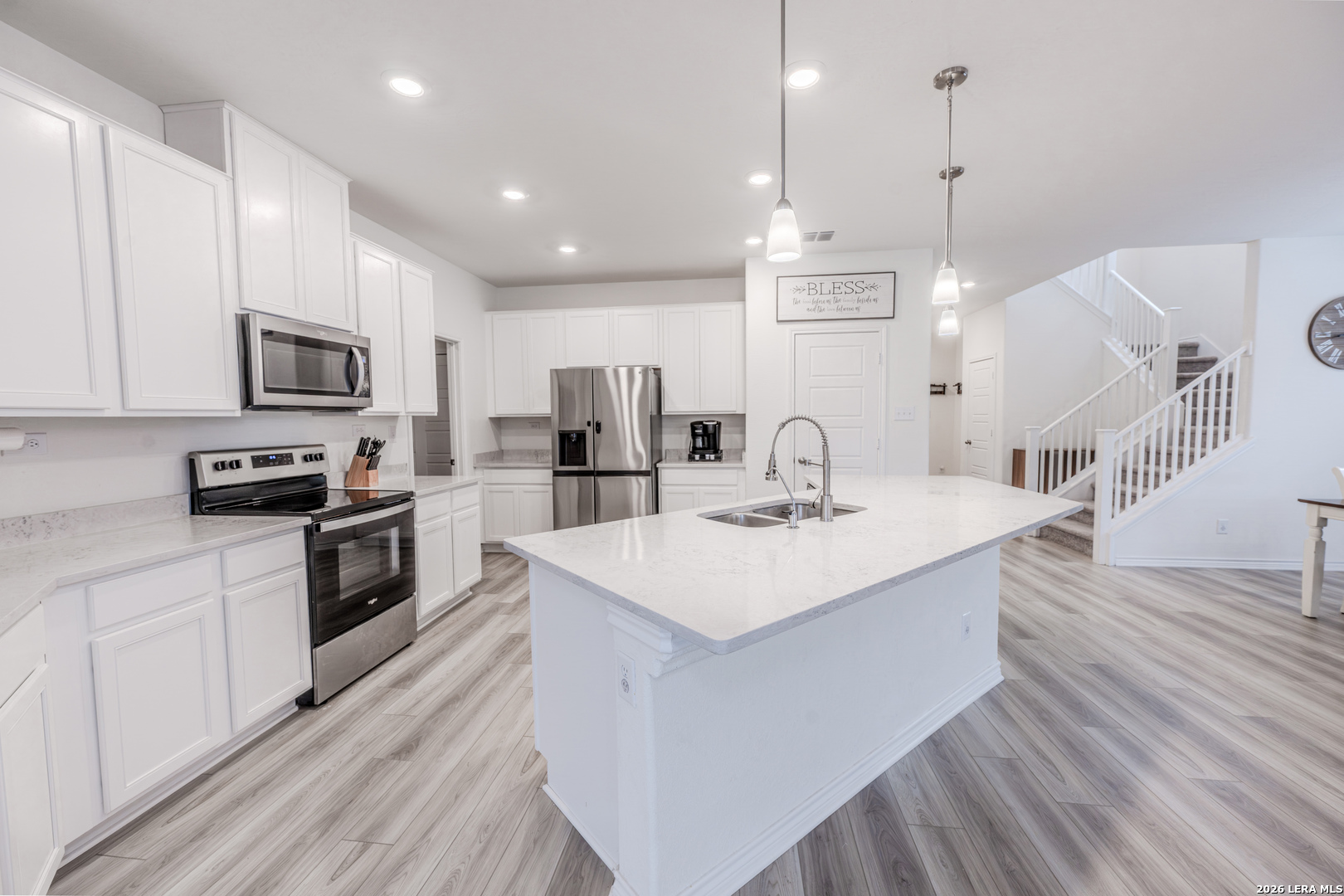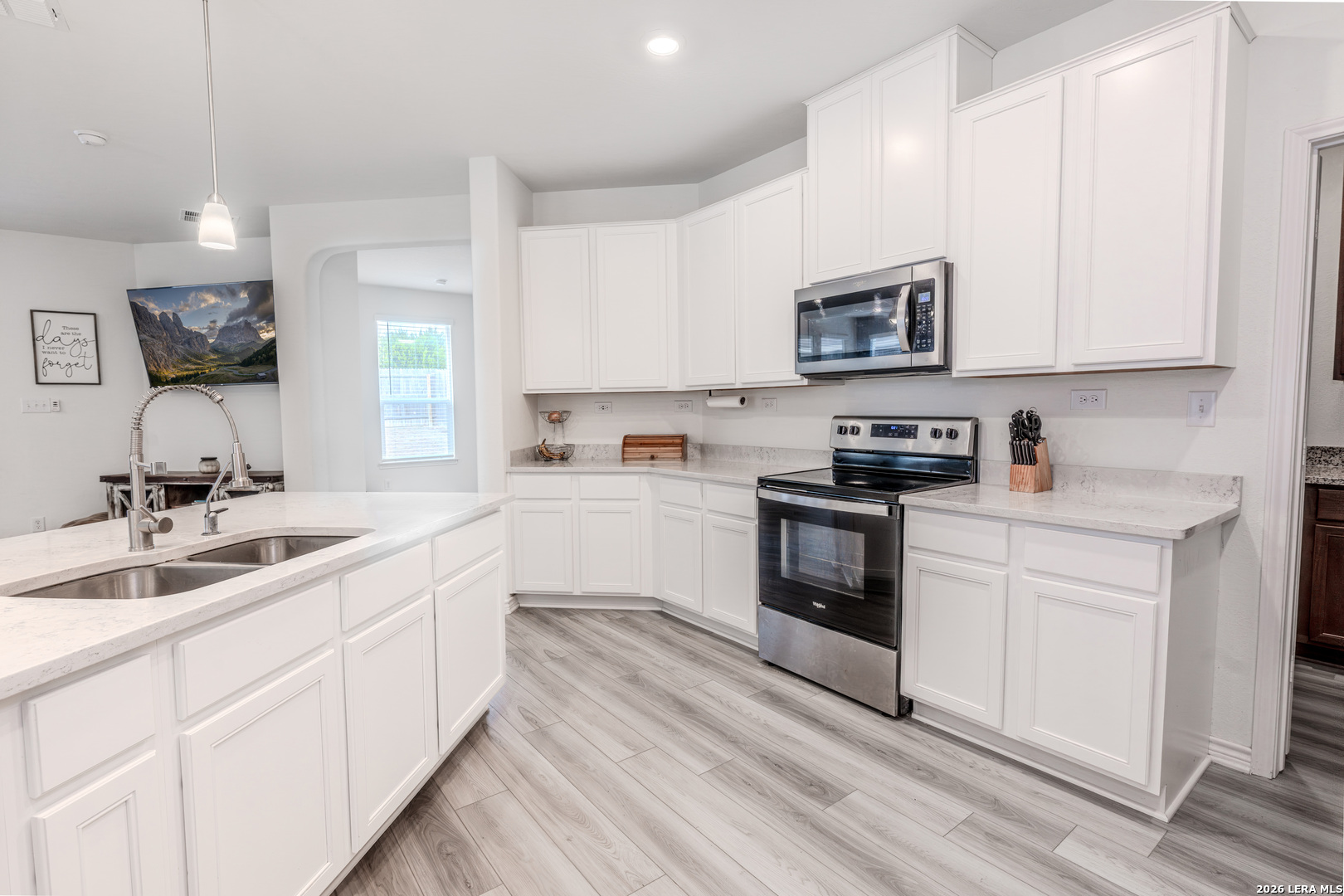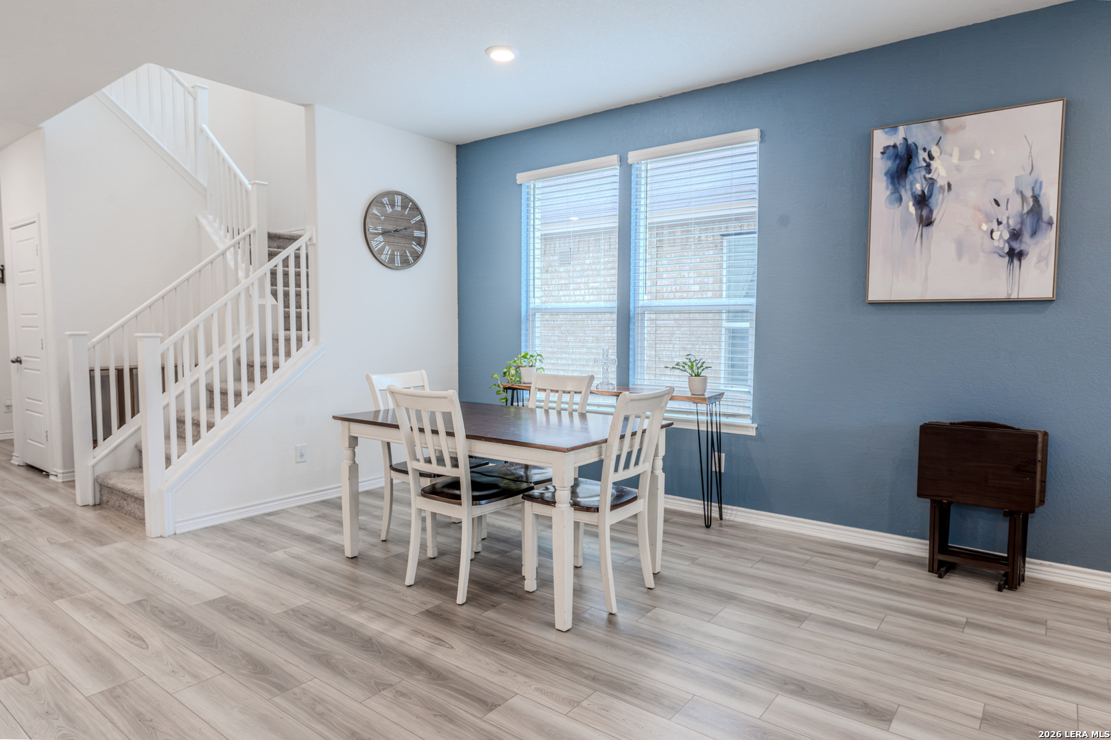 Wonderful family home is the prestigious Shoreline park Neighborhood in Boerne. This spectacular home backs up to the Greenbelt giving unique privacy for the area. This friendly community has a park for the kiddos and access to the lake! This three bedroom two bath home has a fantastic additional living space upstairs for a game room playroom or Den. High ceilings, open floorplan covered patio, powder room downstairs, and large laundry room make this the perfect Family home. Don't miss your chance to be the owner of this lovely property!,