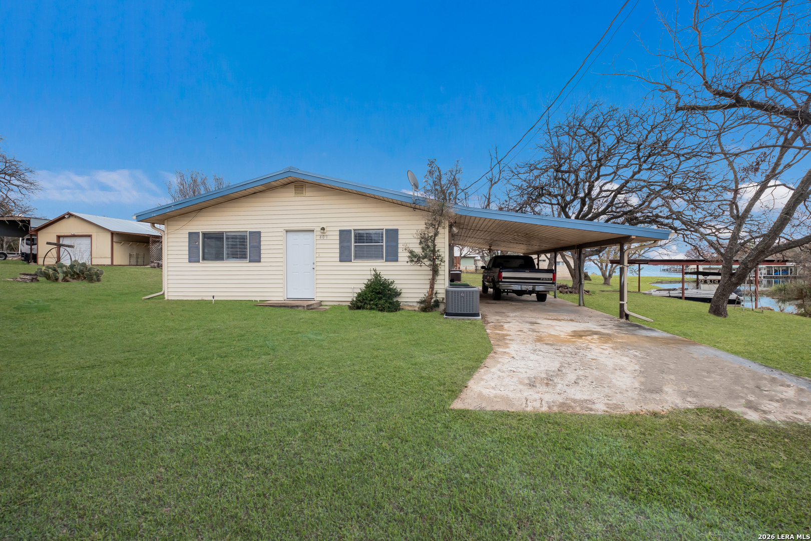 Looking for a waterfront property on Lake LJB that includes 4 lots and endless possibilities? This great getaway has a 2/1 main house and a separate 1/1 guest cottage with its own kitchenette and living area. The cottage is just waiting for the new owner to finish the remodel and make it their own. Don't miss the expansive yard that offers room to update and expand living space or create your own recreation area. Included is a boat lift, garage/shop, RV carport area, and plenty of room for a garden. Enjoy the great lakefront access and view of the lake from the expansive outdoor patio. The city park is across the cove and has a boat ramp. Come make your dreams come true of owning lakefront property!