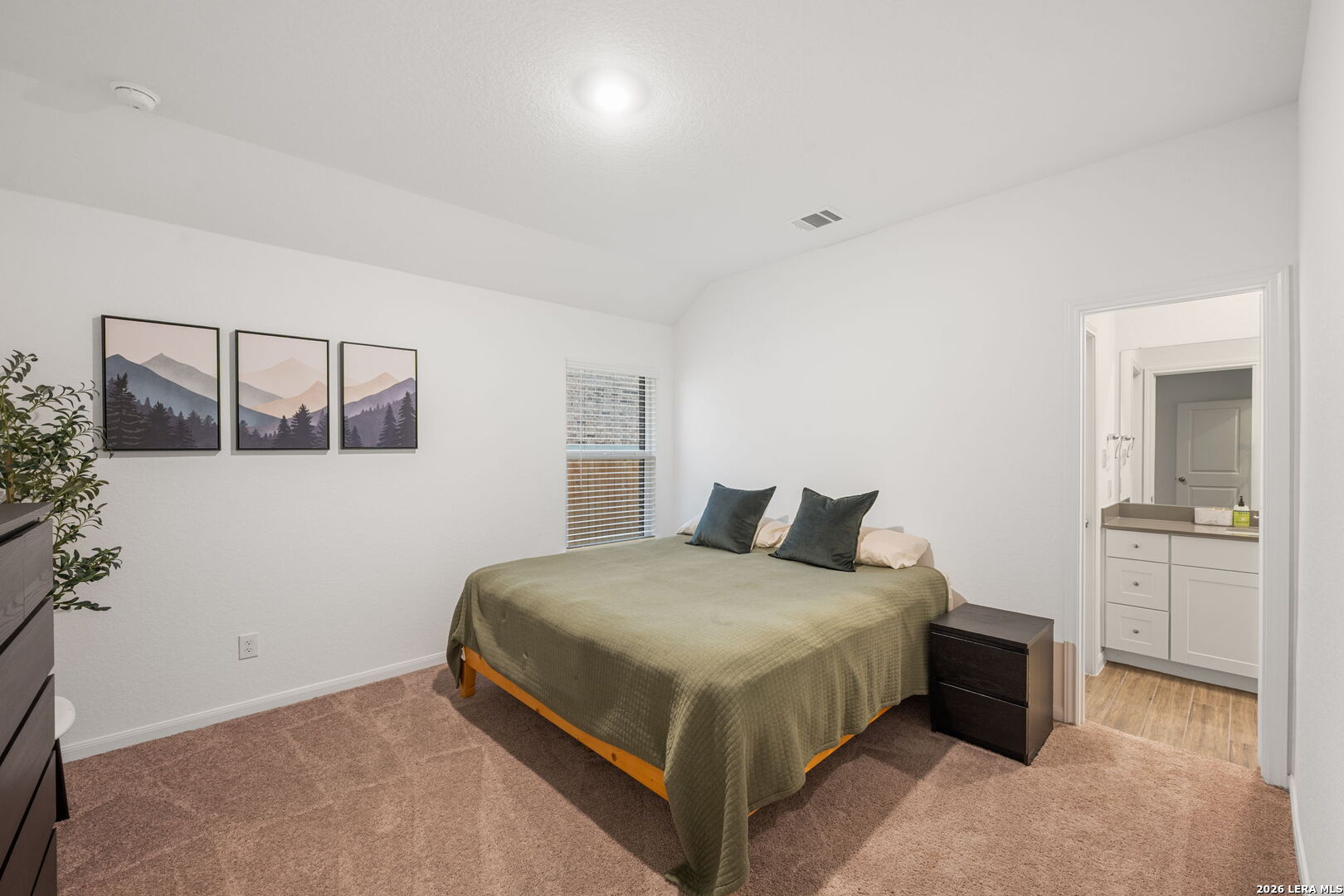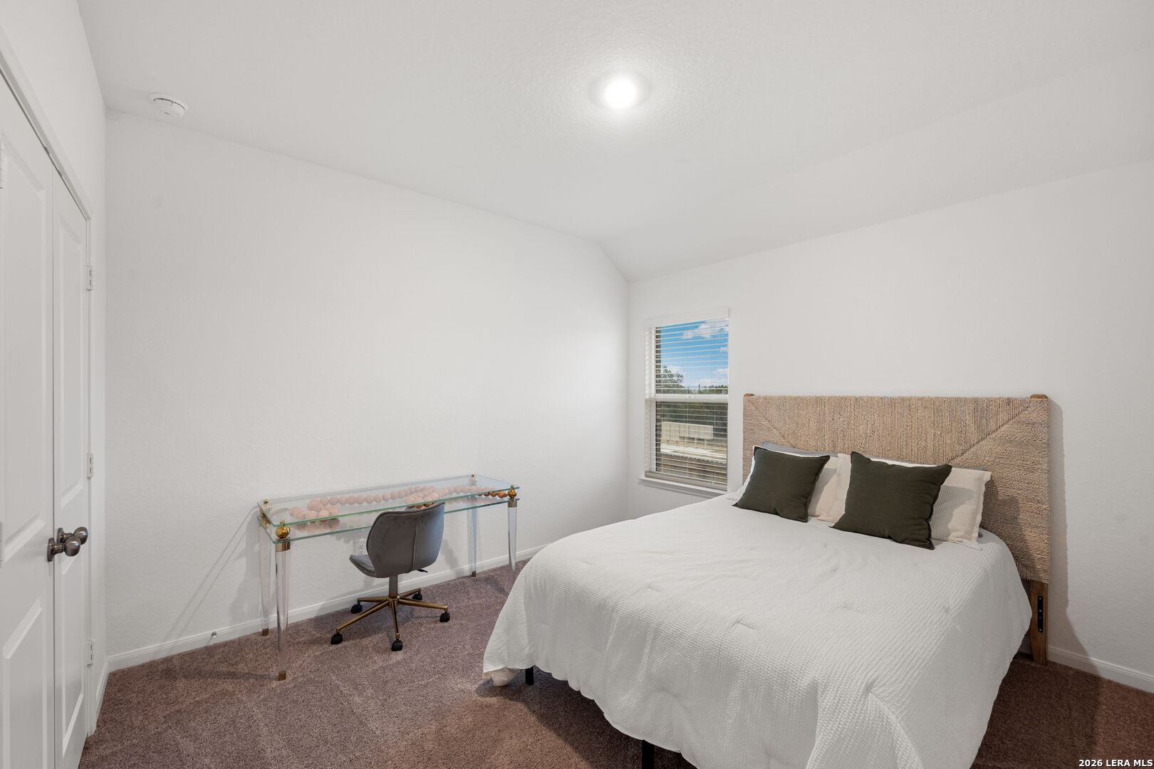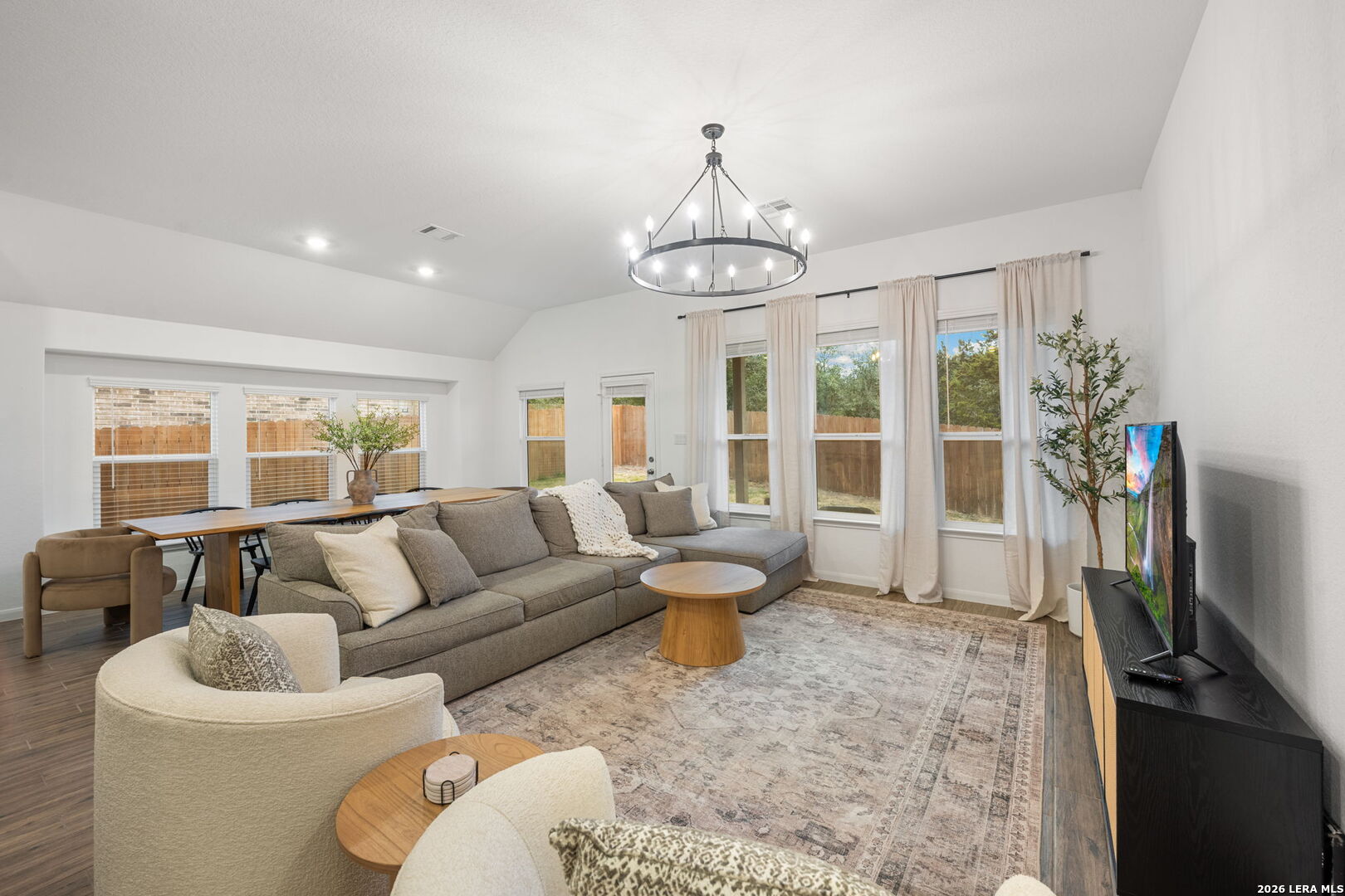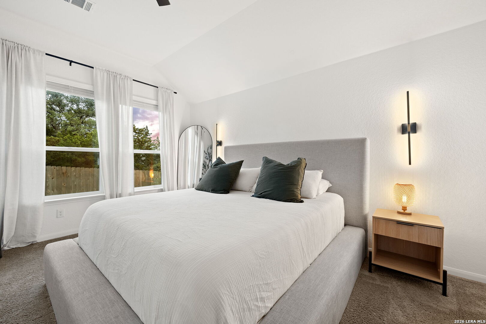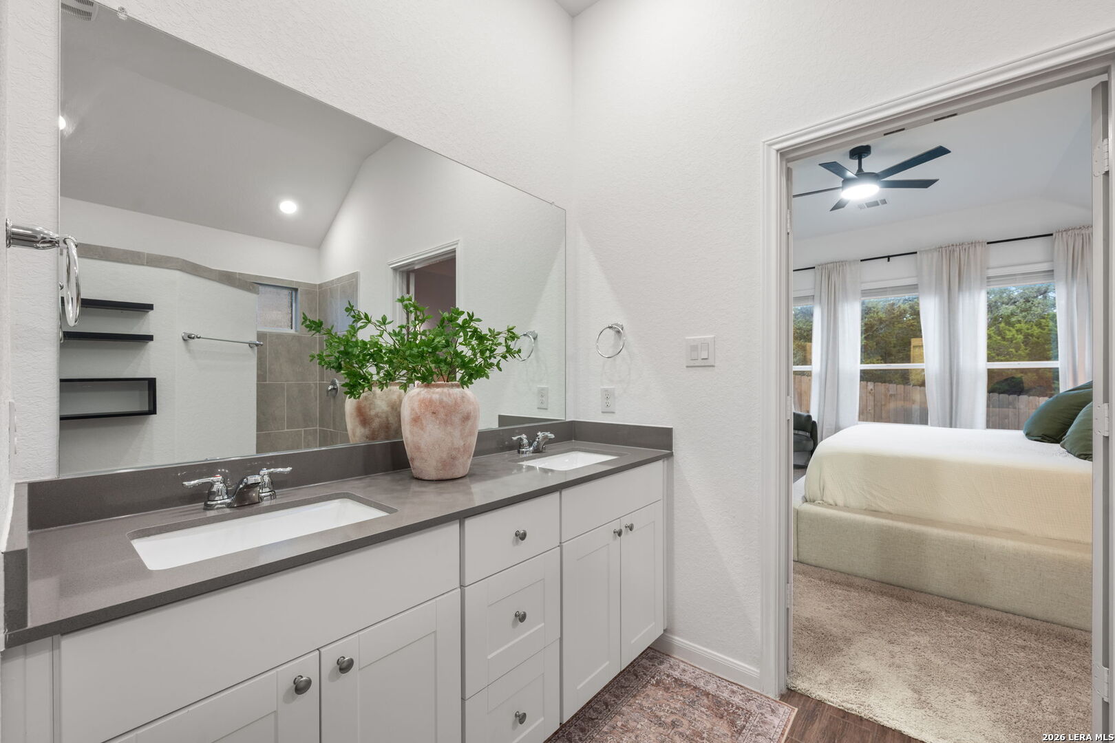 Welcome to this stunning, nearly new home located in the highly sought-after Johnson Ranch community in Bulverde. Built in 2024, this beautifully designed single-story residence offers 4 bedrooms, 3 full bathrooms, and approximately 2,377 square feet of thoughtfully designed living space with a flexible and functional layout. Step inside to discover a bright, open-concept floor plan featuring a spacious kitchen, dining area, and family room that flow seamlessly together, making it perfect for both everyday living and entertaining. The modern kitchen is the heart of the home, complete with ample counter space, stylish finishes, and abundant storage. The primary suite is tucked away at the back of the home and offers a spa-like ensuite bath along with a generous walk-in closet. A versatile bonus space provides the perfect option for a home office, playroom, or additional living area. The covered patio creates an inviting outdoor retreat ideal for relaxing evenings, weekend gatherings, or enjoying the beautiful Texas Hill Country lifestyle. Situated on a desirable corner lot, this home offers a larger yard and added privacy with green space behind and to the side of the property. Enjoy peaceful views of mature trees and natural surroundings from your back porch, where you can truly take in the beauty of the Hill Country. Additional upgrades include enhanced lighting fixtures and a water softener system. Located in a gated section of the community, residents enjoy access to top-tier neighborhood amenities including parks, pools, walking trails, and community events. Located within the award-winning Comal ISD and just minutes from Spring Branch, Bulverde, and convenient shopping, dining, and entertainment, this home offers the perfect balance of peaceful living with easy access to San Antonio. This is a rare opportunity to own a nearly new home in one of the fastest-growing areas north of San Antonio. Schedule your showing today!