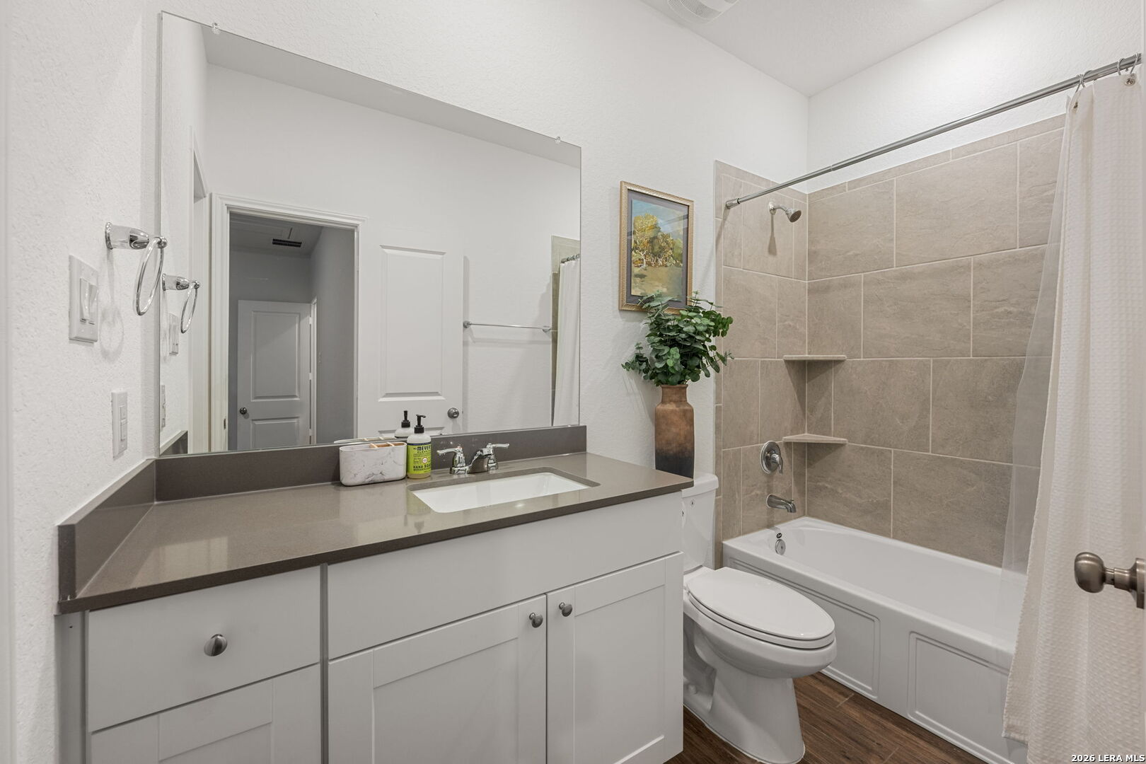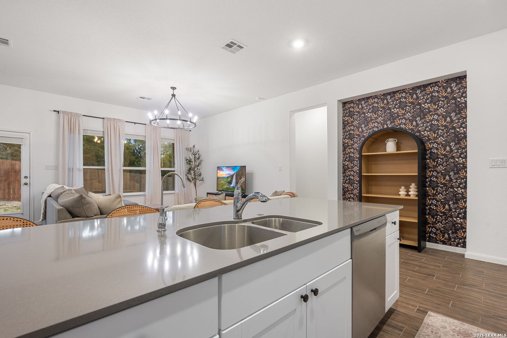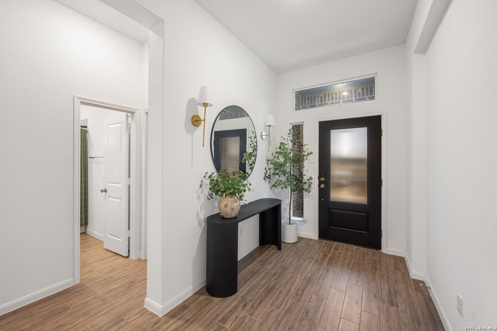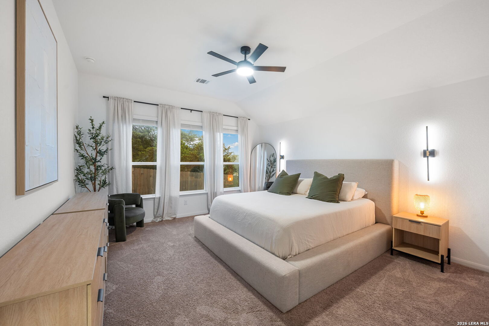 Welcome to this stunning, nearly new home located in the highly sought-after Johnson Ranch community in Bulverde. Built in 2024, this beautifully designed single-story residence offers 4 bedrooms, 3 full bathrooms, and approximately 2,377 square feet of thoughtfully designed living space with a flexible and functional layout. Step inside to discover a bright, open-concept floor plan featuring a spacious kitchen, dining area, and family room that flow seamlessly together, making it perfect for both everyday living and entertaining. The modern kitchen is the heart of the home, complete with ample counter space, stylish finishes, and abundant storage. The primary suite is tucked away at the back of the home and offers a spa-like ensuite bath along with a generous walk-in closet. A versatile bonus space provides the perfect option for a home office, playroom, or additional living area. The covered patio creates an inviting outdoor retreat ideal for relaxing evenings, weekend gatherings, or enjoying the beautiful Texas Hill Country lifestyle. Situated on a desirable corner lot, this home offers a larger yard and added privacy with green space behind and to the side of the property. Enjoy peaceful views of mature trees and natural surroundings from your back porch, where you can truly take in the beauty of the Hill Country. Additional upgrades include enhanced lighting fixtures and a water softener system. Located in a gated section of the community, residents enjoy access to top-tier neighborhood amenities including parks, pools, walking trails, and community events. Located within the award-winning Comal ISD and just minutes from Spring Branch, Bulverde, and convenient shopping, dining, and entertainment, this home offers the perfect balance of peaceful living with easy access to San Antonio. This is a rare opportunity to own a nearly new home in one of the fastest-growing areas north of San Antonio. Schedule your showing today!