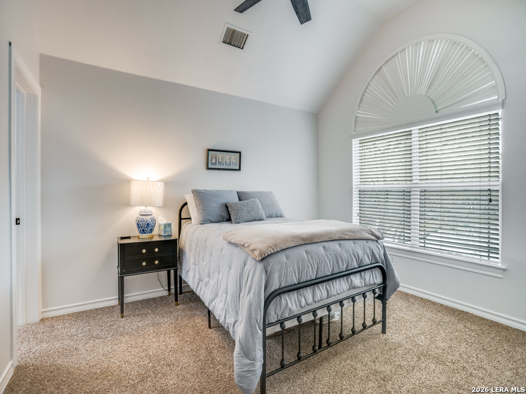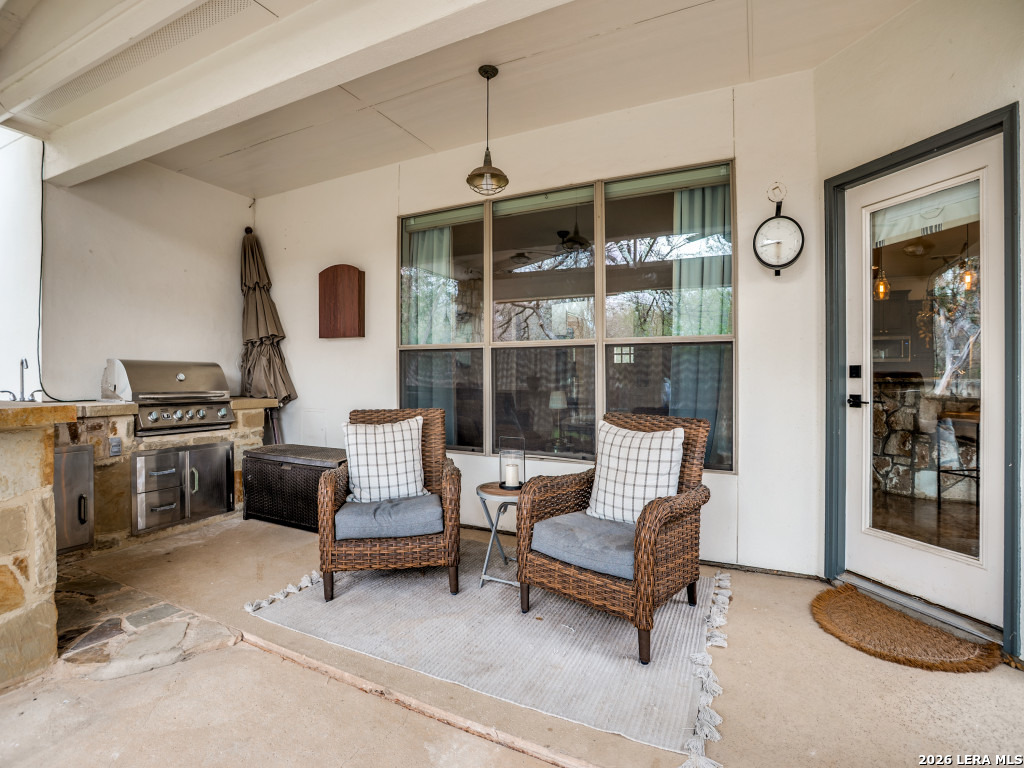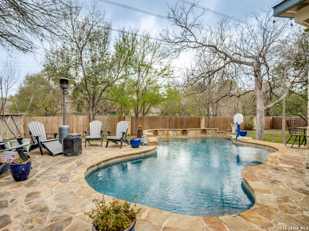 Space, privacy, and a backyard built for gathering-set inside the gated community of The Heights just inside Loop 1604 near Bitters and Huebner. This 4 bedroom, 3.5 bath home sits on a quarter-acre cul-de-sac lot and offers 3,076 square feet designed for everyday comfort and easy entertaining. The kitchen anchors the home with granite countertops, a center island with breakfast bar, stainless KitchenAid appliances, walk-in pantry, and distinctive travertine flooring. It opens naturally to the main living areas and flows toward the backyard-making it easy to cook, host, and stay connected. The downstairs primary suite offers privacy and space with a tray ceiling, garden tub, separate shower, double vanity, and walk-in closet. Upstairs you'll find three generously sized bedrooms-each with walk-in closets-plus a large game room with a picture window overlooking the pool, backyard, and greenbelt. Step outside and the lifestyle becomes clear. A vaulted covered patio and outdoor kitchen with gas grill and sink overlook the in-ground pool with fountains, Polaris sweep, outdoor shower and a recently replaced energy-efficient pump. It's the kind of backyard that turns weekends into stay-at-home retreats. **Recent updates add lasting value, including a roof replaced within the past three years, a Level 2 ChargePoint EV charger in the garage, and a new Rainbird sprinkler control panel installed in January. Gated privacy, a cul-de-sac setting, and convenient access to shopping, dining, and entertainment make this location as practical as it is comfortable. Homes with this lot size, pool setup, and layout inside the loop are a good find.
