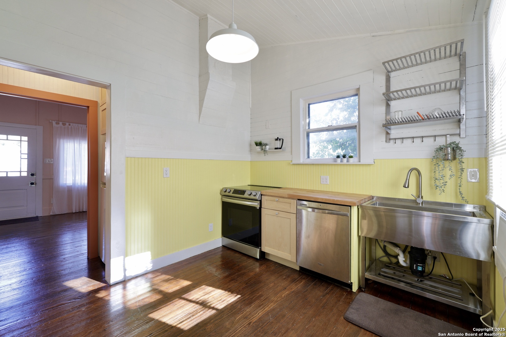 Square footage can be deceiving! Such is the case in this charming Lavaca/Southtown home located just blocks from beautiful Downtown San Antonio. Thanks to incredibly efficient finish and storage choices, this thoughtfully updated home feels much larger than its square footage suggests. Be sure to note the home's following attributes: * fabulous covered front porch spanning the entire front of the home (just needs a porch swing at each end!) * matching statement/vintage front doors * new standing seam/lifetime metal roof * new energy efficient mini split heating and cooling omits the need for space-sucking ducts and provides zone-specific heating and cooling, eliminating energy loss that occurs with traditional central AC systems, especially in smaller spaces * original hardwood floors, doors, and doorknobs throughout * 12' ceilings and plenty of windows allow for excellent light throughout the space * smart use of built-ins and nontraditional loft space provide efficient storage beyond what's standard in smaller homes * all appliances convey (stove/fridge/dishwasher/washer/dryer) * storage shed for laundry, gardening equipment, recreational items * fenced backyard provides nice space for garden/hangout time, and privacy/safety for people and pets Lovely neighbors abound in this downtown hood offering excellent access to great food, fabulous public art, King William Fair, Hemisfair, and downtown SA. Don't miss the opportunity to make this super sweet home and community yours. Thank you for your interest in this truly special home!