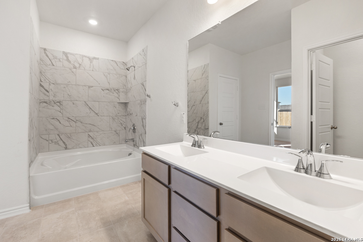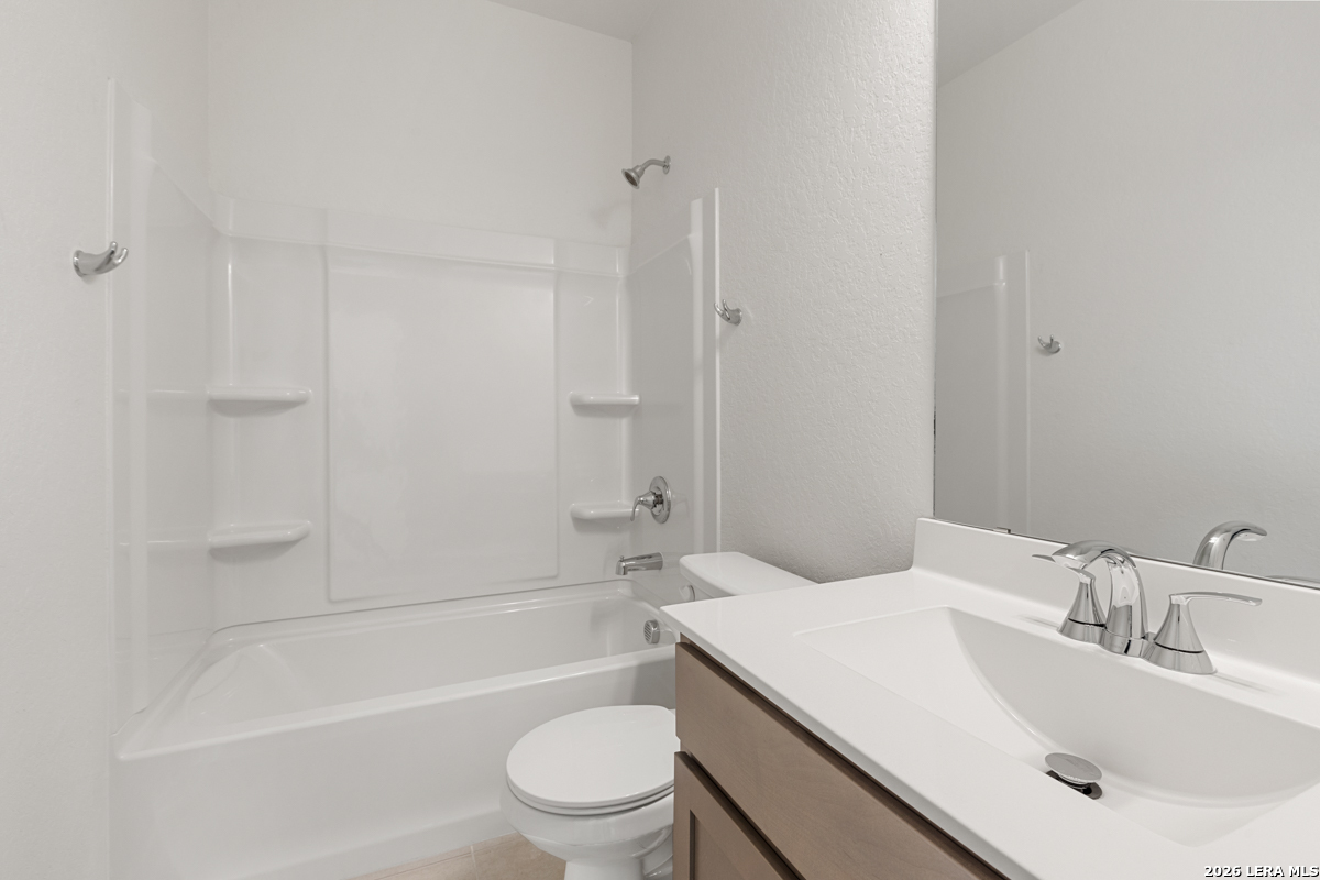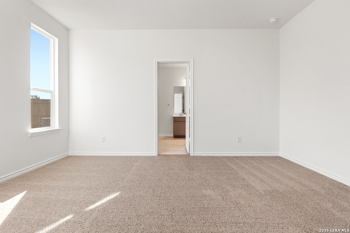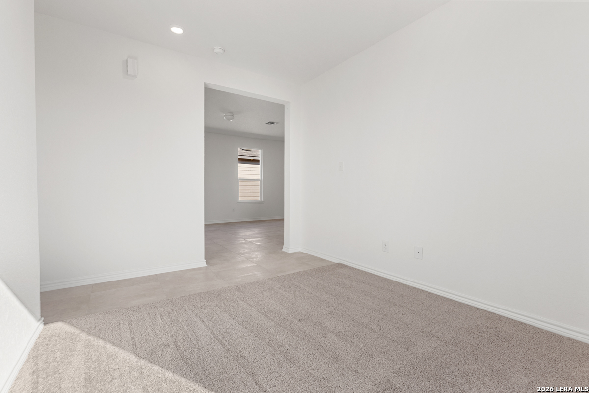 Experience style and comfort in this inviting home featuring 9-ft. first-floor ceilings for a spacious feel. The kitchen is designed to impress with Whirlpool stainless steel appliances, Woodmont Dakota Shaker panel 42-in. upper cabinets, granite countertops in Arctic Pearl, and an extended breakfast bar. The primary bath offers upgraded cabinets and a 42-in. garden tub/shower with a Daltile tile surround. Decorative touches include a Carrara-style entry door, Kwikset Polo knob hardware, and Rekindle ceramic tile flooring in the bathrooms, kitchen, and greatroom. Additional highlights include a wireless security system, fully sodded yard, and automatic sprinkler system.