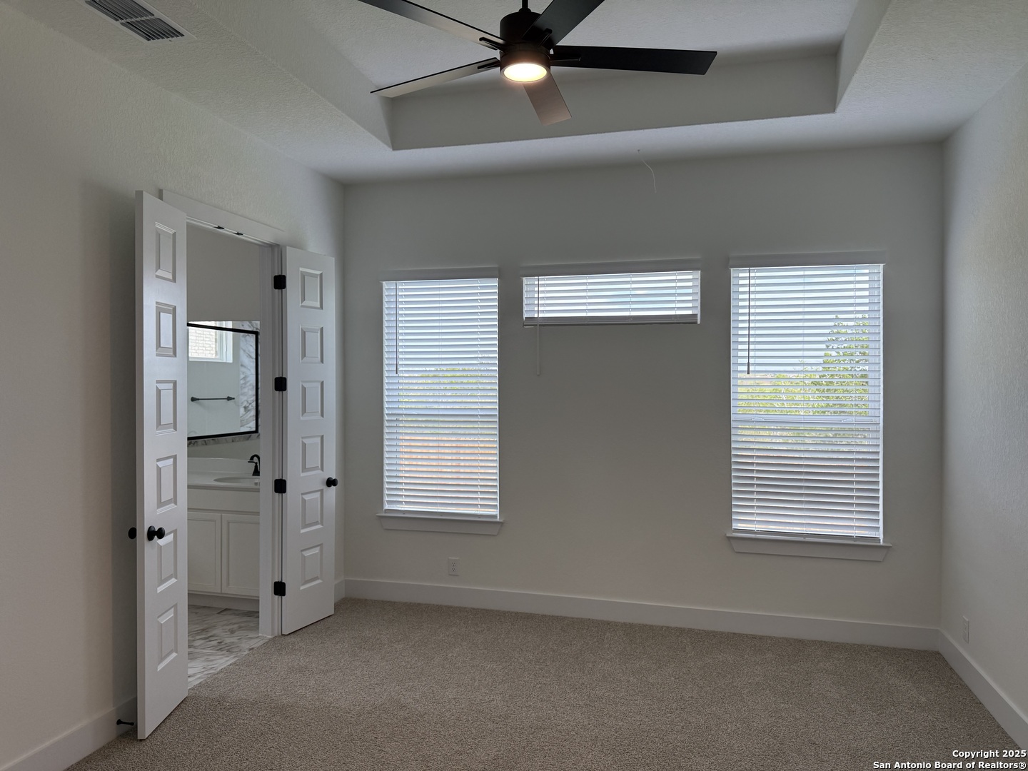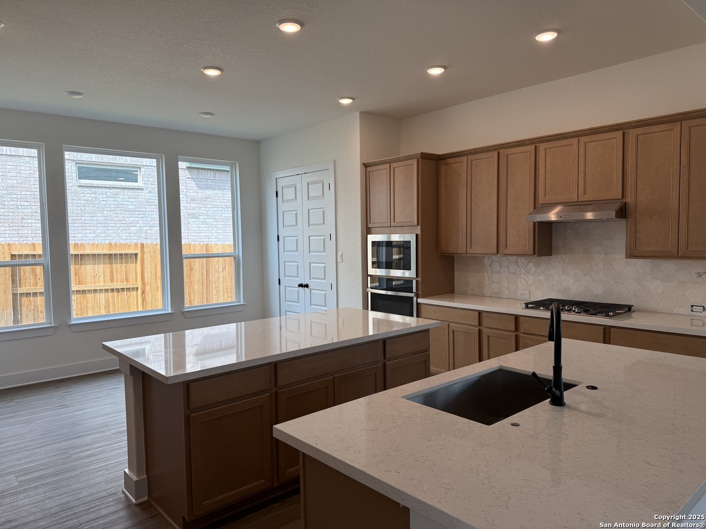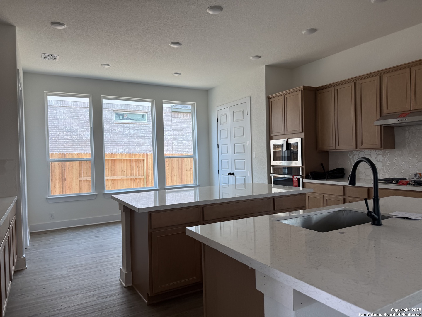Move in Ready! Enter through the impressive 8-foot front door into a grand foyer that sets the tone for the home. Just beyond, you'll find a well-appointed secondary bedroom on the main level, offering flexibility and convenience. Continue on to the spacious family room, seamlessly connected to an open-concept kitchen featuring dual islands and an adjoining breakfast area-perfect for everyday living and entertaining. The expansive family room overlooks a covered back patio and a generously sized backyard, ideal for barbecues, birthday celebrations, or quiet evenings outdoors. A 2.5-car garage offers ample space for both parking and storage, ensuring there's room to accommodate everything from everyday essentials to future dream vehicles.