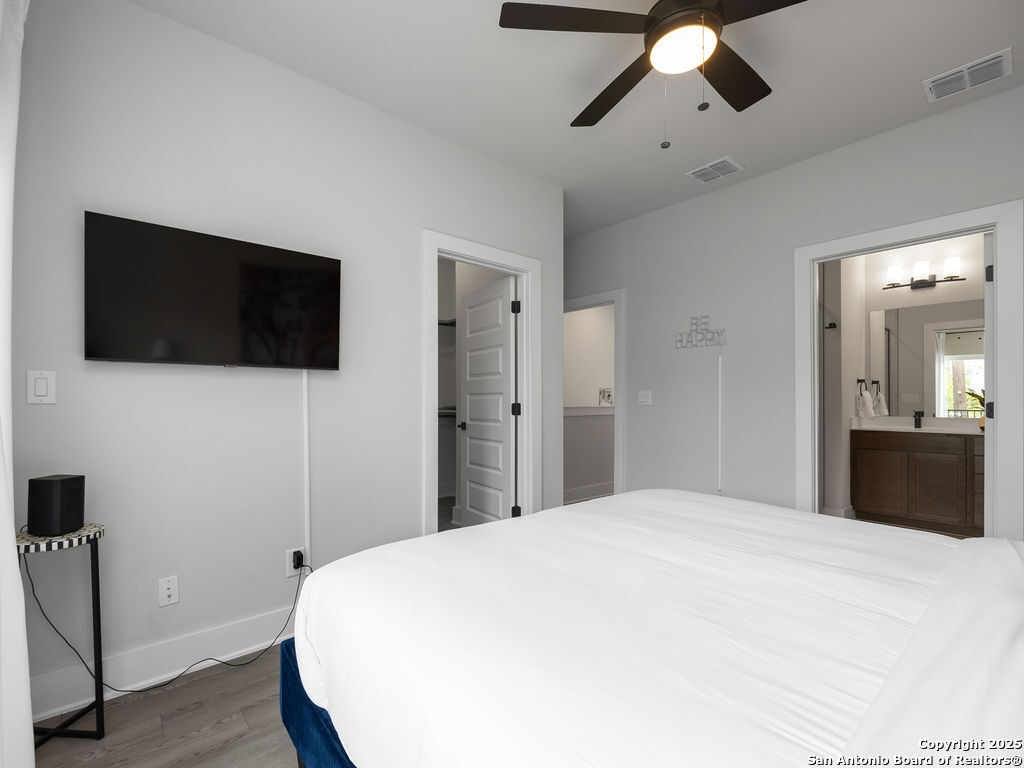 Welcome to Unit 1101 at 411 Ira Ave - a modern, boutique-style condo nestled in one of San Antonio's most vibrant and connected neighborhoods. Whether you're commuting to Ft. Sam Houston, walking to class at the University of the Incarnate Word, or meeting friends at The Pearl, this location puts you in the center of it all. Step outside and you're just minutes from Brackenridge Park, the Witte Museum, the DoSeum, and the San Antonio Zoo-with nature trails, bike paths, and cultural destinations all within reach. Plus, you're a short ride to downtown, Alamo Heights, and some of the city's best local dining, coffee shops, and weekend markets. Inside, this home offers a thoughtful three-level layout: one private bedroom with en-suite bath on the first floor, and two additional bedrooms-each with a private bath-secluded on the third. The second level serves as the heart of the home, with a stylish open-concept kitchen, spacious island, and living area perfect for entertaining or relaxing. The kitchen shines with quartz countertops, stainless steel appliances, and a generous island for prep or casual dining. Stylish lighting, upgraded cabinetry, and designer finishes throughout make it both functional and fashionable. Enjoy the outdoors from two private balconies-one off the main living area and another exclusive to the primary bedroom. Low-maintenance finishes like wood-look laminate flooring, quartz countertops, and energy-efficient systems mean more time enjoying your lifestyle and less time on upkeep. Washer, dryer, and refrigerator convey, and furnishings are negotiable for an easy, turn-key experience. This unit stands out with its curated aesthetic, smart layout, and unbeatable location. Whether you're investing, downsizing, or house-hacking, Unit 1101 offers location, lifestyle, and low-maintenance living in one of San Antonio's most dynamic neighborhoods. Schedule your showing today!