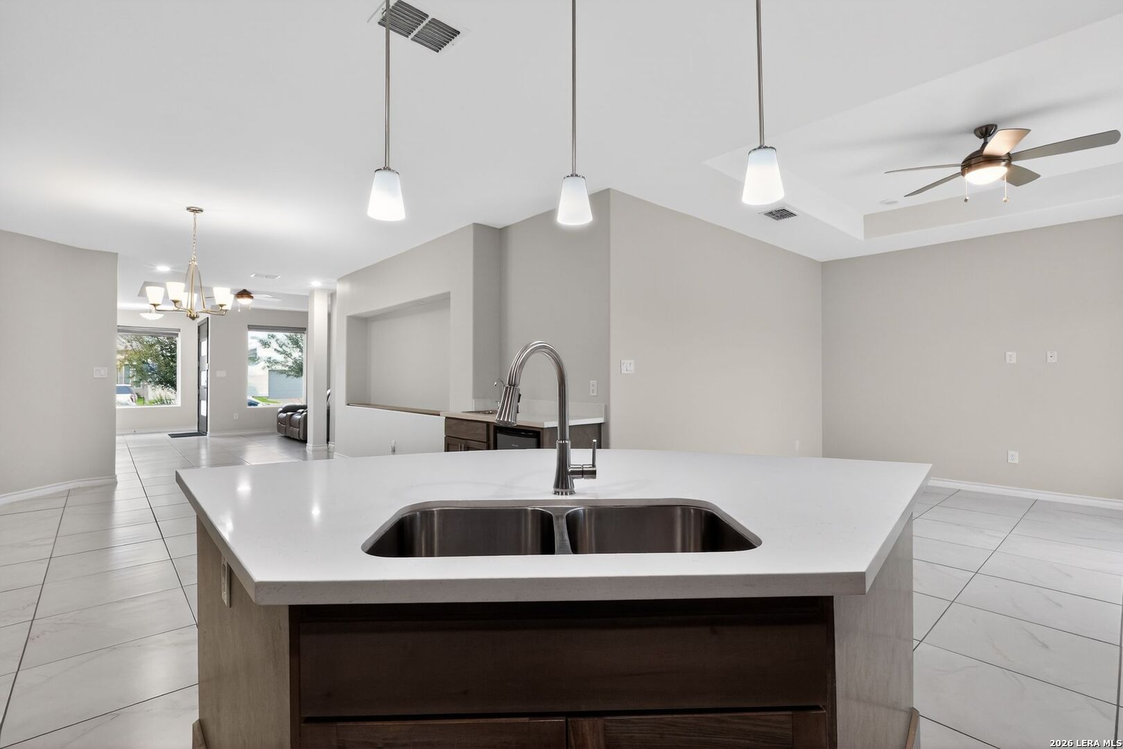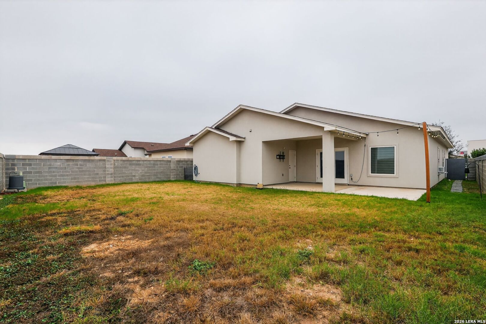 Welcome to this beautifully maintained single-story home in the Boardwalk at Alexander. Offering over 2200 sq ft of living space, this 4-bed, 2.5-bath home features a spacious open-concept layout with tile flooring and neutral tones throughout. The stylish kitchen includes quartz countertops, sleek cabinetry, a large center island, and gas or electric range options. Enjoy peace of mind with a 10-year structural warranty. The expansive primary suite provides a private retreat, while the secondary bedrooms offer flexibility for family or guests. Additional highlights include a separate exterior entrance to the guest bath, ceiling fans in every room, and low energy bills. Outdoor living is enhanced by double back doors, an extended concrete patio, and backyard string lights. Located in a desirable neighborhood with low HOA fees, no rear neighbors, and easy access to walking and biking trails. Smart features include a Nest thermostat, Wi-Fi garage door, smart switches, security cameras, and a full alarm system. Ample storage with a floored, well-lit attic, plus a garage sink and concrete trash-can pad. Centrally located and meticulously cared for, this home is truly move-in ready. Come see it today!
