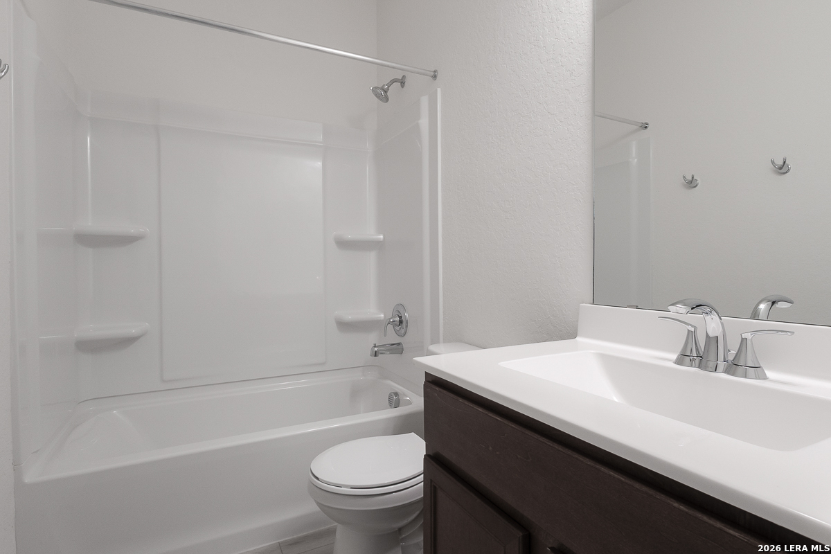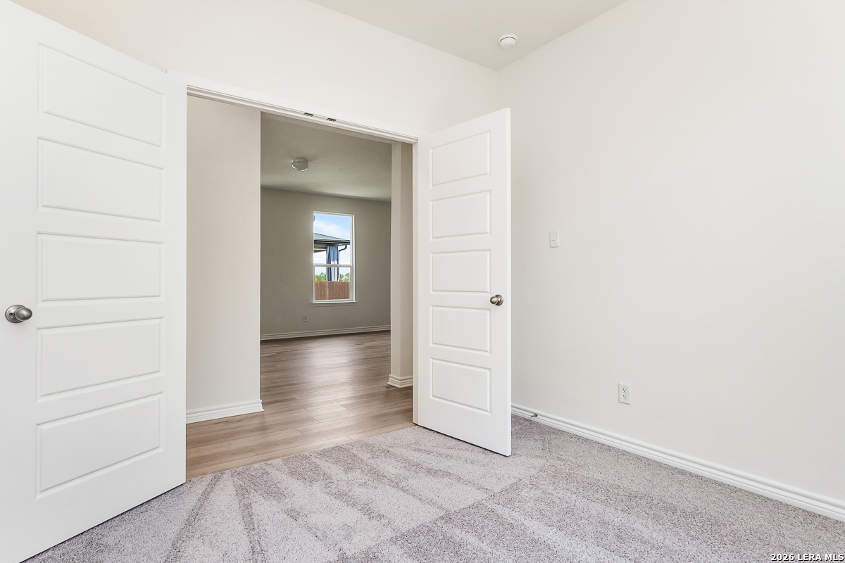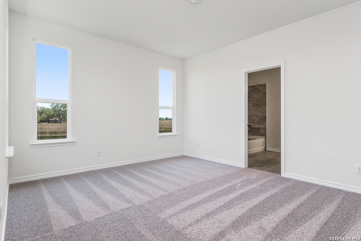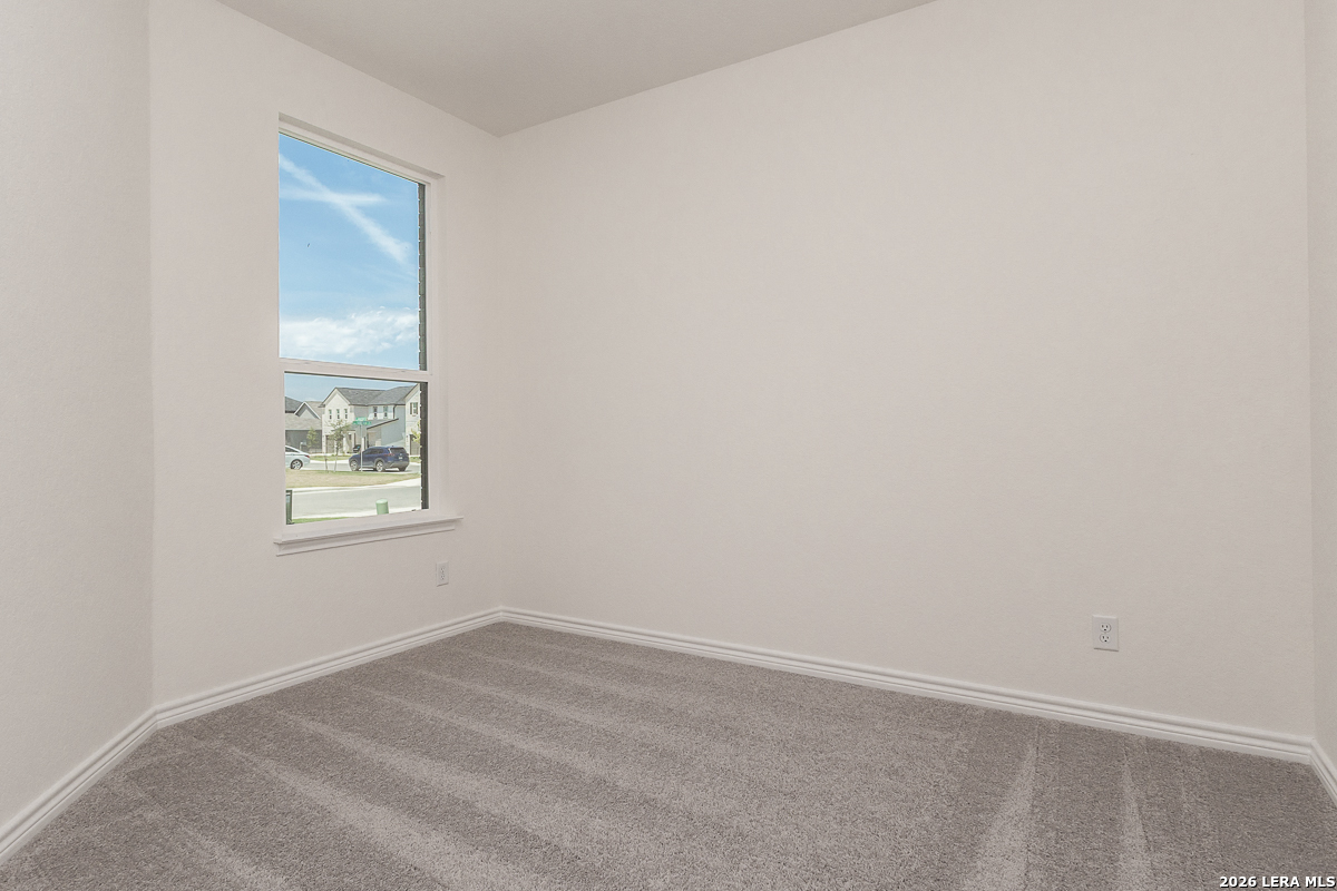 This stunning home features 9-ft. ceilings on the first floor, creating a spacious and inviting atmosphere. A den with double doors provides a private retreat. The kitchen is equipped with Whirlpool stainless steel appliances, Woodmont Cody 42-in. upper cabinets, an extended breakfast bar, Silestone Helix countertops, and a stylish Daltile tile backsplash. The primary bath offers upgraded cabinets and a luxurious 42-in. garden tub/shower with Daltile tile surround. Elegant touches include a Carrara style entry door, Kwikset Polo knob interior door hardware, and vinyl plank flooring in the bathrooms, great room, and kitchen. Additional features include a wireless security system, automatic sprinkler system, and a fully sodded yard.