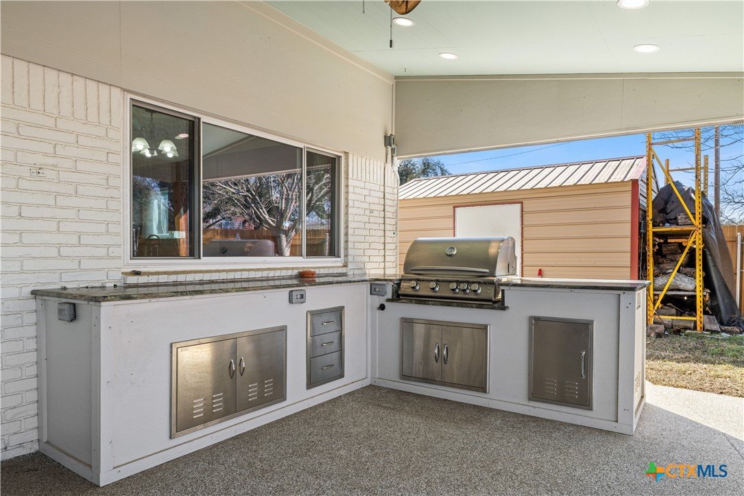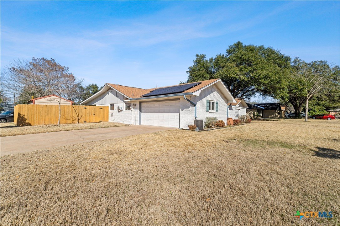 Meticulously maintained home in an established Temple neighborhood with mature trees and nearby parks. This versatile property offers 3 bedrooms, 2.5 baths, and two spacious living areas, ideal for everyday living and entertaining. Luxury vinyl plank flooring runs throughout. A hidden office or flex room provides the perfect private workspace or retreat. Enjoy a private backyard oasis featuring a large covered patio with outdoor kitchen, perfect for gatherings or quiet evenings. Two outbuildings with power offer flexible use for a workshop, storage, hobby space, or future guest quarters. Additional features include solar panels, a security system, and a charming front porch sitting area. A rare opportunity combining character, functionality, and privacy in one of Temple’s most established areas.