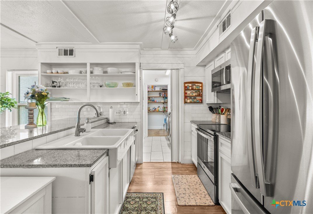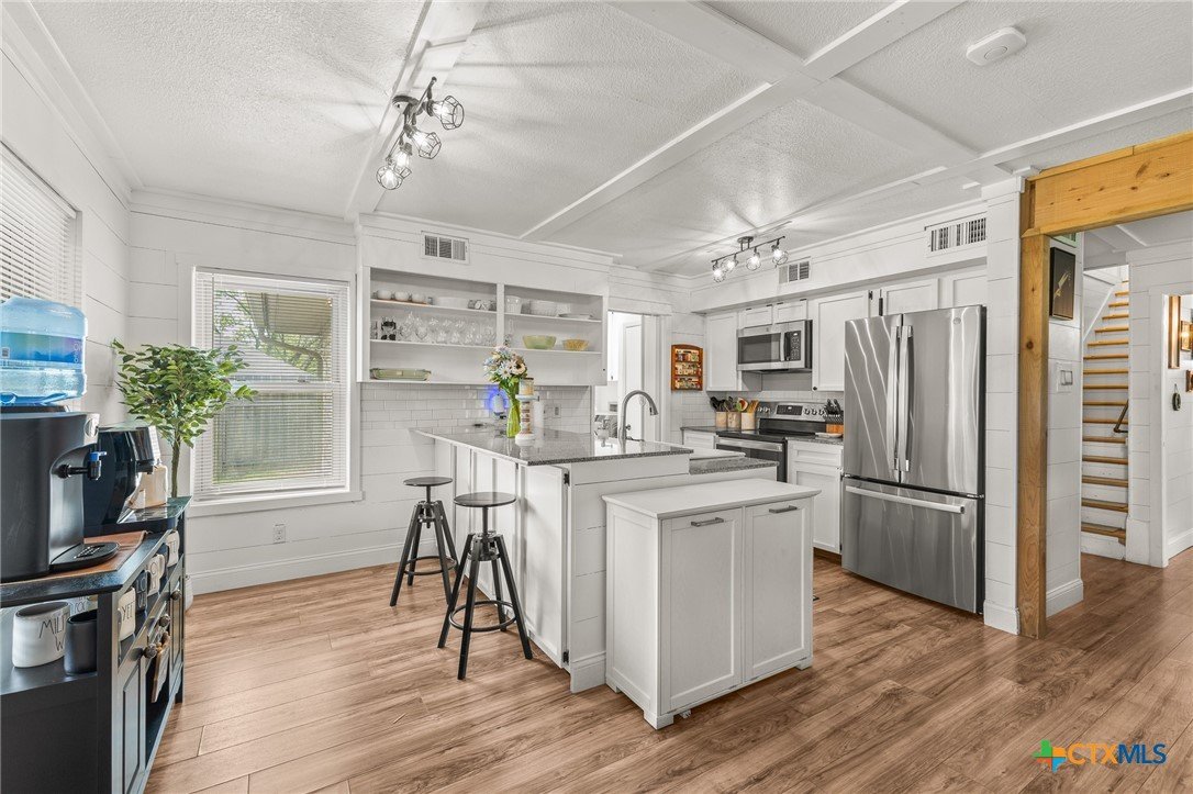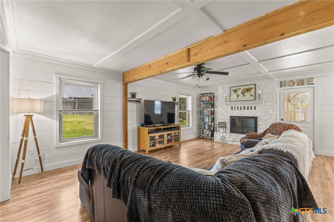 Beautifully updated 4 bedroom, 2.5 bathroom home offering 2,272 square feet on a spacious lot with mature trees. This two story layout features multiple living and dining spaces including a formal dining area, LVP flooring, a wood burning fireplace, and an updated kitchen with granite countertops, stainless steel appliances, a walk in pantry, and ample cabinet space. All bedrooms are located upstairs, with the primary suite positioned separately to one side of the stairway and the secondary bedrooms placed on the opposite end of the hallway, creating a functional split floorplan. A full hallway length of additional storage adds to the home’s practicality and everyday usability. Recent improvements include a newer roof, brand new upper and lower level HVAC systems, updated smart irrigation in both the front and back yard, smart home features, storage shed, and added pathway/front lighting. Washer, dryer, and all kitchen appliances can convey. The covered back patio and fenced backyard provide functional outdoor space with room to relax, entertain, or enjoy everyday living. Conveniently located near schools, shopping, dining, and major commuter routes, this home offers a strong combination of space, updates, and usability.