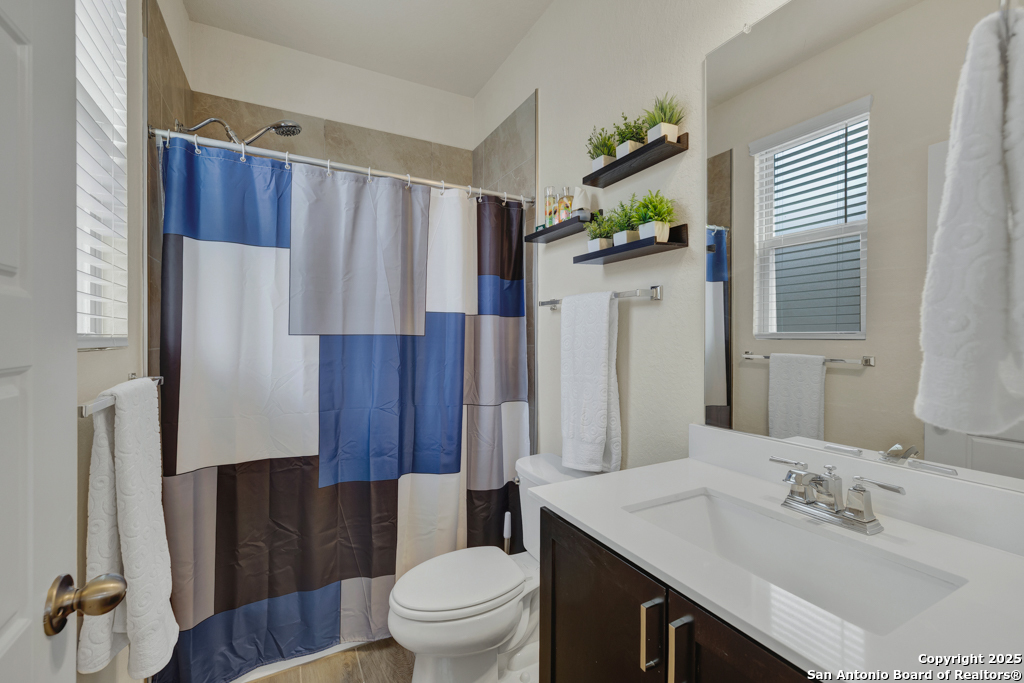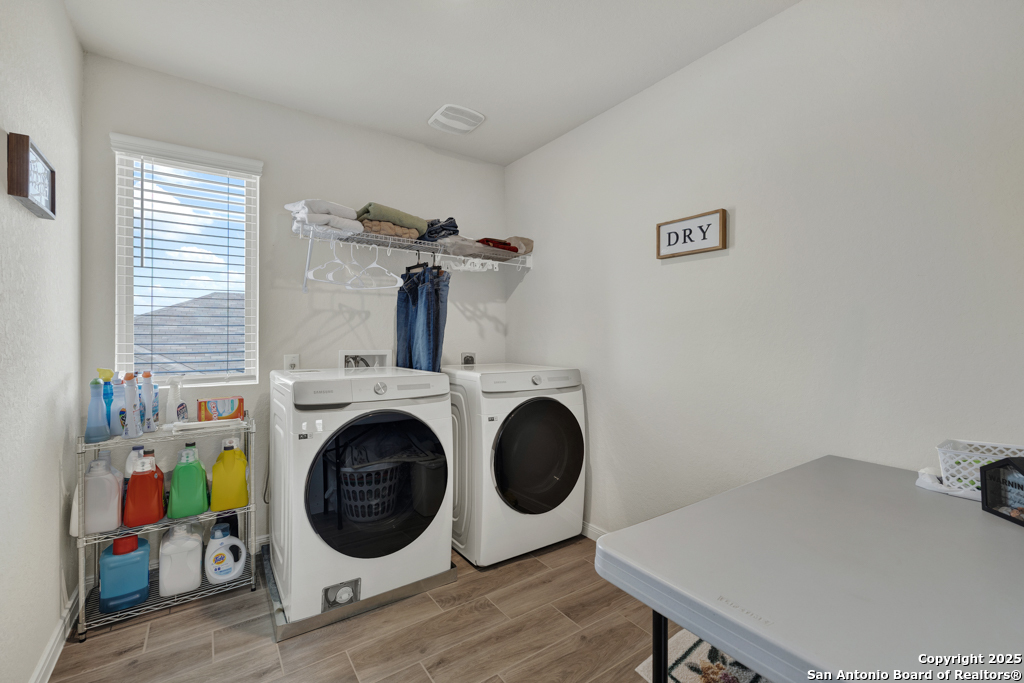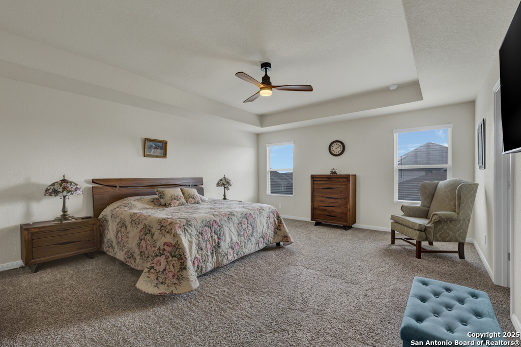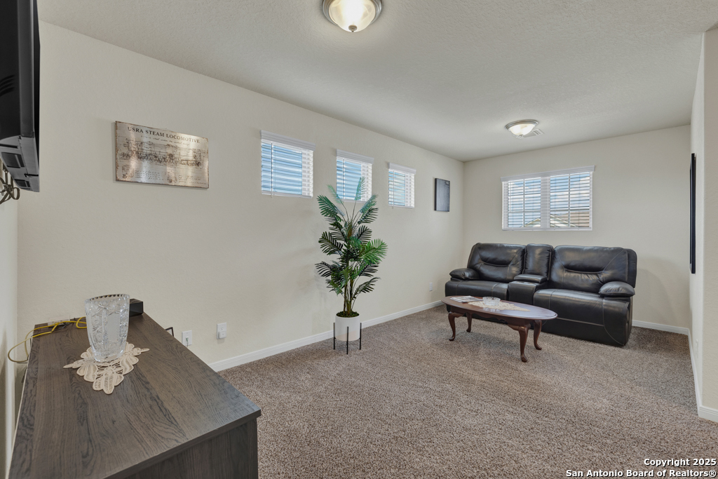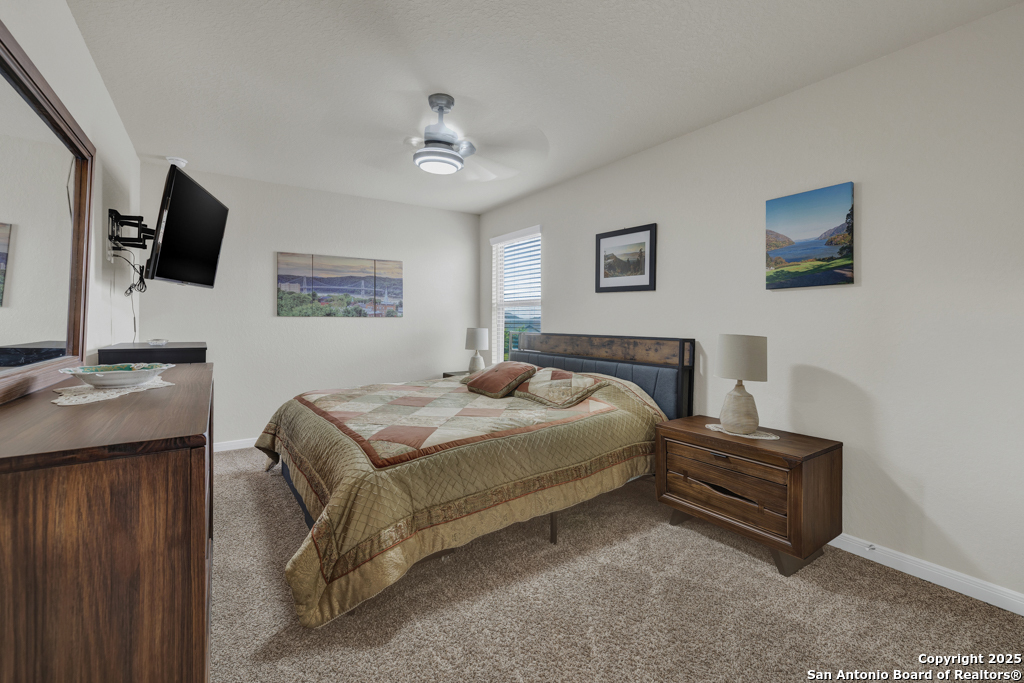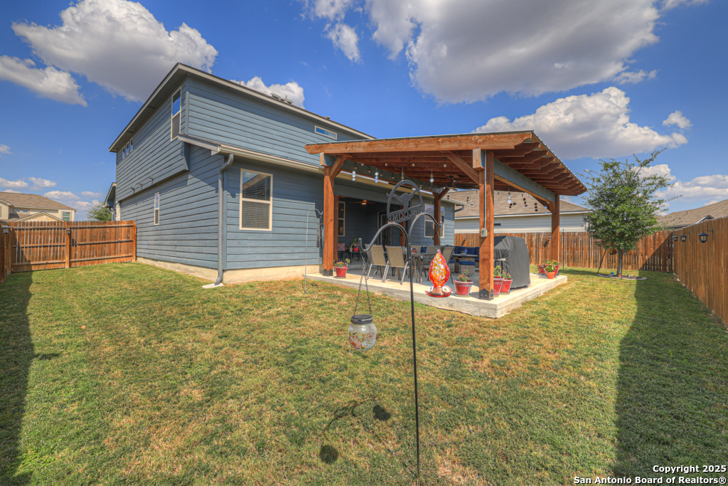 Our home has an ideal location, being halfway between San Antonio and New Braunfels. Conveniently located with easy access to I-35 and I-10 and close to shopping stores. Quiet, beautiful community located 5 miles from Randolph Airbase. The house has 2 master bedrooms. One large master bedroom located upstairs and the second one located on the first floor. The house has a 3 cars garage which is a great space for not only parking the cars but also for storage.Ceramic tile throughout the first floor, with the exception of the second master bedroom, which is carpeted. Ceramic tile in the showers and bathroom floors as well as the laundry room floor. Water softener system. Custom 18x24 Cedar pergola on a concrete slab, with lights and fans. Solar lanterns light up the back yard. Chamberlain Garage door openers with remote control. Ceiling fans in the bedrooms and in the living room. Blinds throughout the house. French doors large size LG refrigerator. Samsung front load washer and dryer. -Simplisafe alarm system A total of $51,580 in improvements see details in documents EV charger included with home.
