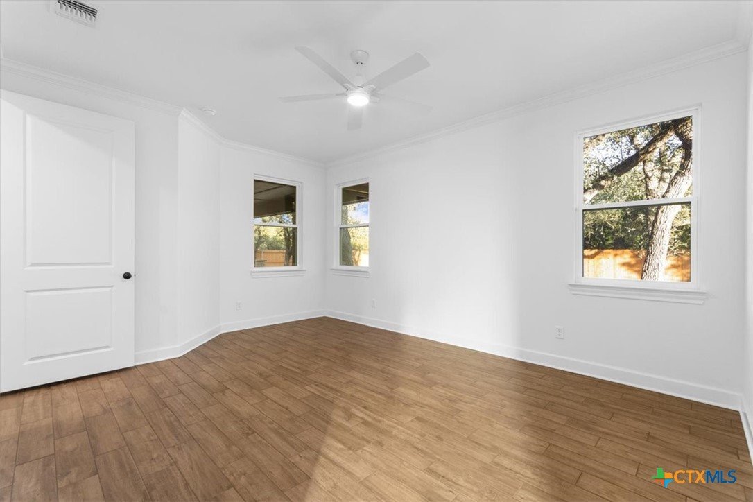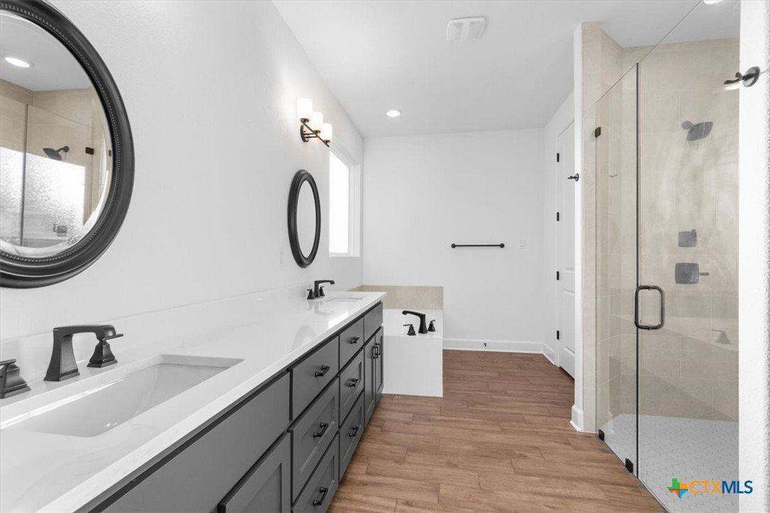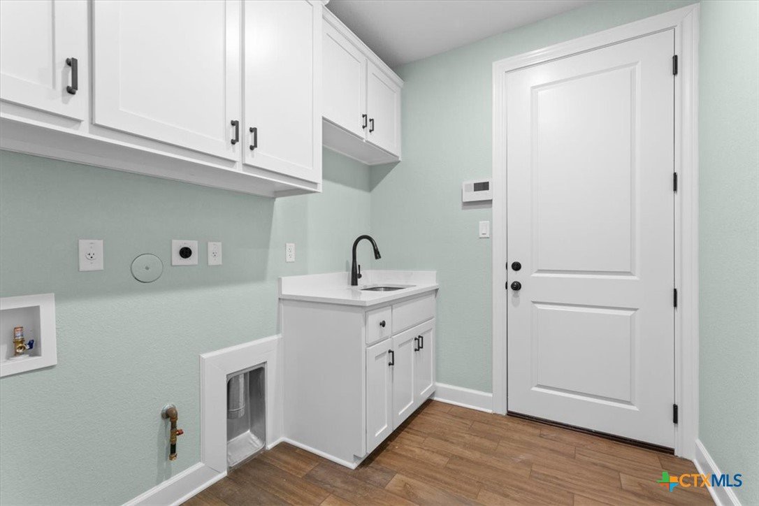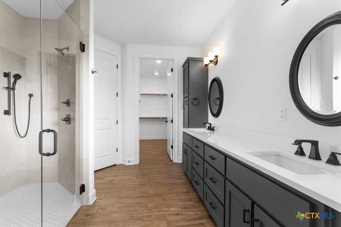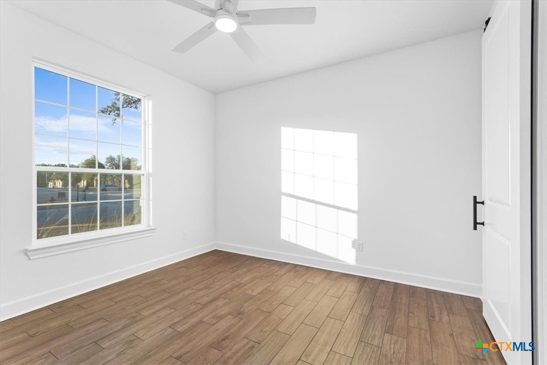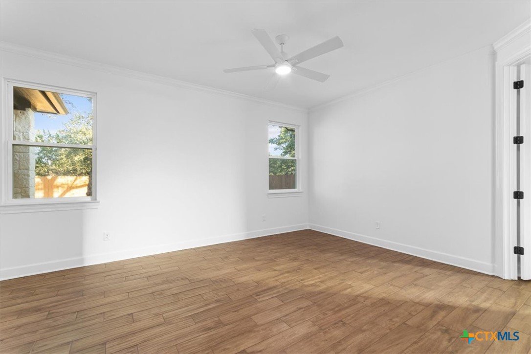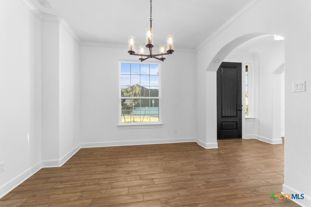 4121 Turning Leaf Drive offers timeless design, energy-efficient features, and the craftsmanship you expect from the Parade of Homes award-winning builder Alethium Star Homes. Nestled in the gated Bella Charca community, this thoughtfully designed 2,397 square foot home includes four bedrooms, three full baths, and a spacious, open-concept layout ideal for entertaining and daily living alike. A large foyer opens into the main living space, where expansive windows frame a peaceful view of the backyard. Just beyond, the covered patio is outfitted with a complete outdoor kitchen—including a built-in grill, refrigerator, sink, and storage—making al fresco dining a breeze. Inside, the kitchen is a true focal point with designer quartz countertops, stainless steel appliances, custom wood cabinetry, and a walk-in pantry. A generous island and dual dining spaces oNer flexibility for both casual meals and formal gatherings. The living room includes a wood-burning fireplace with gas ignitor and floor outlets, while crown molding and prewiring for TV and data are found throughout the home. The primary suite oNers a garden tub, walk-in tiled shower with dual shower heads, and dual vanities with quartz surfaces. An in-law suite with private bath ensures guests or family have their own retreat, while secondary bedrooms are enhanced with barn-door closets. Additional highlights include a WiFi-enabled thermostat, 15 SEER HVAC, Low-E windows, R38 attic insulation, and a 50-gallon gas recirculating water heater. Outside, you'll find a fully sodded yard with irrigation system, flower beds, privacy fencing, landscape lighting, and a 50-amp EV charger in the garage. Located minutes from Fort Cavazos, and with quick access to I-14 and area schools, this home combines luxury and location in one exceptional package.