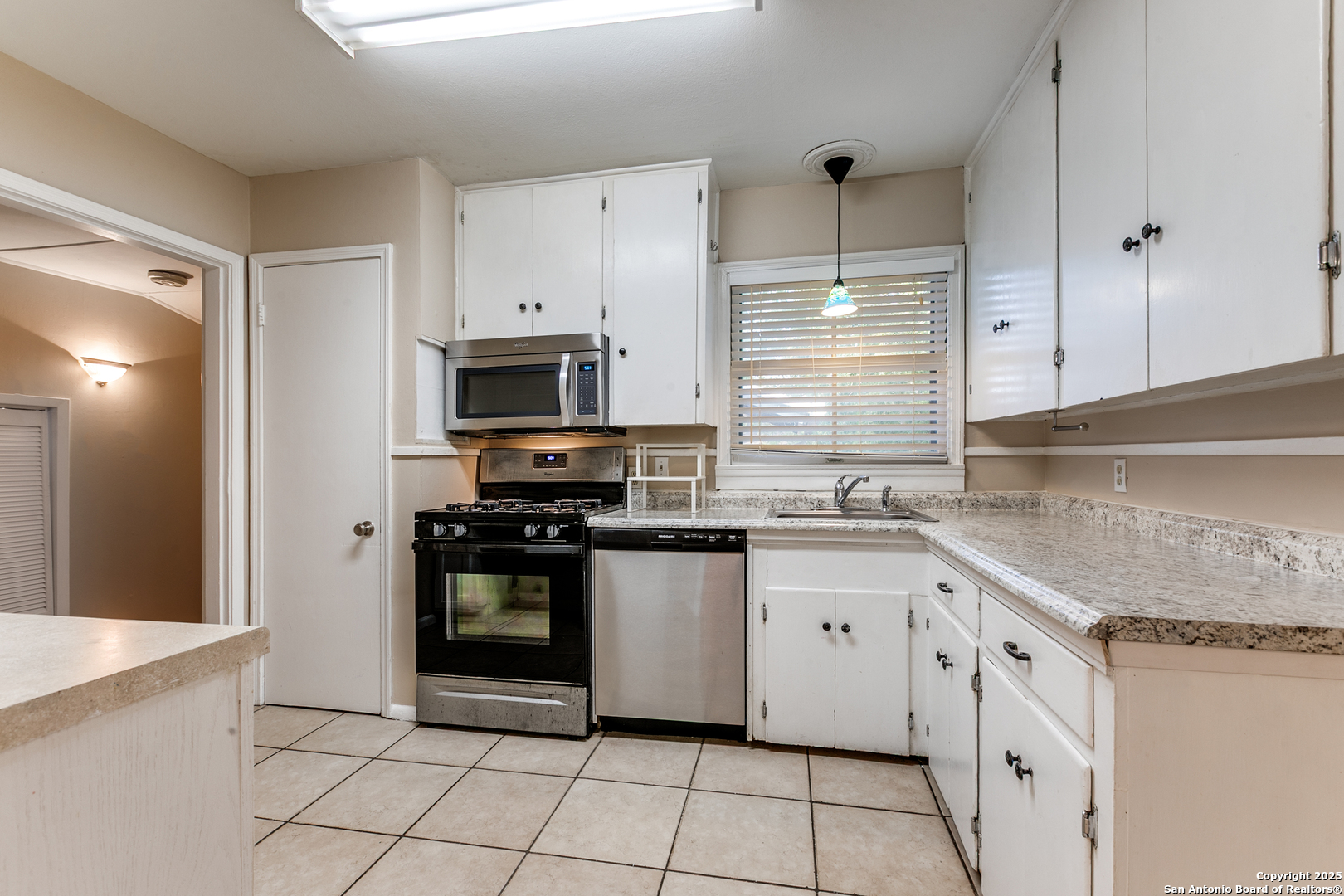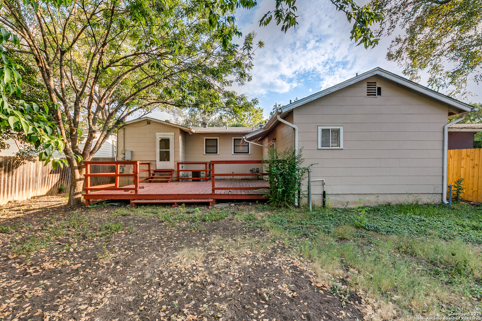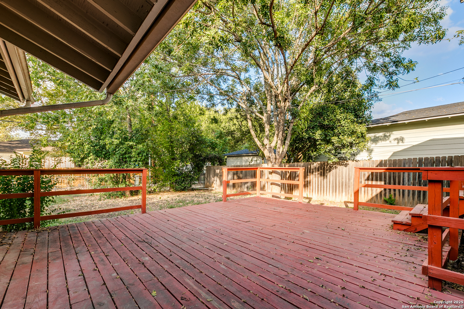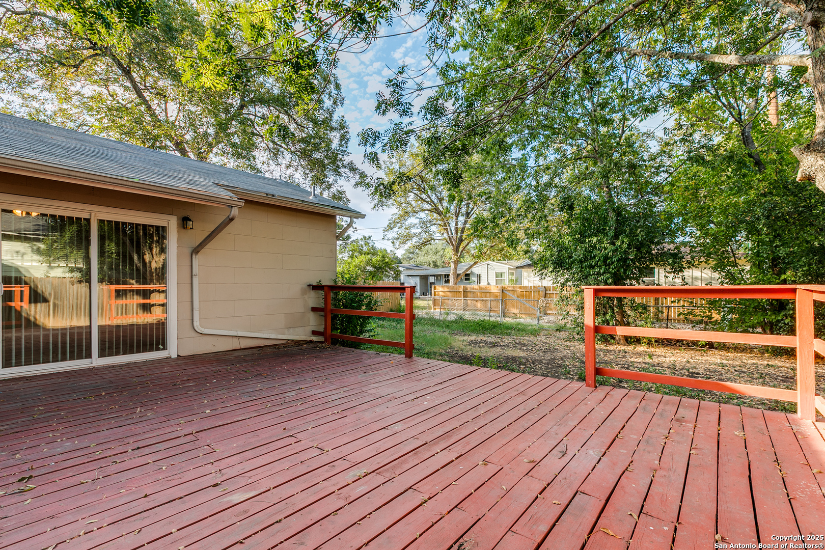 Fantastic Single-Story, 3-Bedroom Home in Popular Terrell Heights, Alamo Heights ISD * Rich Hardwood Flooring in Living, Bedrooms * Spacious Living Room w/ Built-In Shelving & Cabinets * Spacious Kitchen w/ Gas Cooking, Stainless Appliances w/ Microwave, Stove/Range, & Dishwasher Included * Neutral Paint Colors & Window Coverings Throughout, Bedrooms Have Ceiling Fans w/ Lights * Master Bedroom has Outside Access * Large Deck Overlooks Fenced Backyard * One-Car Carport * Pets Case-by-Case