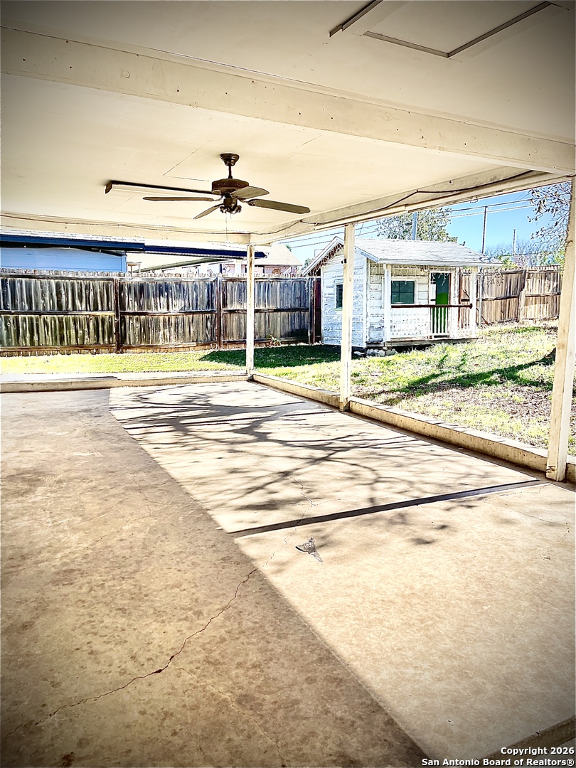 This single family home at 414 Kathy in San Antonio TX 78223 offers a strong combination of space, flexibility, and future potential in an established area. The property features 3 bedrooms and 2 bathrooms, with an additional living area that works well as a second family room, home office, or flex space. The home's square footage is larger than BCAD, creating added value and room for updates or customization. Seller estimates home to be approximately 1,561 sq ft; square footage differs from BCAD. Buyer to independently verify all measurements, square footage, and property information during due diligence. Outdoor features include a large patio for entertaining, a playhouse, workshop, and separate shed, offering practical storage and creative use options. With a functional layout, generous outdoor space, and a convenient location near schools, shopping, and major roadways, this home presents an opportunity for both end users and buyers seeking a value add property.