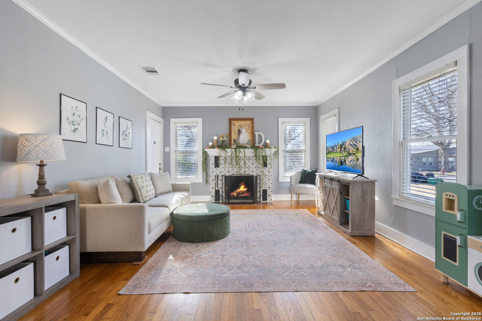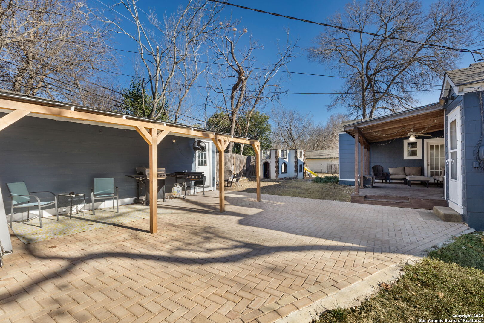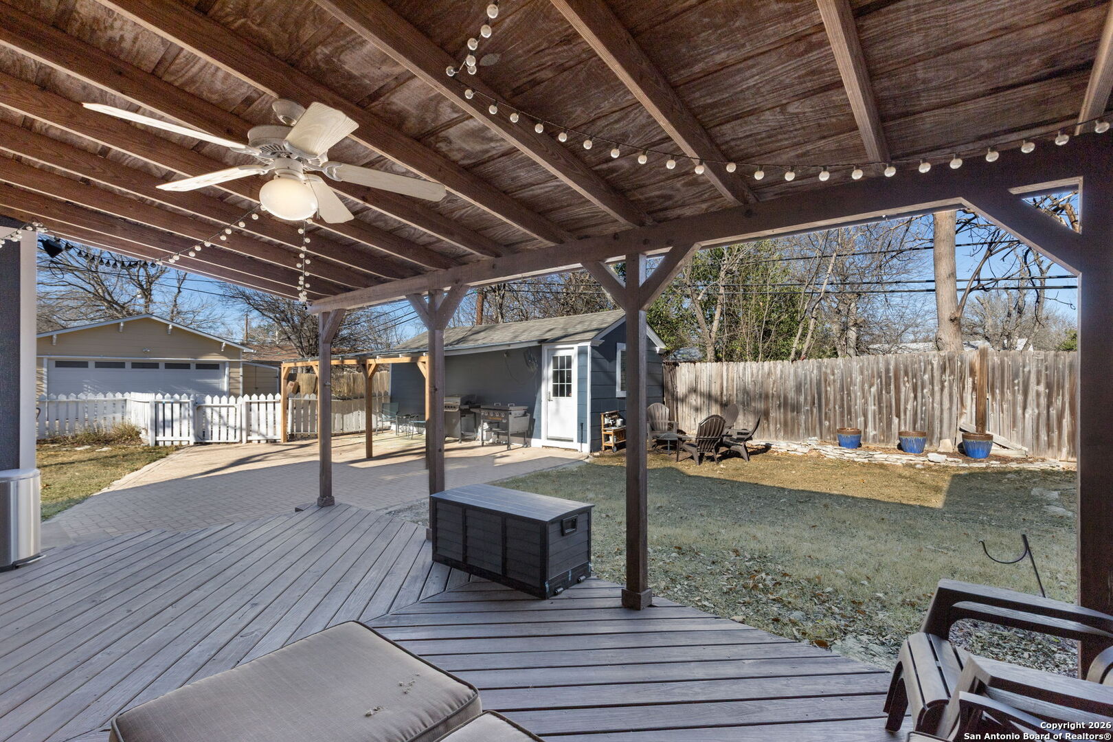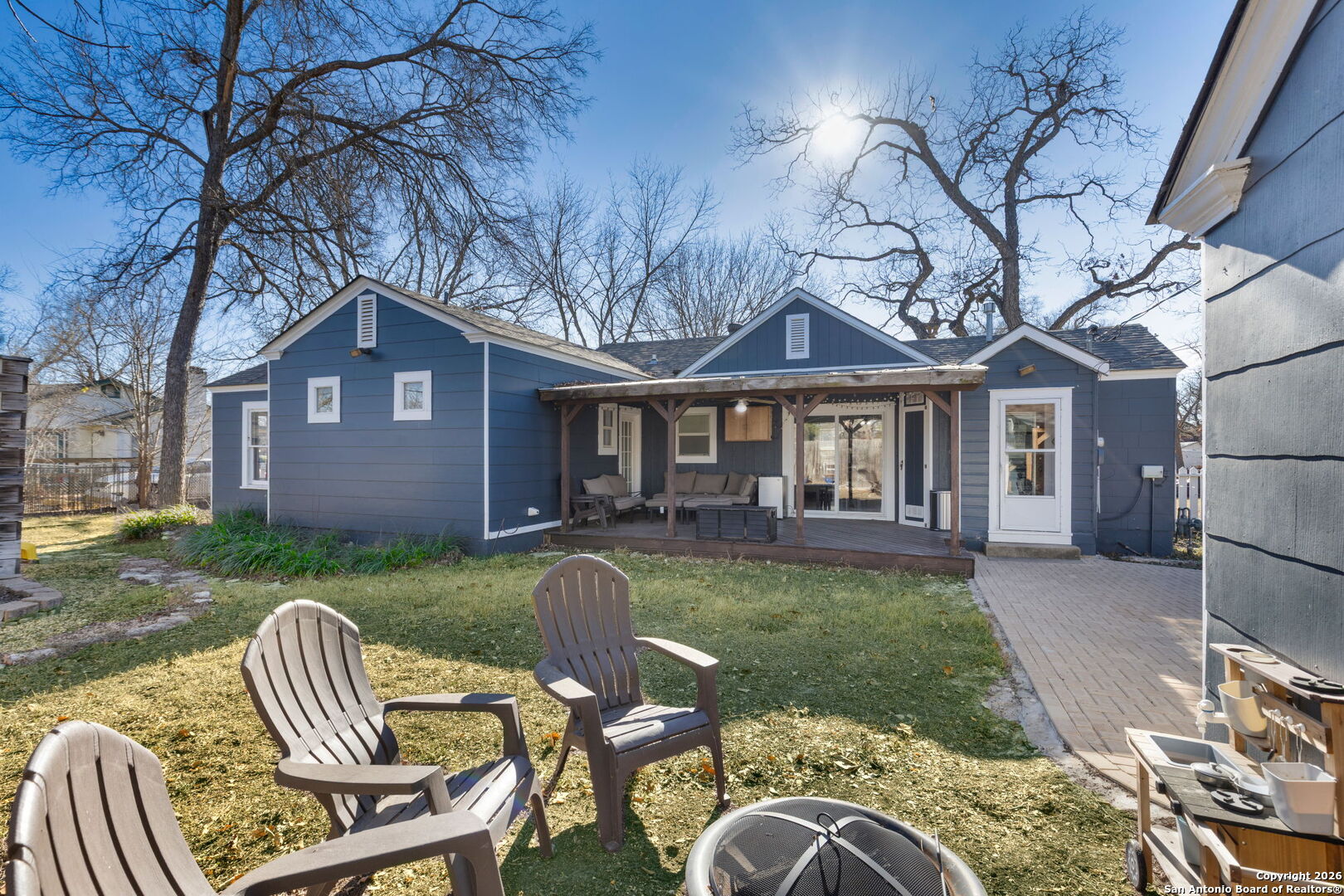 Classic 1940s charm meets everyday comfort in this well-maintained 3-bedroom, 2-bath home, ideally located in a walkable, tree-lined neighborhood close to parks, schools, & grocery stores. Charming original hardwood floors flow throughout most of the home, complemented by abundant natural light & a cozy wood-burning fireplace anchoring the living room. The dining room features built-in cabinetry that adds both character & function, while the kitchen offers a gas range & a charming corner sink positioned beneath a window, creating a bright & practical workspace. Outdoors, the fully fenced backyard is shaded by mature trees & offers grassy play space along with a play castle & swing set, both of which convey. A deck & patio create multiple outdoor living & entertaining areas. The detached garage includes a workshop area & is outfitted with both water & electricity, ideal for hobbies, additional storage, or a future guest quarters. Recent updates include a new roof in 2023, HVAC replacement in 2024, & a lovely paver patio completed in 2025. Don't miss this wonderful opportunity for young families, first-time buyers, or downsizers seeking warmth, character, & a convenient location.