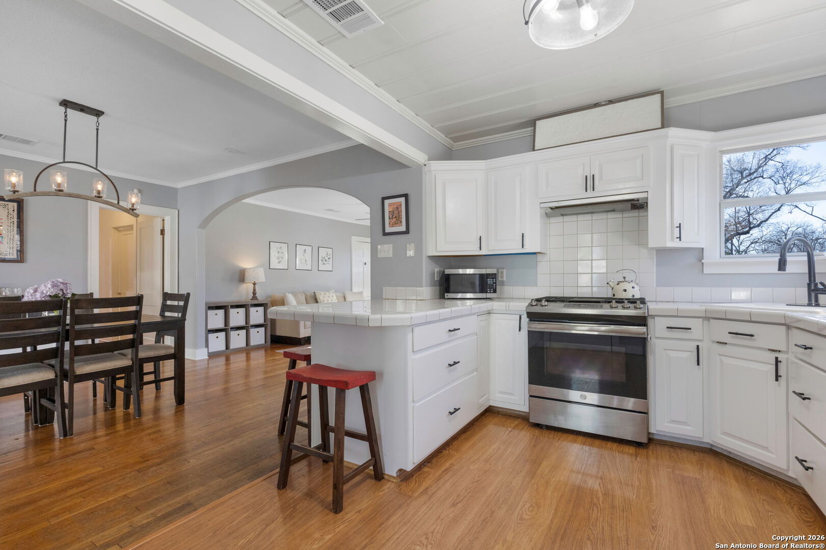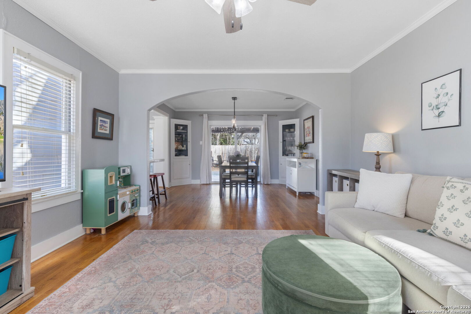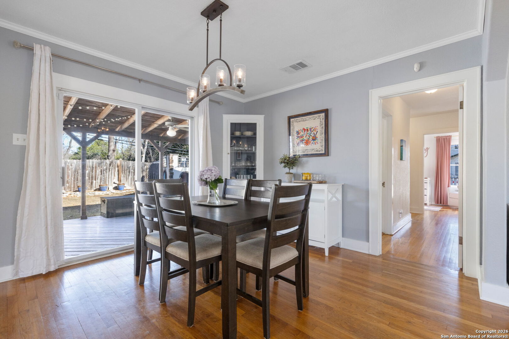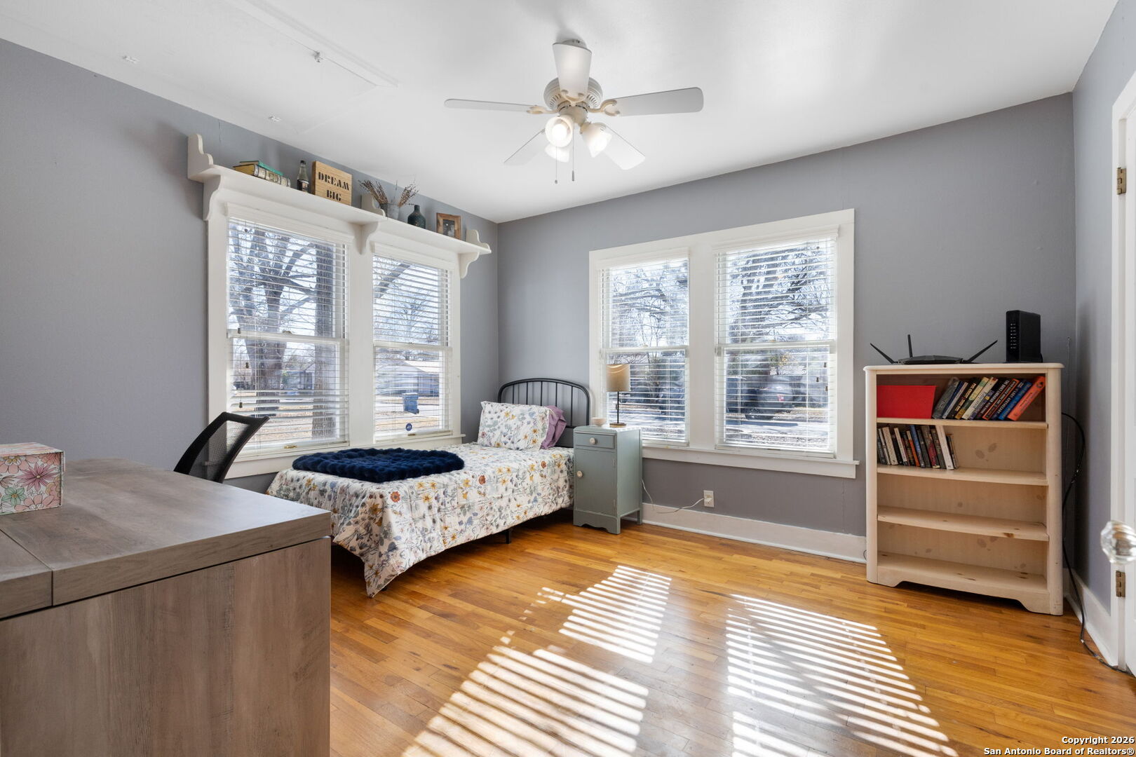 Classic 1940s charm meets everyday comfort in this well-maintained 3-bedroom, 2-bath home, ideally located in a walkable, tree-lined neighborhood close to parks, schools, & grocery stores. Charming original hardwood floors flow throughout most of the home, complemented by abundant natural light & a cozy wood-burning fireplace anchoring the living room. The dining room features built-in cabinetry that adds both character & function, while the kitchen offers a gas range & a charming corner sink positioned beneath a window, creating a bright & practical workspace. Outdoors, the fully fenced backyard is shaded by mature trees & offers grassy play space along with a play castle & swing set, both of which convey. A deck & patio create multiple outdoor living & entertaining areas. The detached garage includes a workshop area & is outfitted with both water & electricity, ideal for hobbies, additional storage, or a future guest quarters. Recent updates include a new roof in 2023, HVAC replacement in 2024, & a lovely paver patio completed in 2025. Don't miss this wonderful opportunity for young families, first-time buyers, or downsizers seeking warmth, character, & a convenient location.