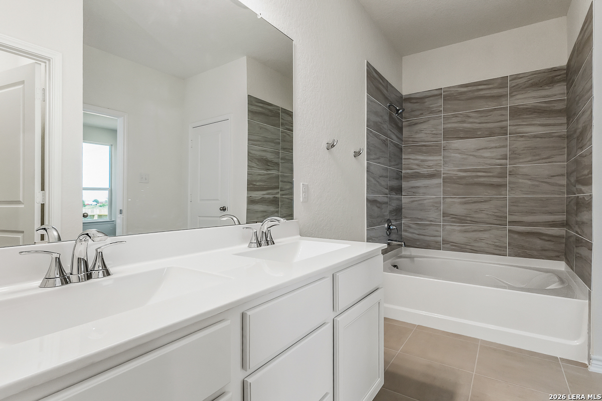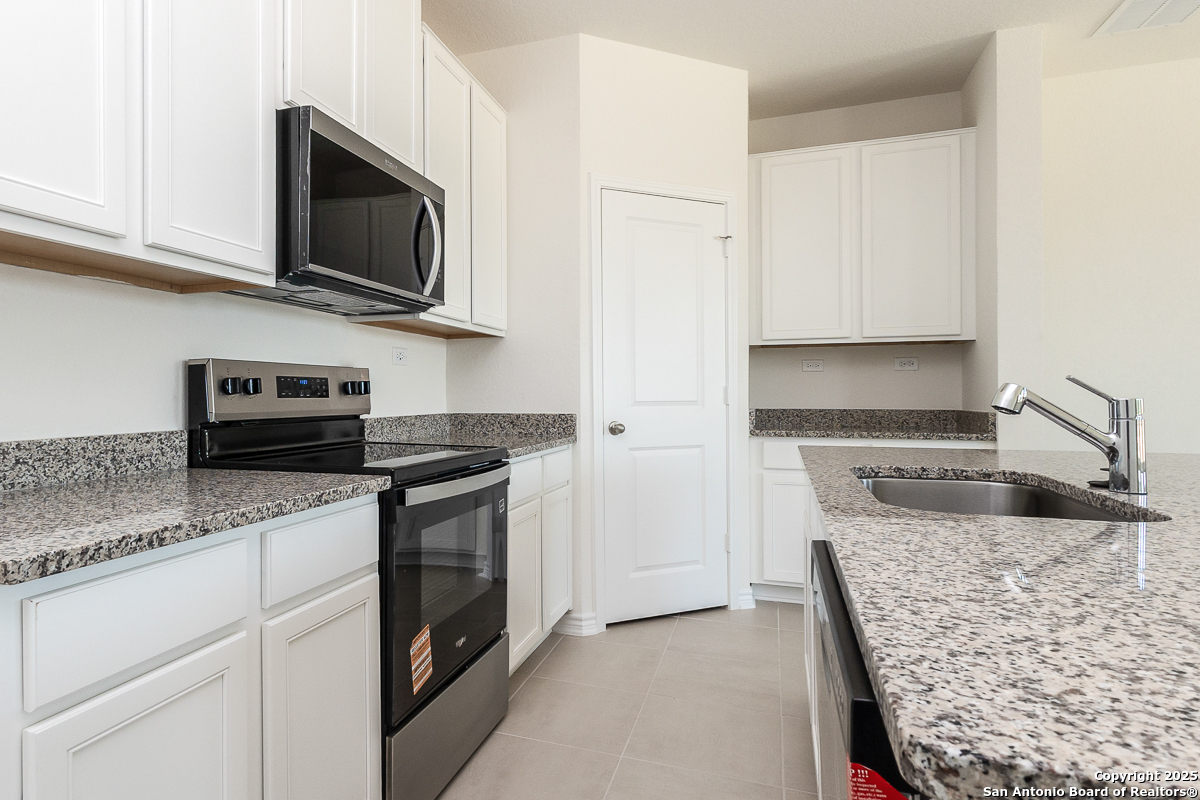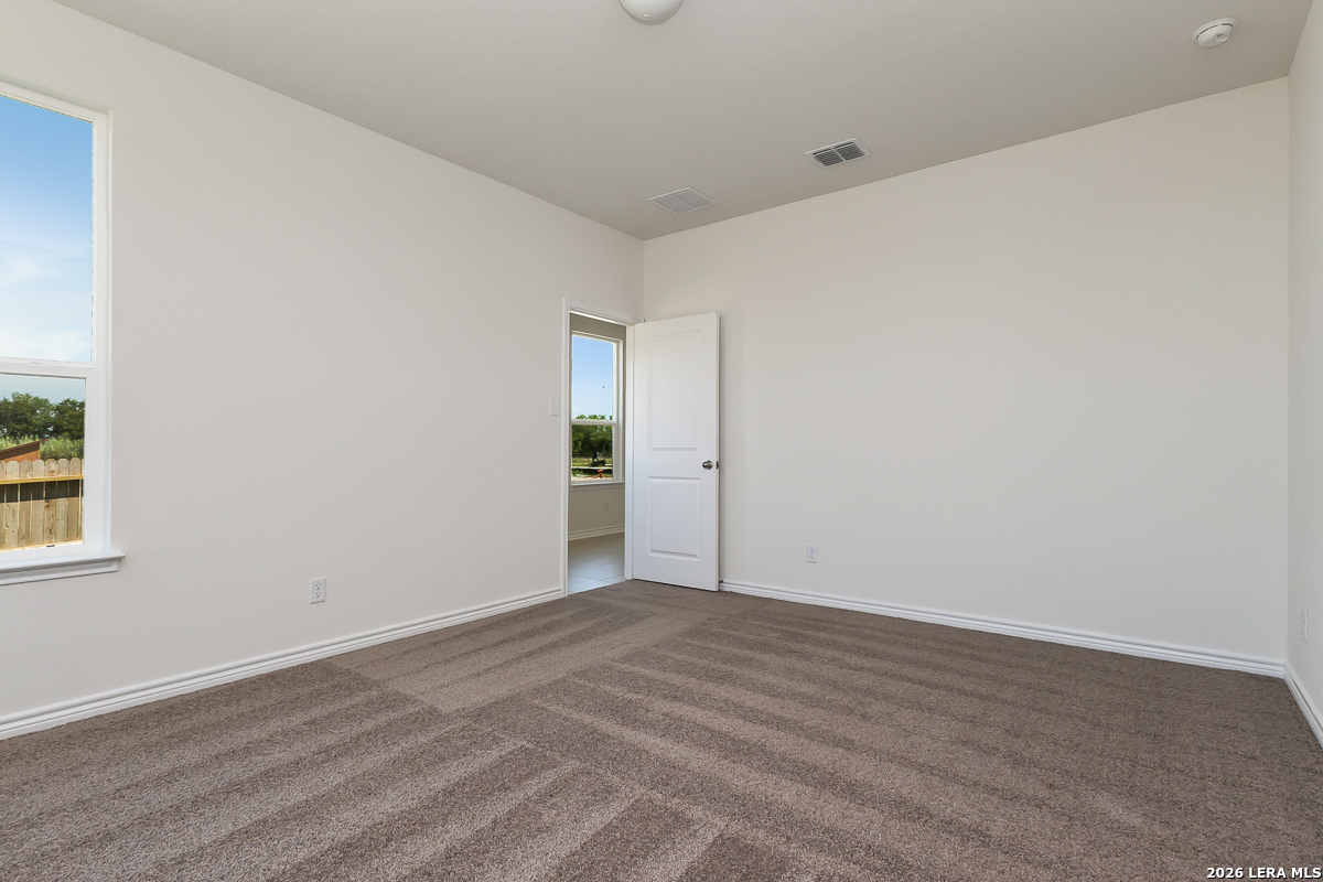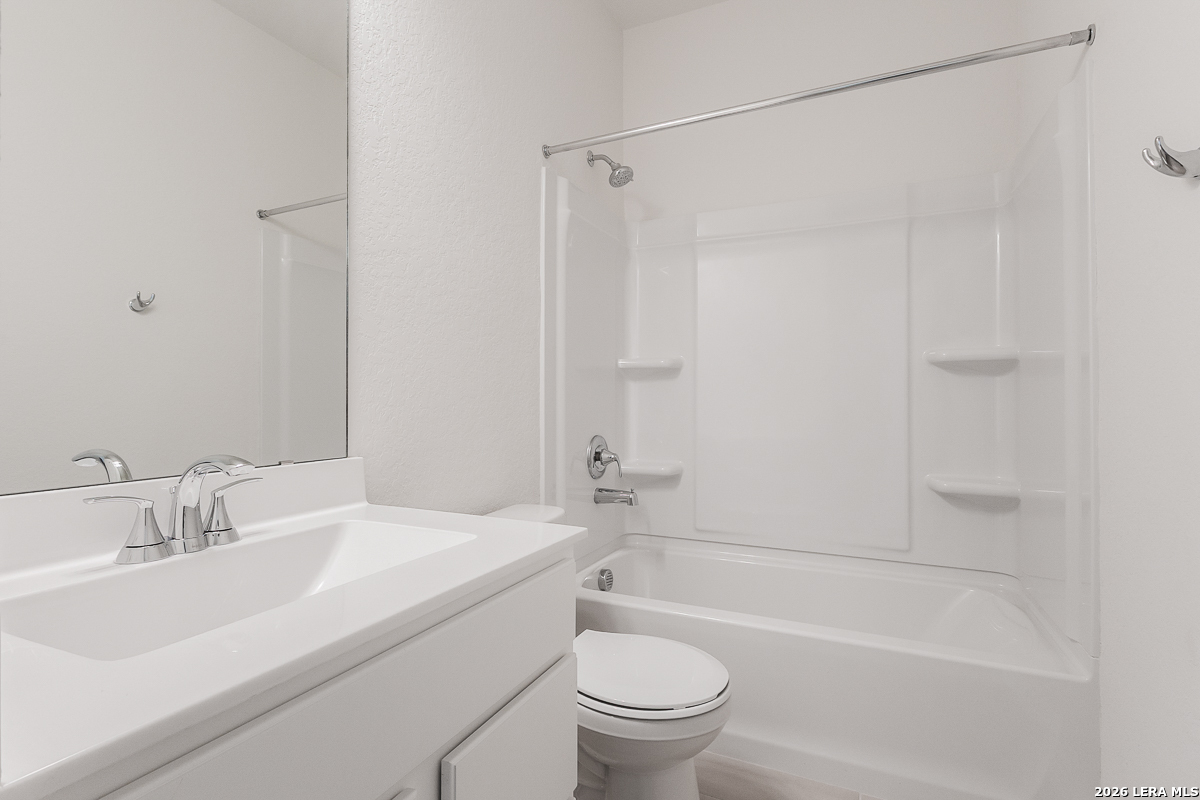 Step into comfort and style with 9-ft. first floor ceilings that enhance the spacious feel of this inviting home. The kitchen shines with Whirlpool stainless steel appliances, Woodmont Belmont 42-in. upper cabinets, granite countertops in Barcelona, and an extended breakfast bar-perfect for casual dining. The primary bath offers upgraded cabinets and a 42-in. garden tub/shower with elegant Daltile tile surround. Design details include a Carrara style entry door, Kwikset Polo knob interior hardware, and Stella Vista ceramic tile flooring in the bathrooms, kitchen, and great room. Enjoy added peace of mind with a wireless security system, plus an automatic sprinkler system and fully sodded yard.