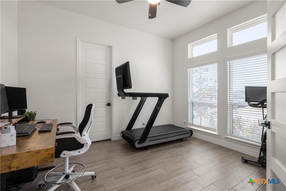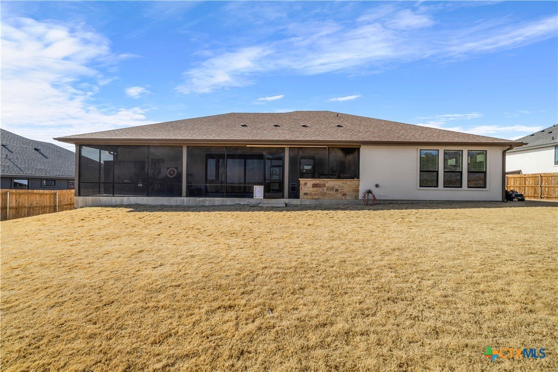 Beautifully maintained 4 bedroom, 2.5 bath home with a 3-car garage in like-new condition & in a desirable Nolanville neighborhood. This Flintrock (LLano floorplan) home offers a smart, functional layout with spacious living areas and thoughtful design throughout. The living room features a sliding glass door system that opens the entire space to the enclosed back porch — creating seamless indoor/outdoor living and the perfect setup for entertaining or relaxing year-round. The kitchen flows easily into the main living area, making it ideal for gatherings. The dedicated office provides flexibility for remote work, a playroom, bedroom, or additional living space. Enjoy a fully fenced backyard, room to spread out, and a 3-car garage that offers extra storage or workshop space. Located with convenient access to Temple, Belton, and Fort Hood.