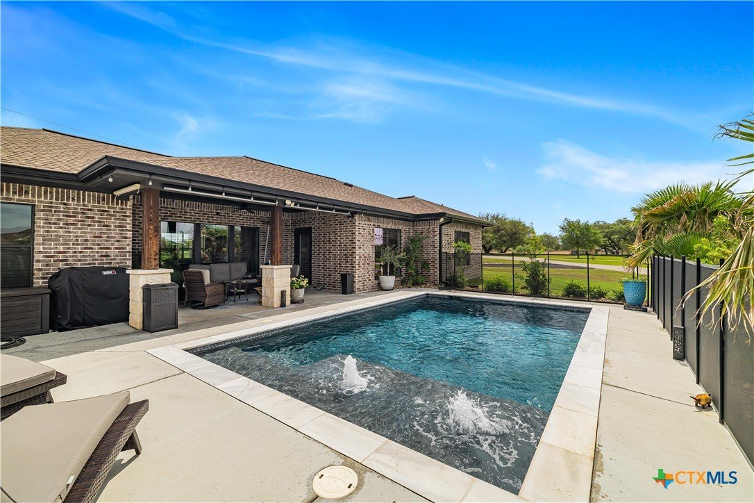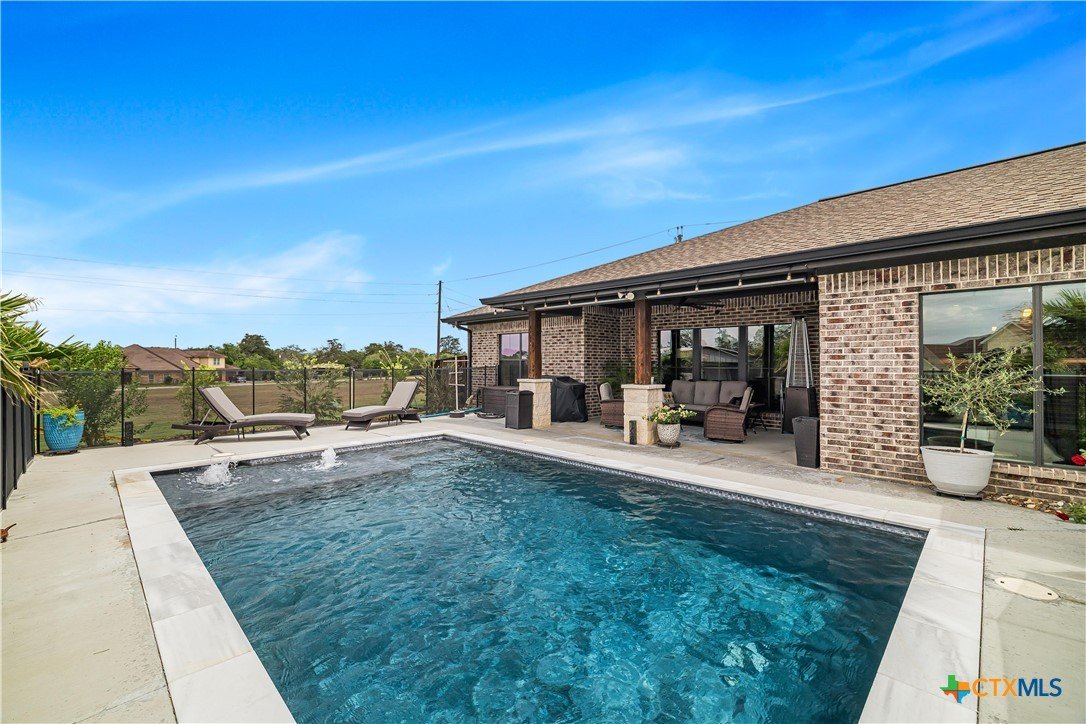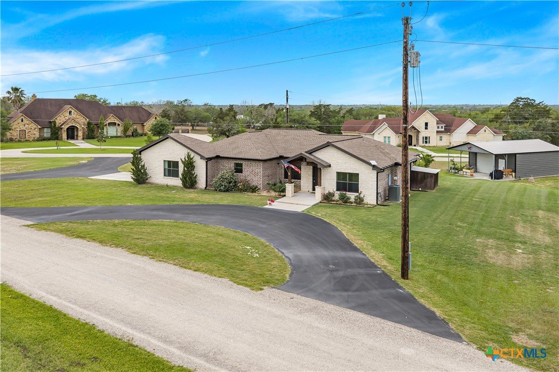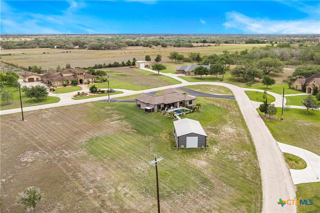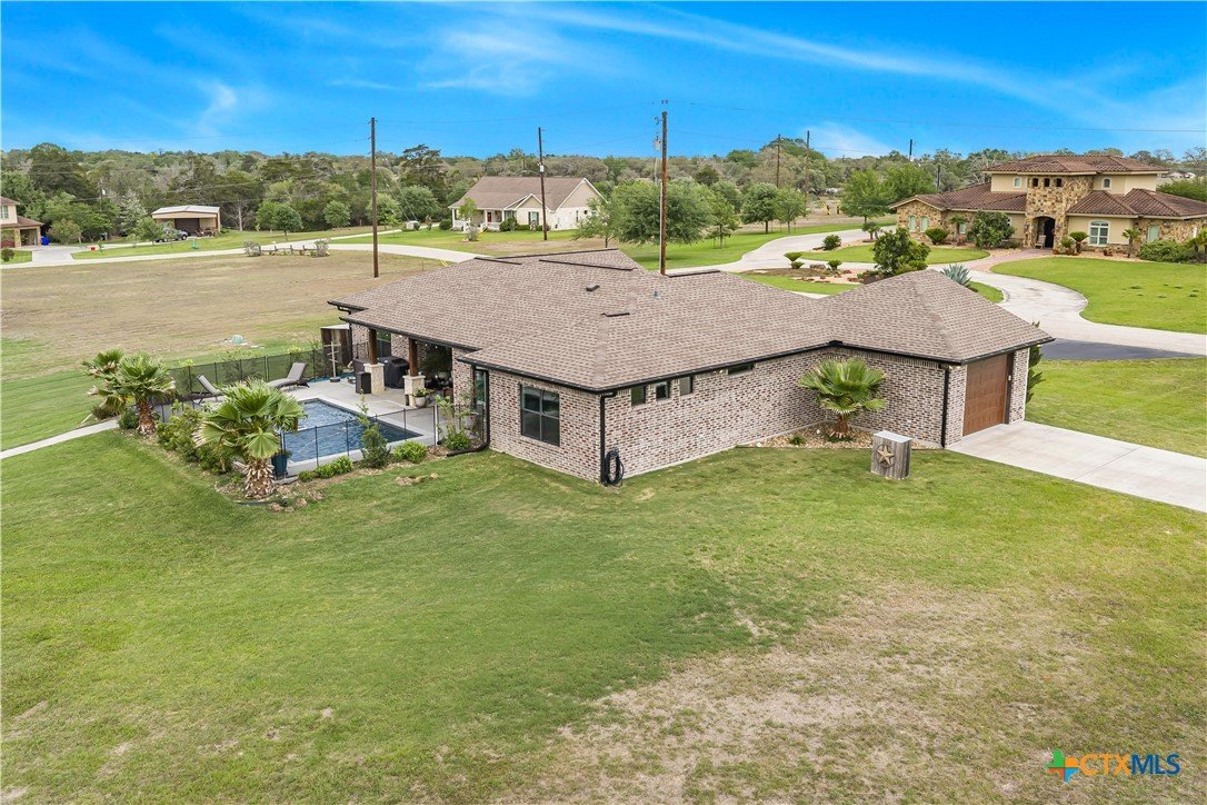 Welcome to one of Yoakum’s most desirable areas—Juniper Trail—where comfort, space, and style come together on over an acre of beautifully maintained property. This 3 bedroom, 2.5 bath home offers an open, split floor plan that blends everyday functionality with inviting spaces for entertaining. Inside, you’ll find a spacious layout complete with a large laundry room, a convenient shoe nook, and a wet bar that’s perfect for hosting or unwinding at the end of the day. The home is truly move-in ready and designed for easy living. Step outside and you’ll feel like you’ve entered your own private retreat. The backyard features a gorgeous, fenced pool surrounded by lush landscaping, giving it a true resort-style feel. A full sprinkler system keeps everything looking its best, while gutters around the entire home add to the thoughtful details. The property is serviced by a private well, septic system, and GVEC electric, offering efficiency and independence. The improvements don’t stop there—there’s a large shop complete with a half bath and a covered lean-to, ideal for hobbies, storage, or workspace needs. With very few restrictions and no HOA, you have the freedom to truly enjoy your property. All of this while being just minutes from town, yet still enjoying that peaceful country feel. Conveniently located less than 30 minutes from Victoria, Edna, Hallettsville, Cuero, Shiner, and Gonzales, and under two hours to San Antonio, Corpus Christi, Austin, and Houston, this property offers the perfect balance of privacy and accessibility.