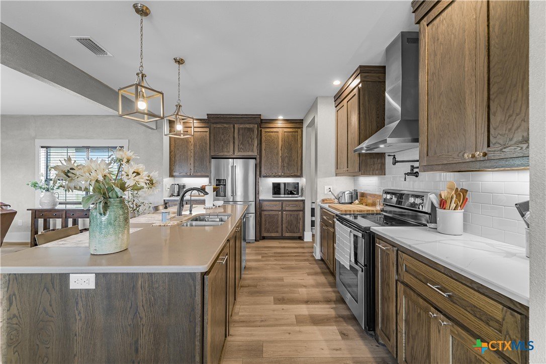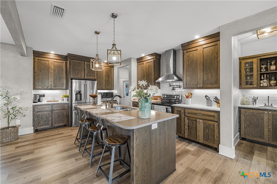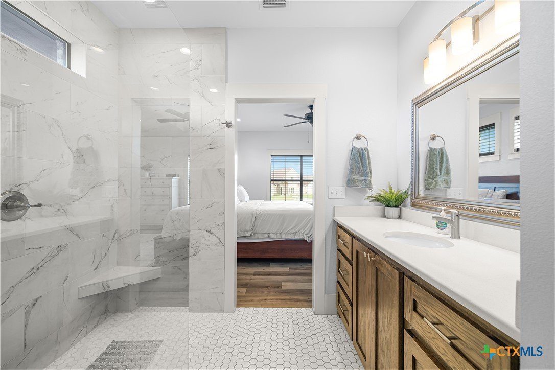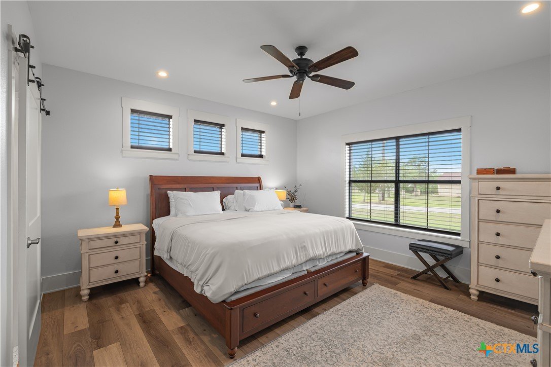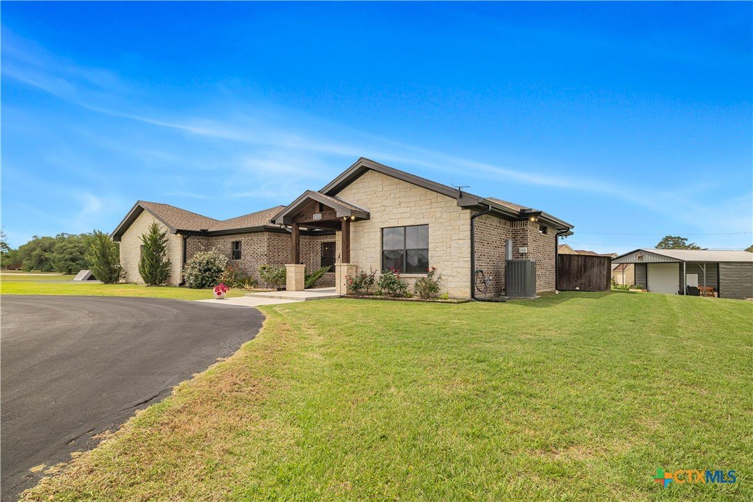 Welcome to one of Yoakum’s most desirable areas—Juniper Trail—where comfort, space, and style come together on over an acre of beautifully maintained property. This 3 bedroom, 2.5 bath home offers an open, split floor plan that blends everyday functionality with inviting spaces for entertaining. Inside, you’ll find a spacious layout complete with a large laundry room, a convenient shoe nook, and a wet bar that’s perfect for hosting or unwinding at the end of the day. The home is truly move-in ready and designed for easy living. Step outside and you’ll feel like you’ve entered your own private retreat. The backyard features a gorgeous, fenced pool surrounded by lush landscaping, giving it a true resort-style feel. A full sprinkler system keeps everything looking its best, while gutters around the entire home add to the thoughtful details. The property is serviced by a private well, septic system, and GVEC electric, offering efficiency and independence. The improvements don’t stop there—there’s a large shop complete with a half bath and a covered lean-to, ideal for hobbies, storage, or workspace needs. With very few restrictions and no HOA, you have the freedom to truly enjoy your property. All of this while being just minutes from town, yet still enjoying that peaceful country feel. Conveniently located less than 30 minutes from Victoria, Edna, Hallettsville, Cuero, Shiner, and Gonzales, and under two hours to San Antonio, Corpus Christi, Austin, and Houston, this property offers the perfect balance of privacy and accessibility.